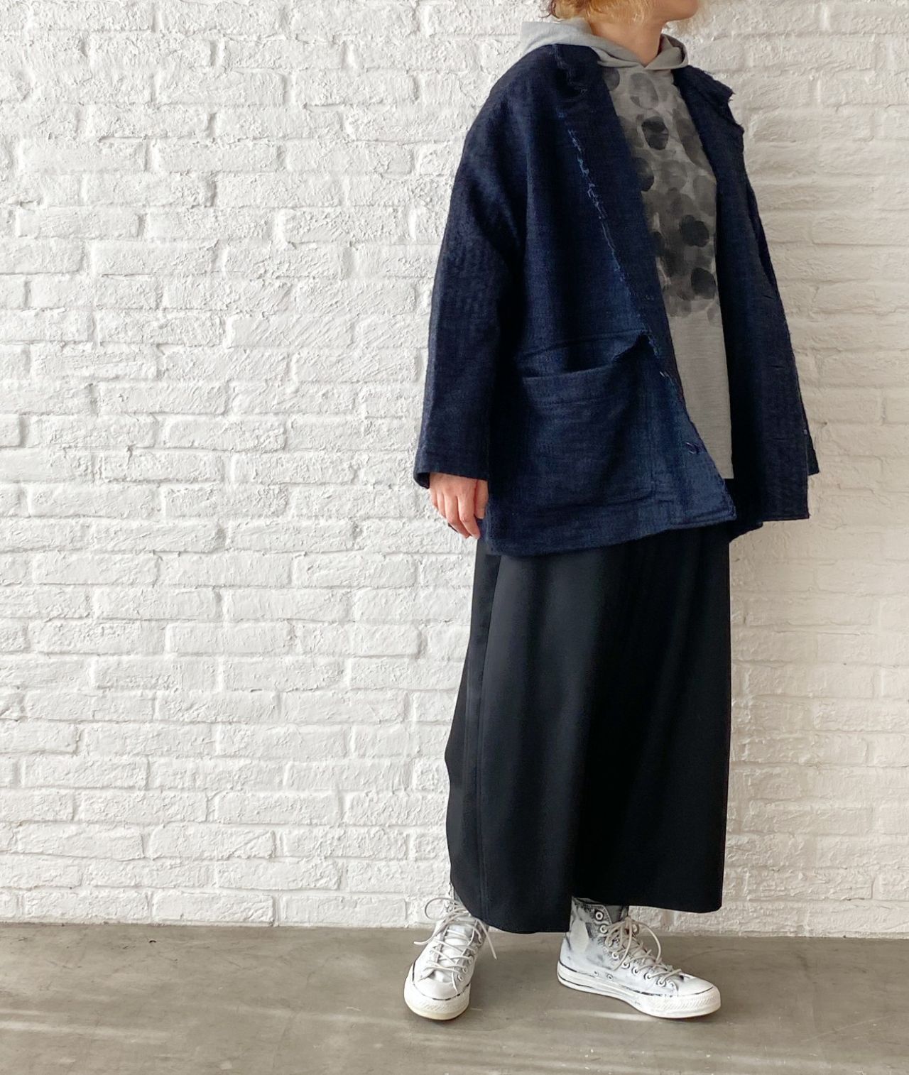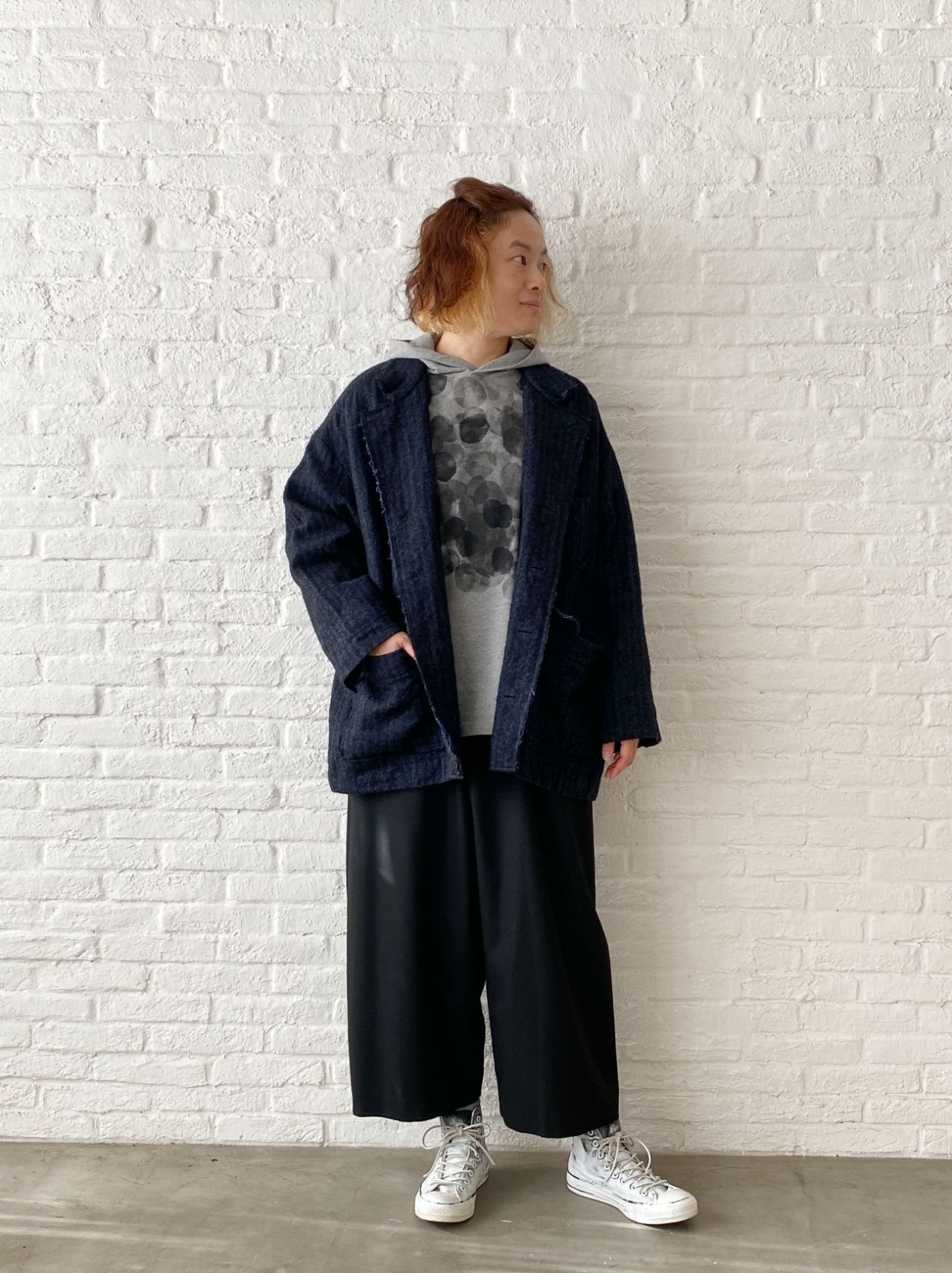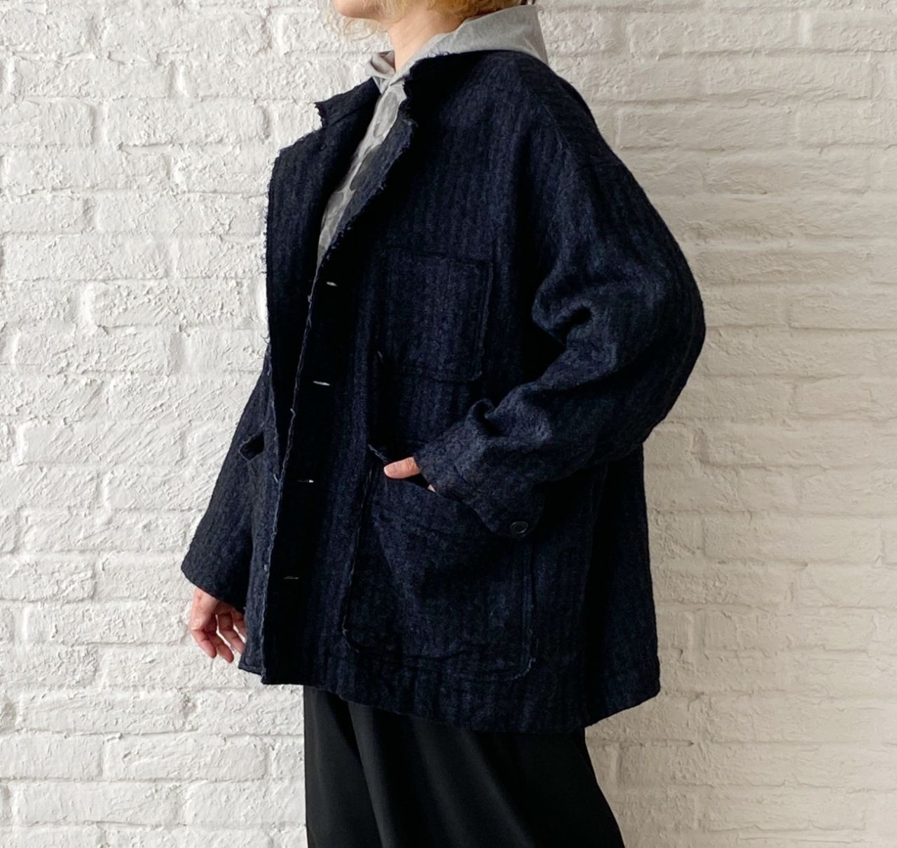 ゆったりしたサイズ感なので、中にニット等着込んでいただけます。
