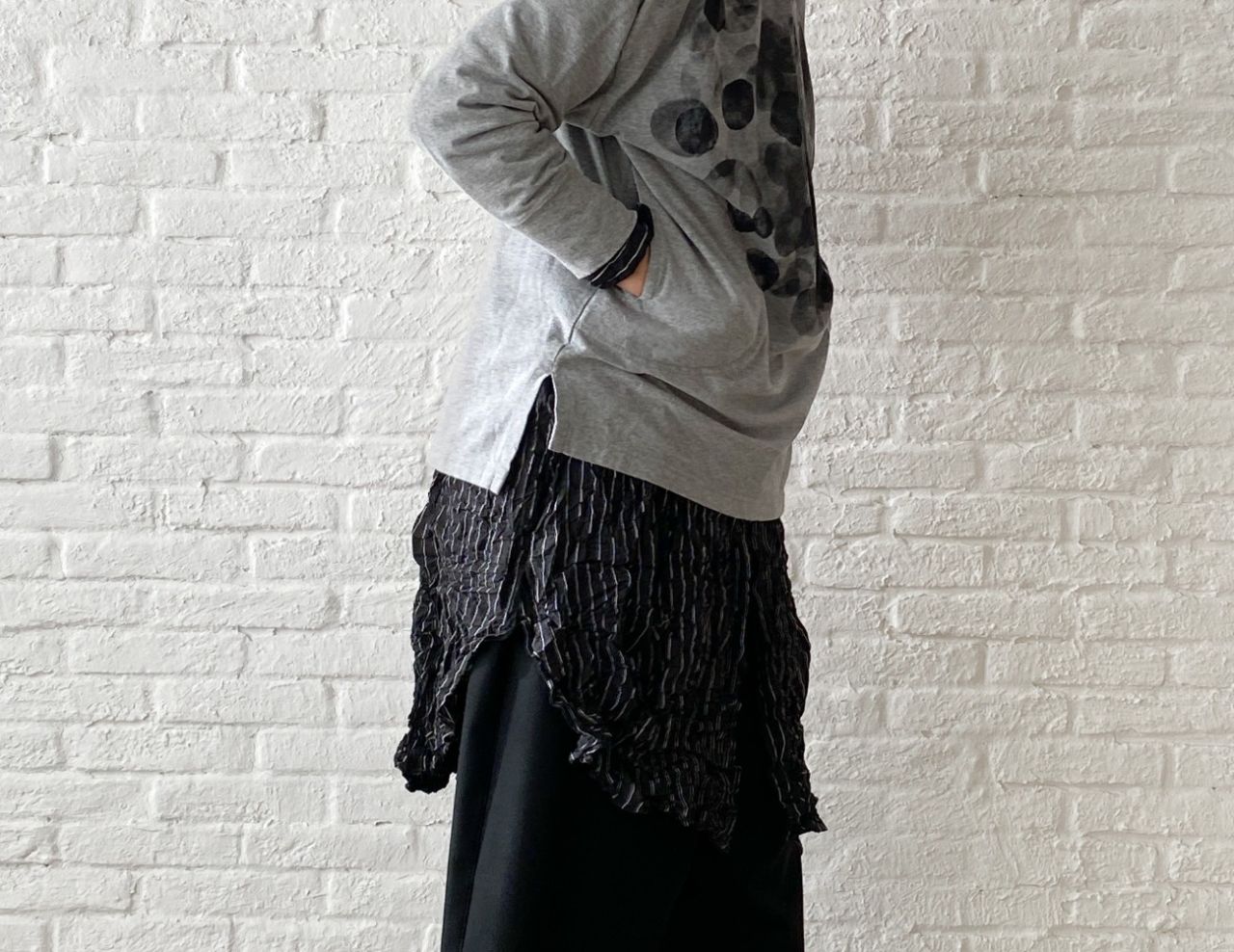 col. 90 クロ・36size(着用)/ 50 グレー/size展開・34 ¥26,400
