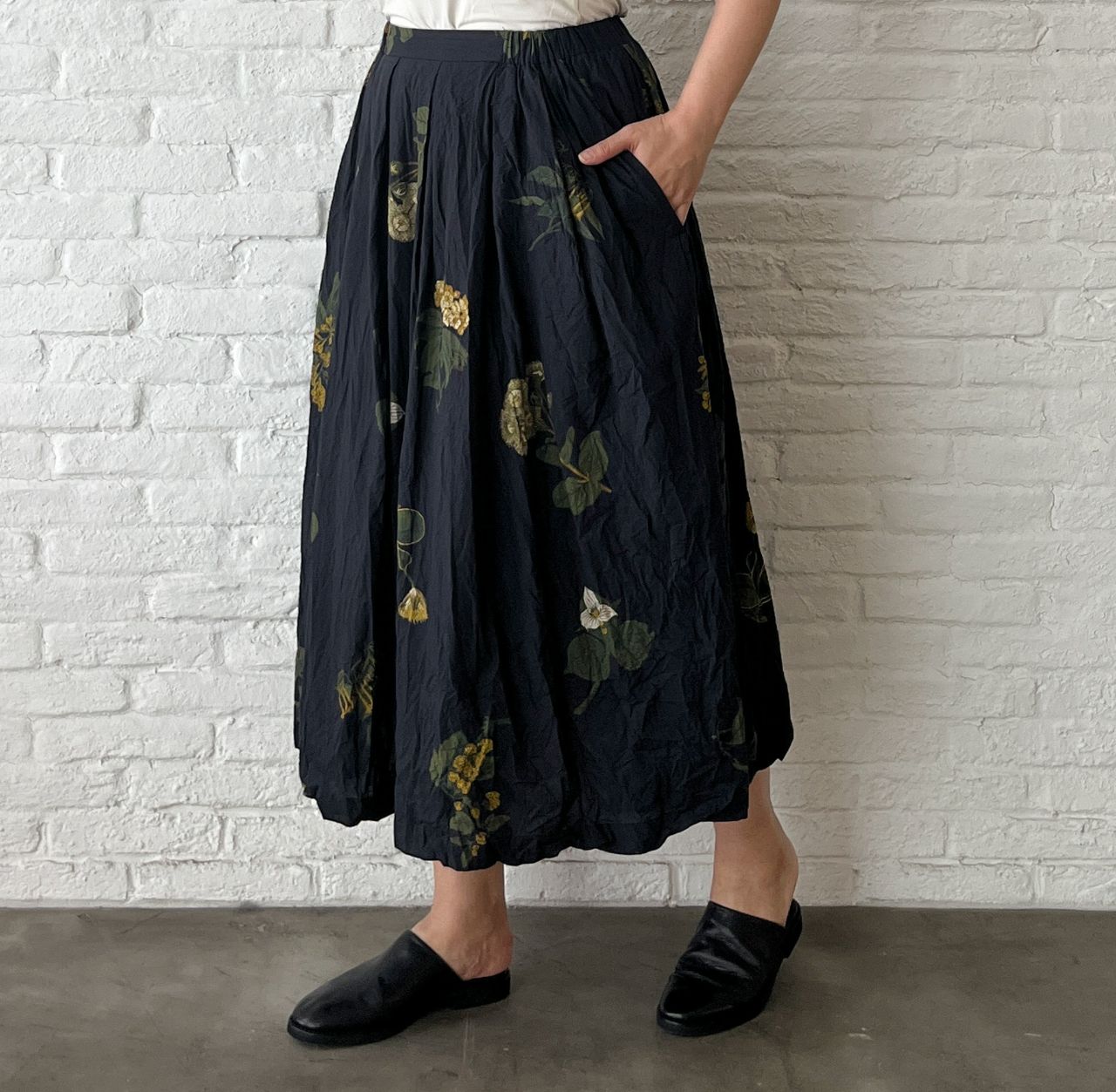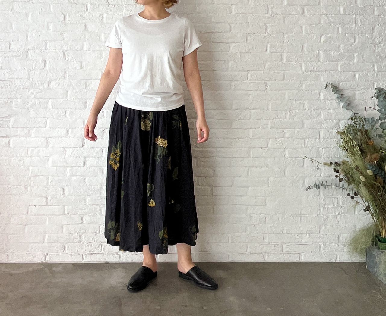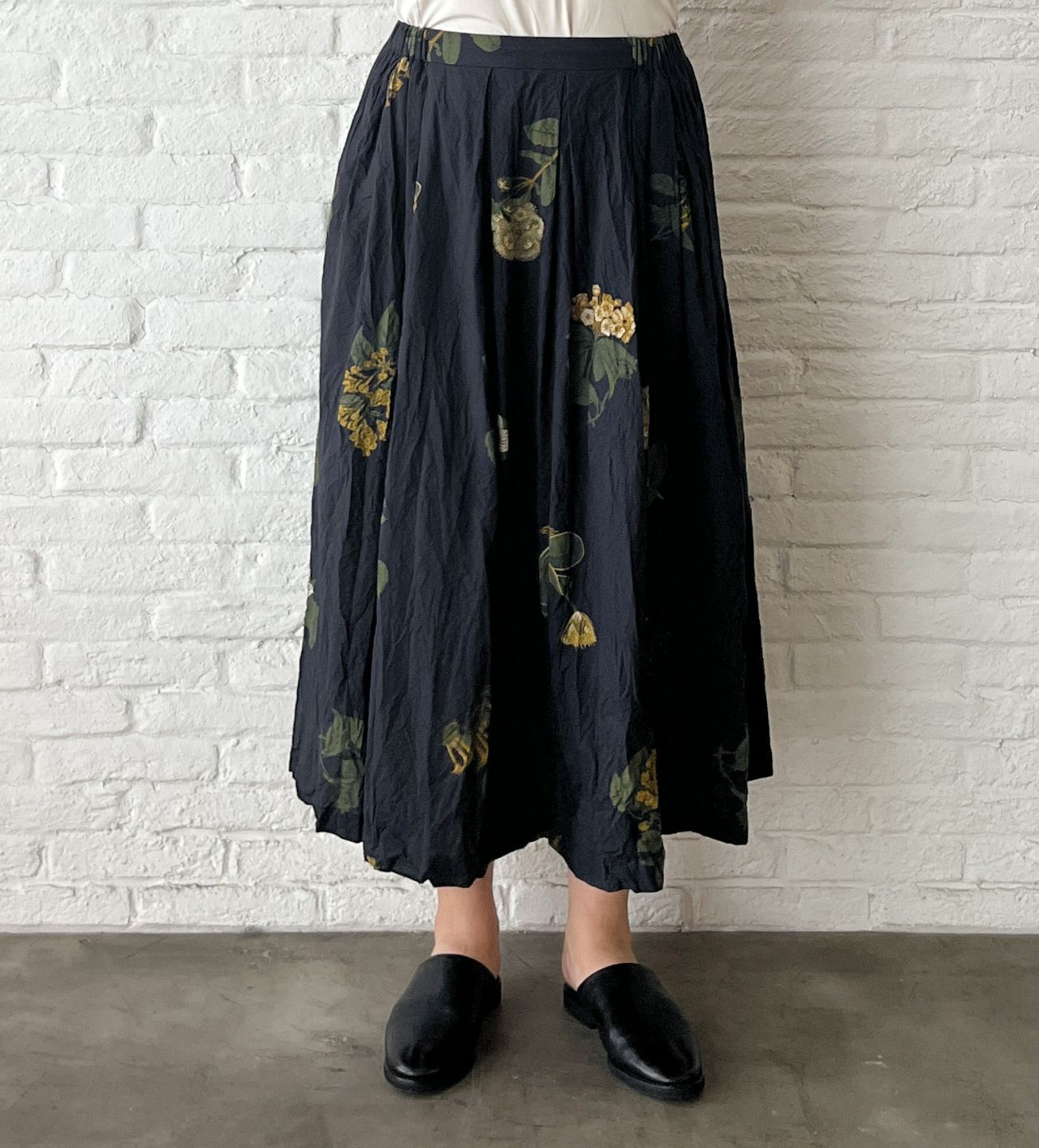 no.7353【W POINT】summer plants 夏の植物プリント スカート