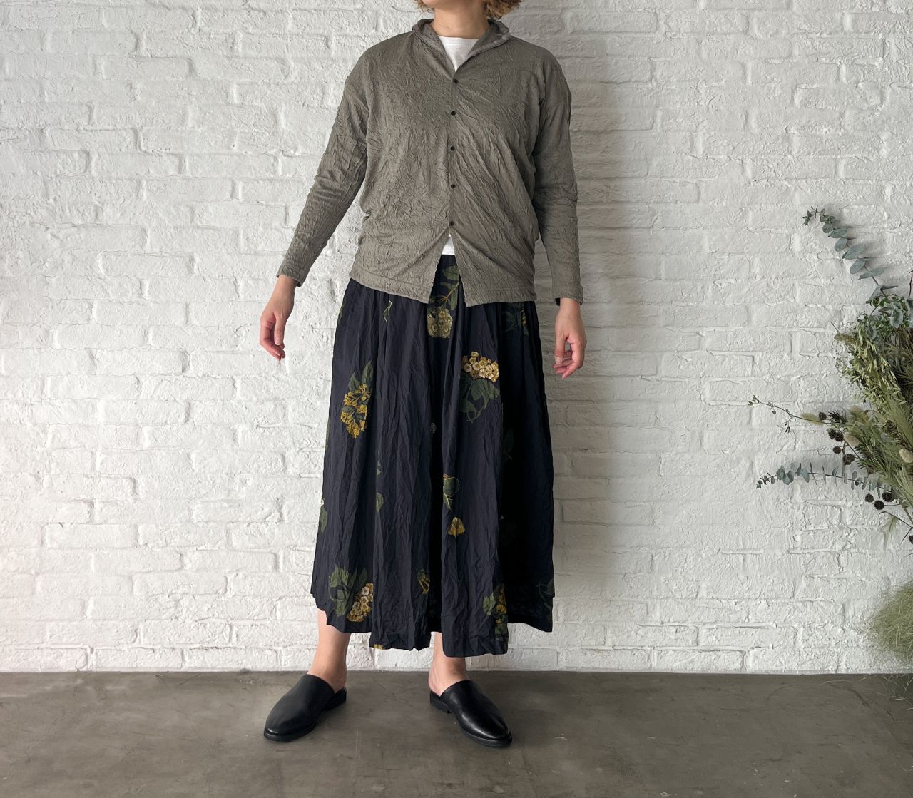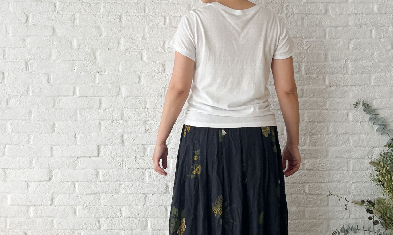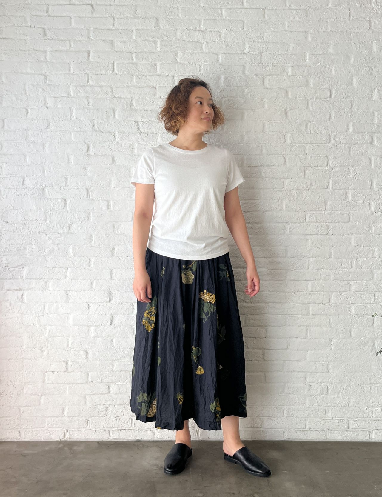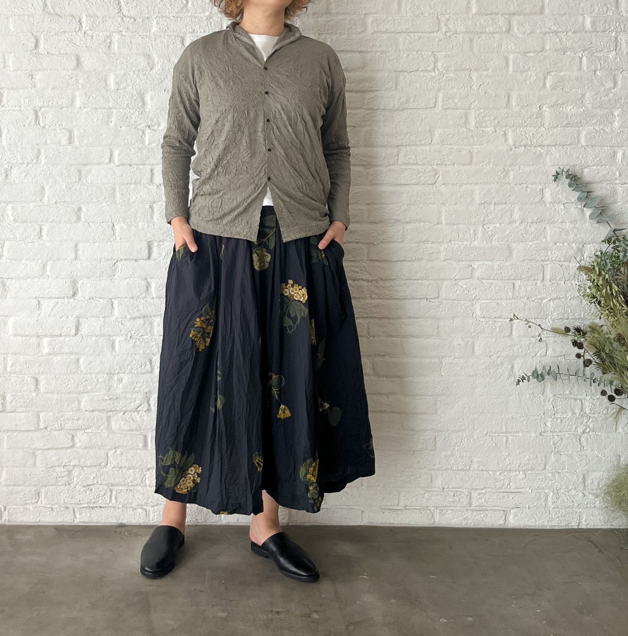 no.7353【W POINT】summer plants 夏の植物プリント スカート