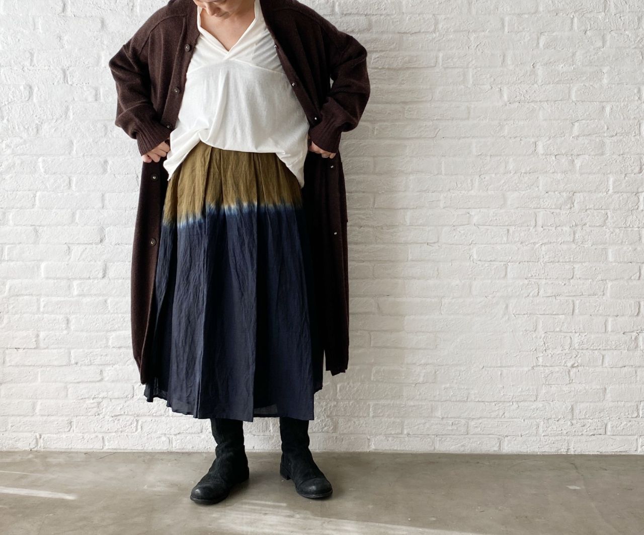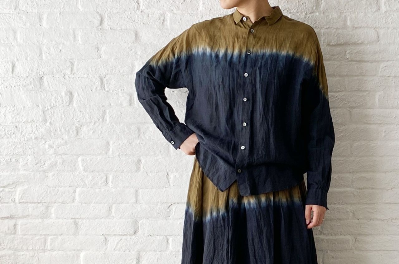 さて本日は、本日入荷の 有松絞りのスカート で着回しコーディネートのご紹介です。