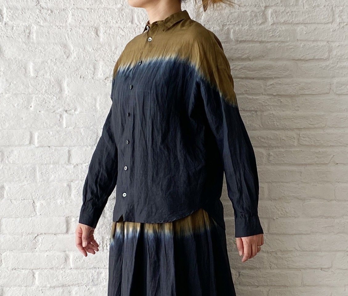 形はシンプルなブラウスですが、絞りを入れるだけでこんなにも個性的に。