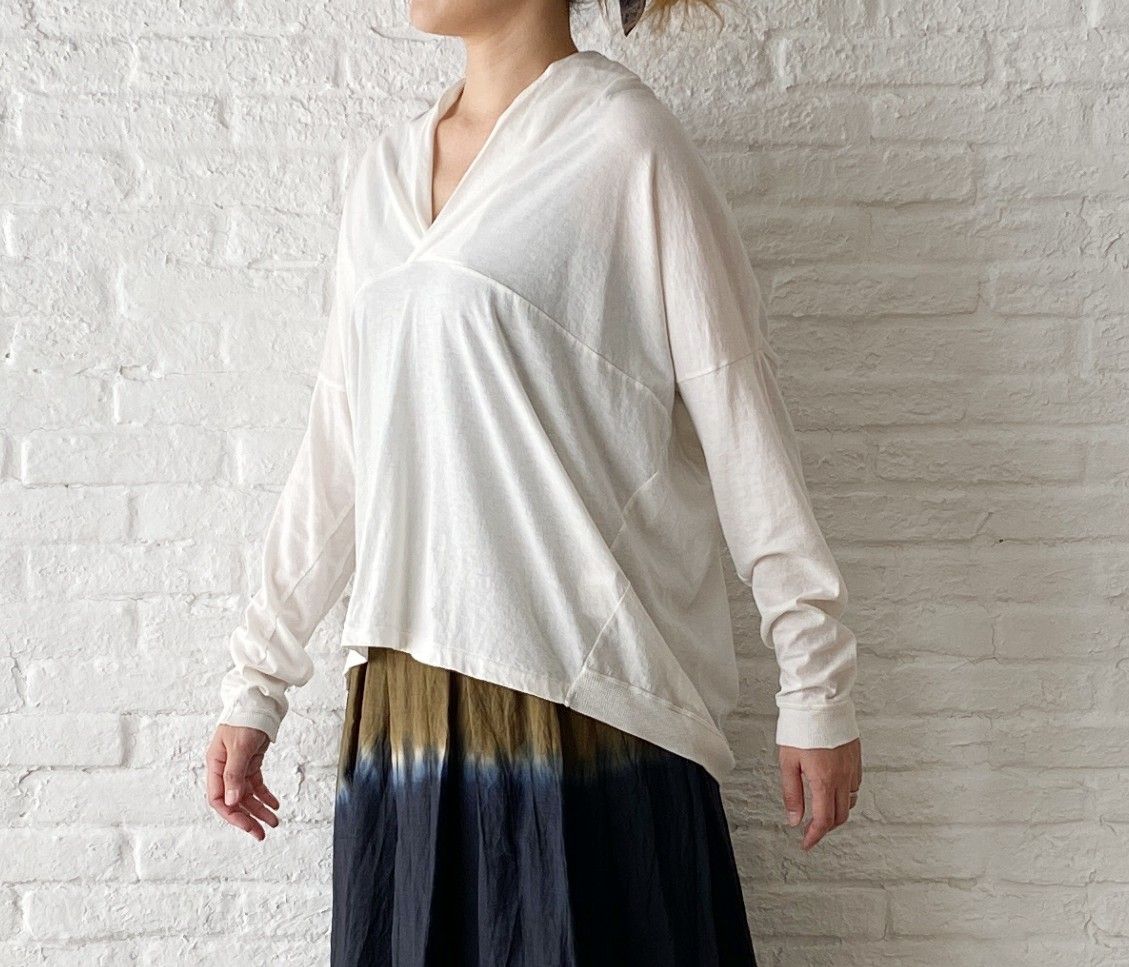 すっきりしたVネックに、ゆったりしたサイズ感のコットン素材のカットソーと。