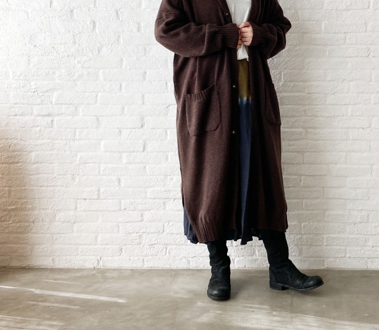 ”まだコート程ではないかな” 位の端境期にぴったりな、ニットカーディガン。