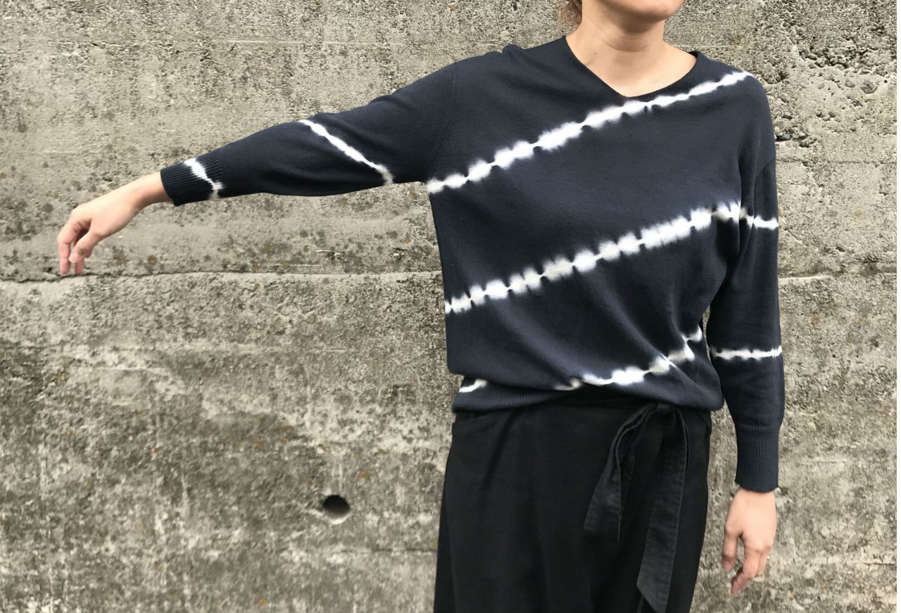 シックで雰囲気ある、長袖の絞り染めニット。