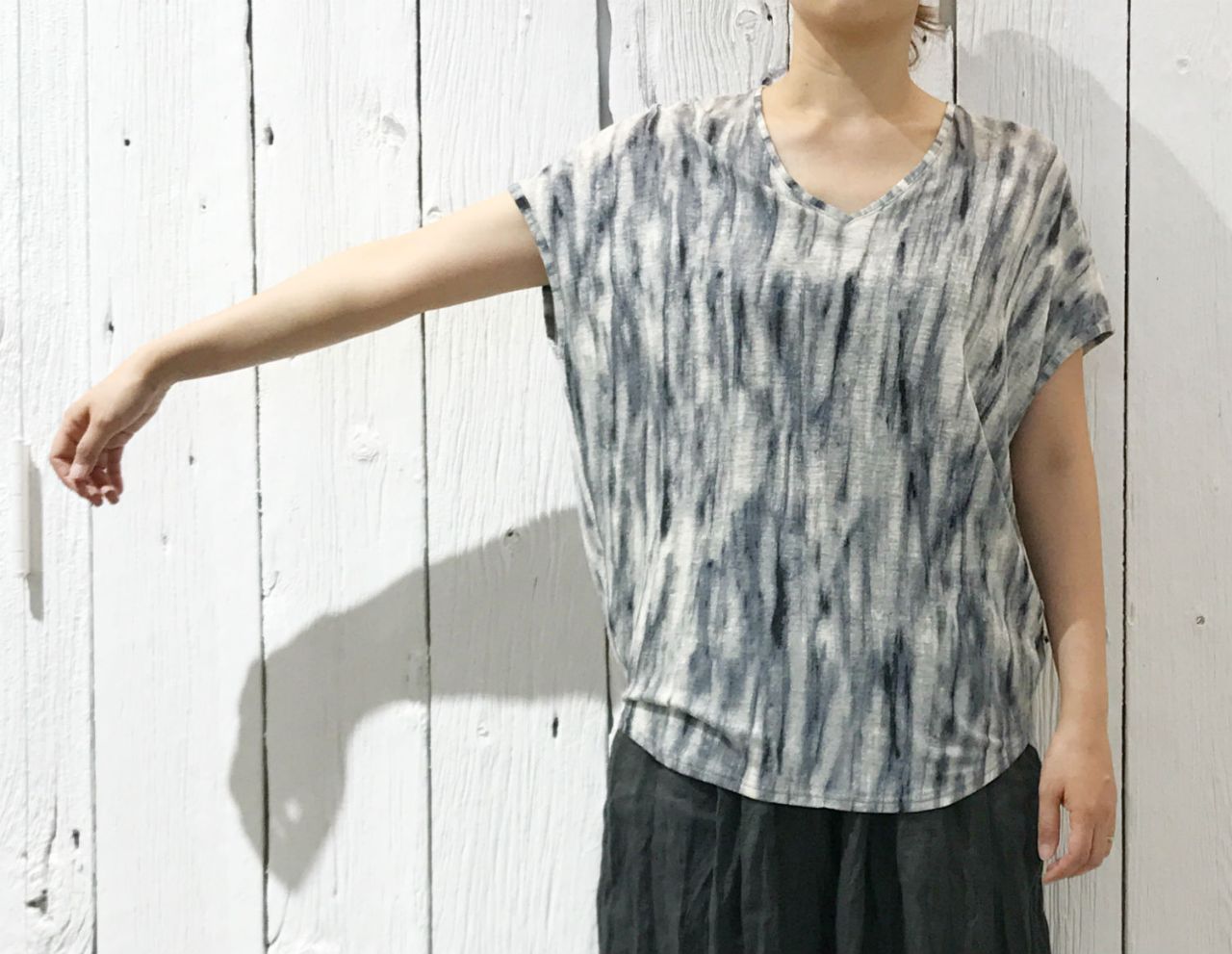 no.1114 bambooプリントフレンチスリーブ プルオーバー