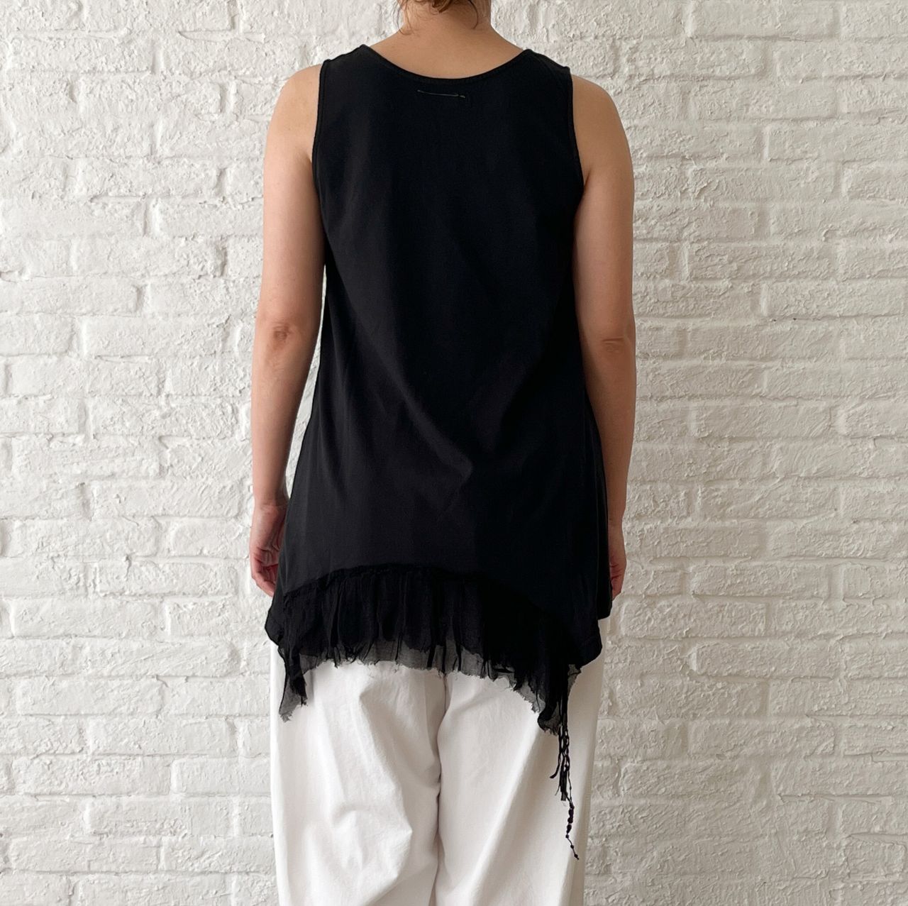 no.1644【オンライン限定】裾レースロングタンク  col.90 クロ(着用) ¥13,200