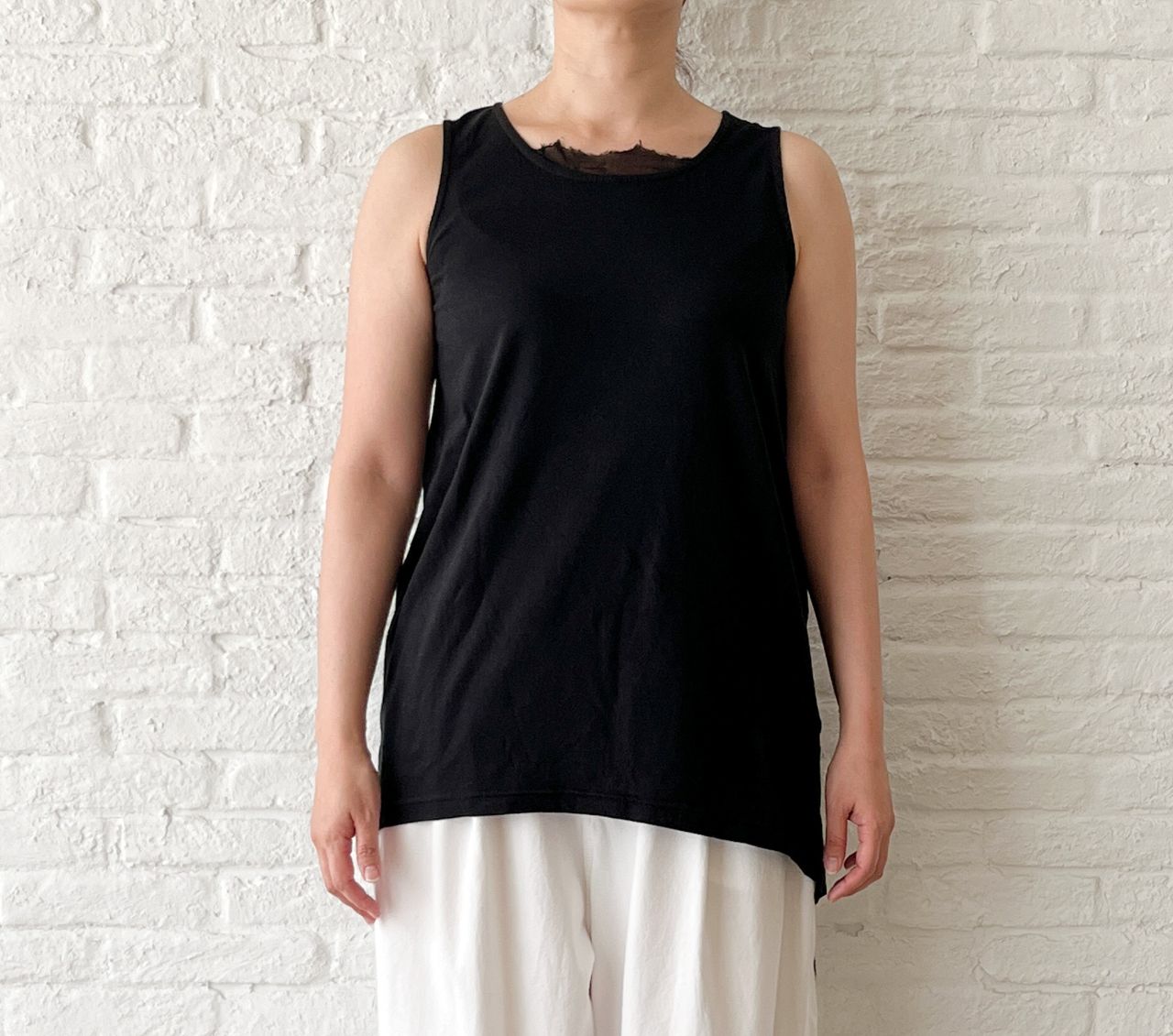 店舗でも販売している レース付きタンクトップ より、長めの着丈。