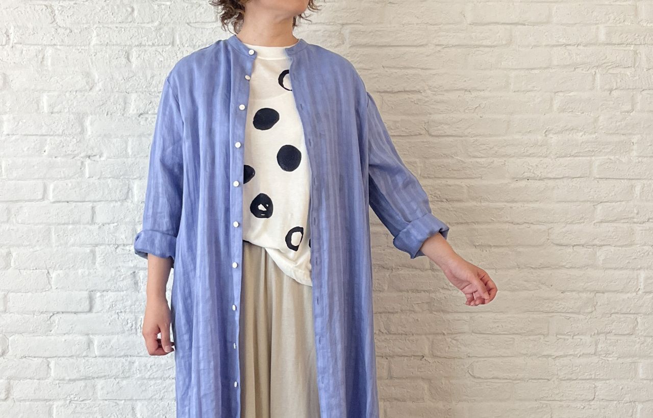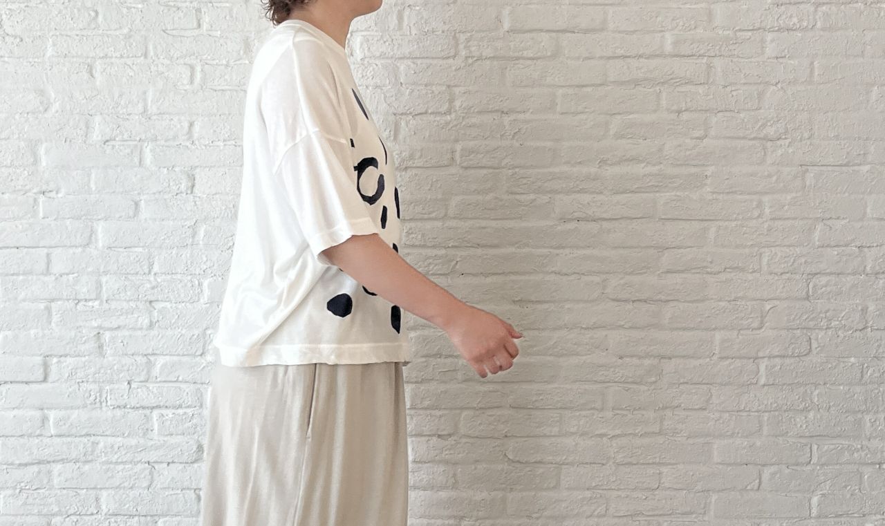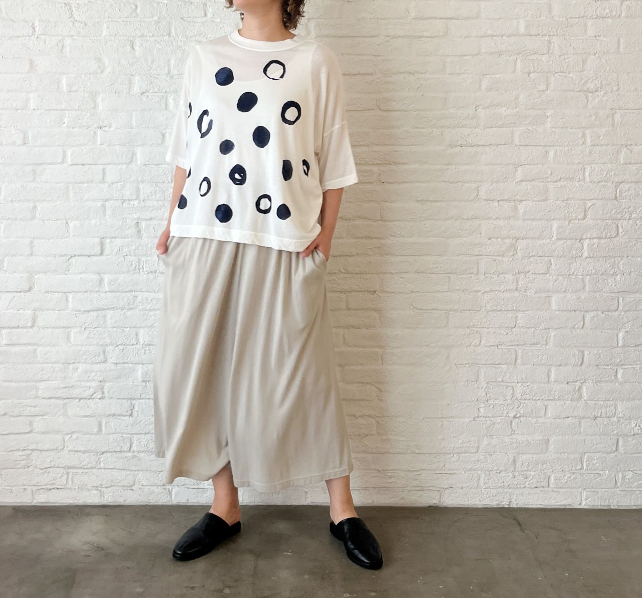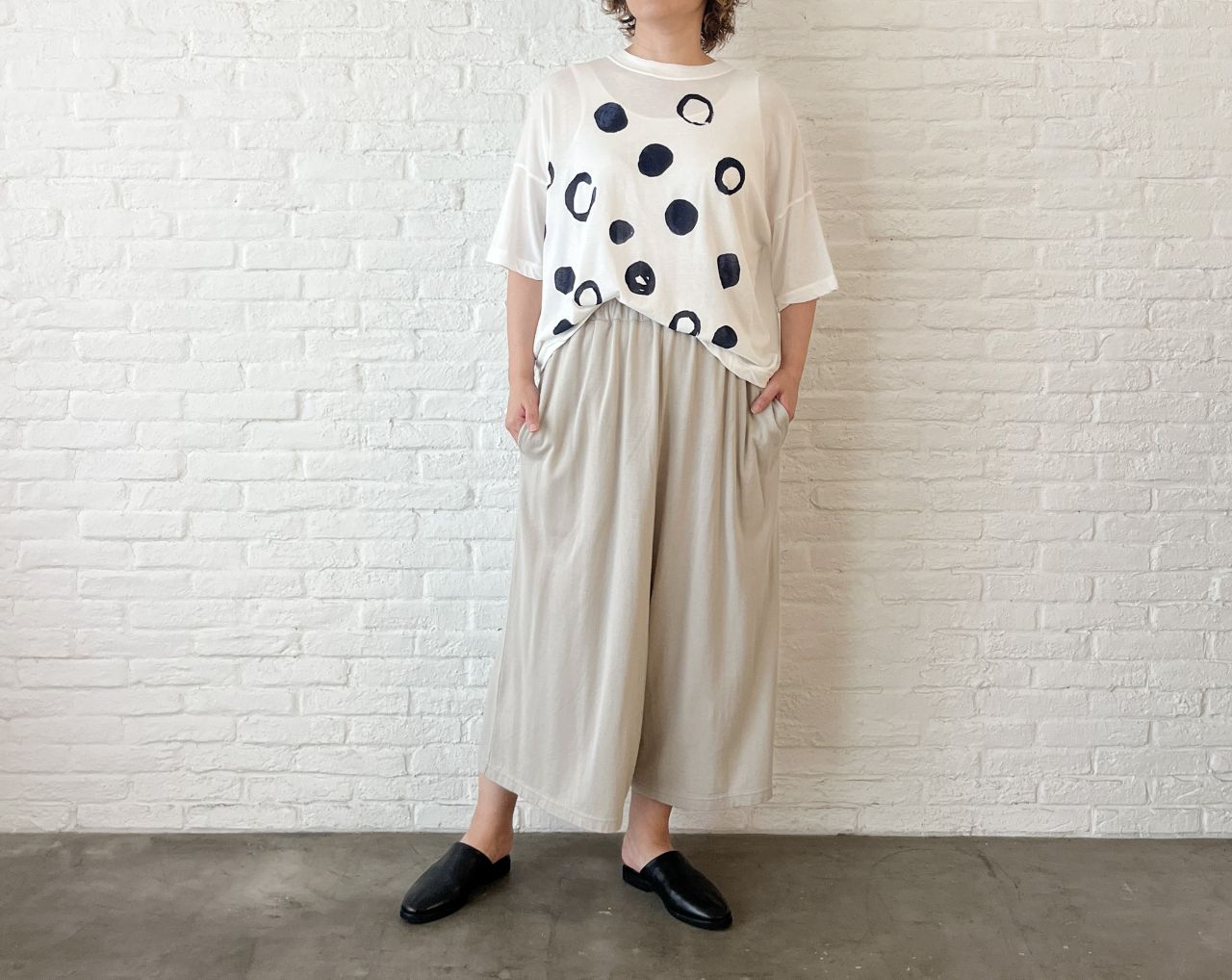 不揃いで大きめな丸は、和のテイストを感じる落ち着いたプルオーバーです。