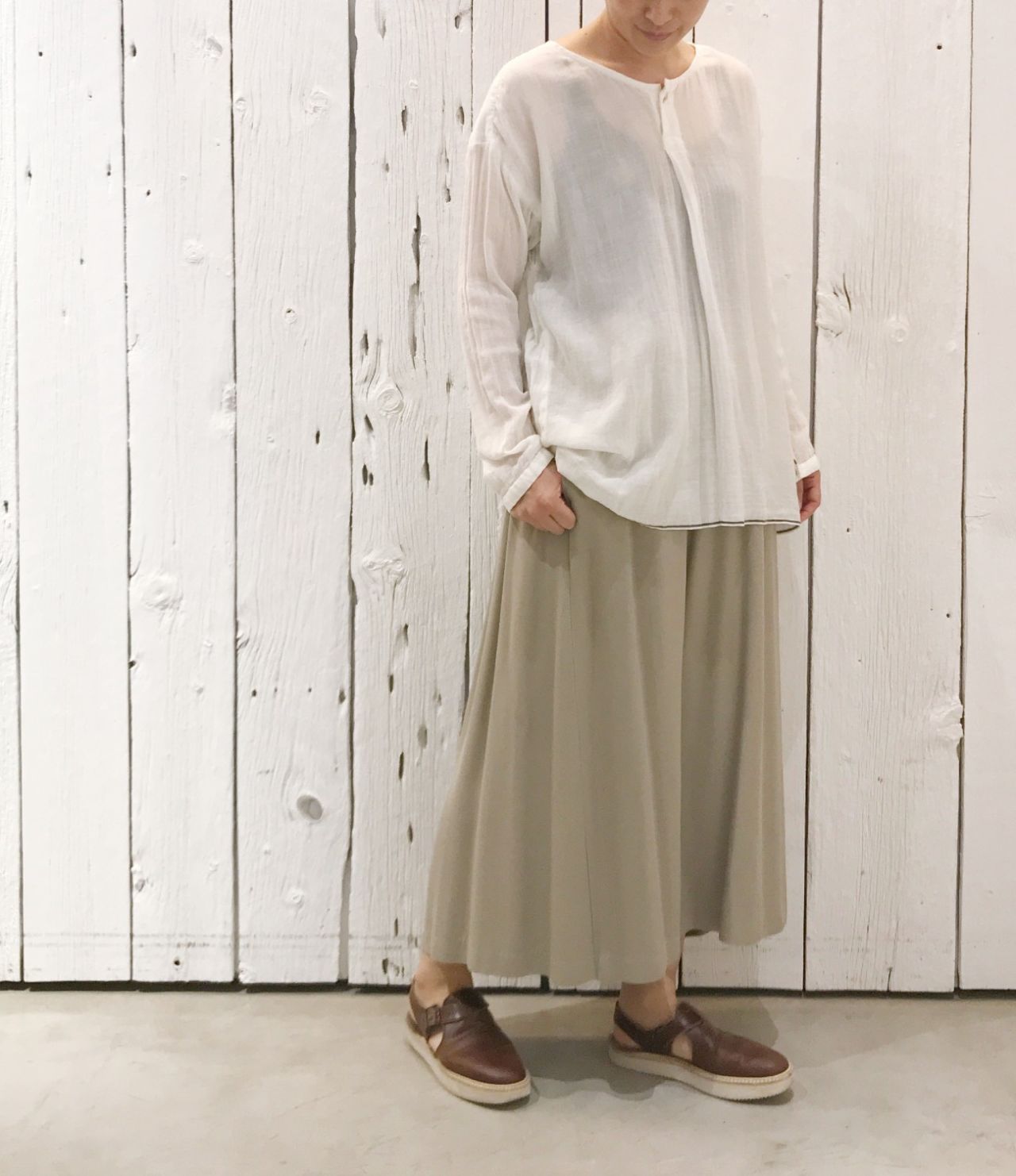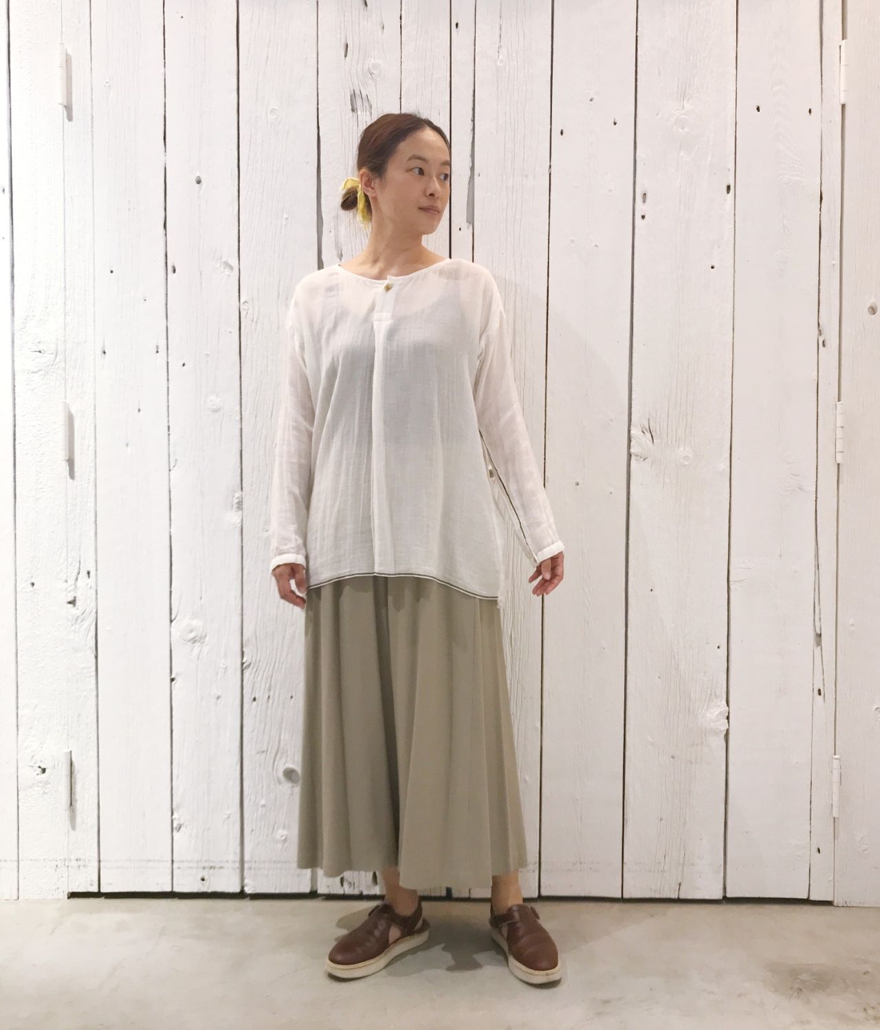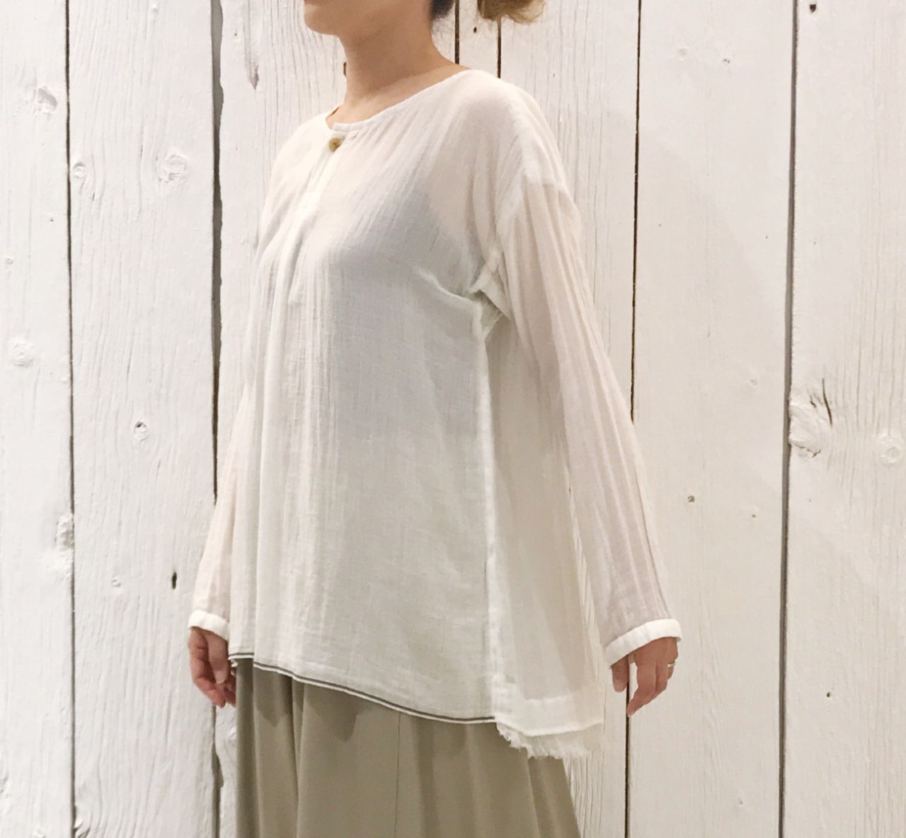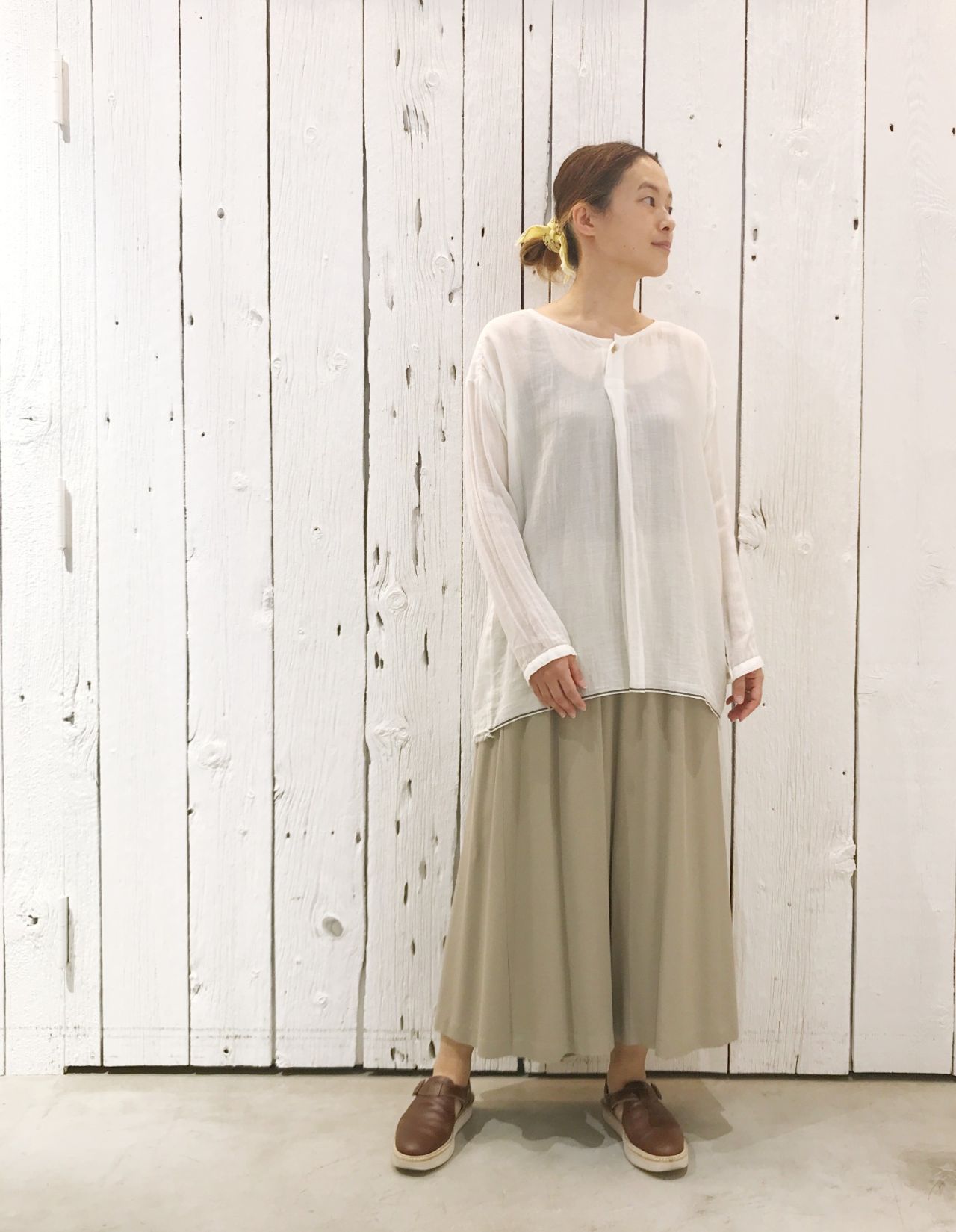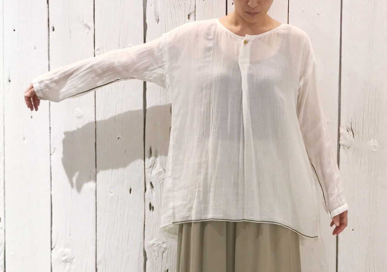 ゆったりしているので、前ボタンを閉めてプルオーバー感覚でも。
