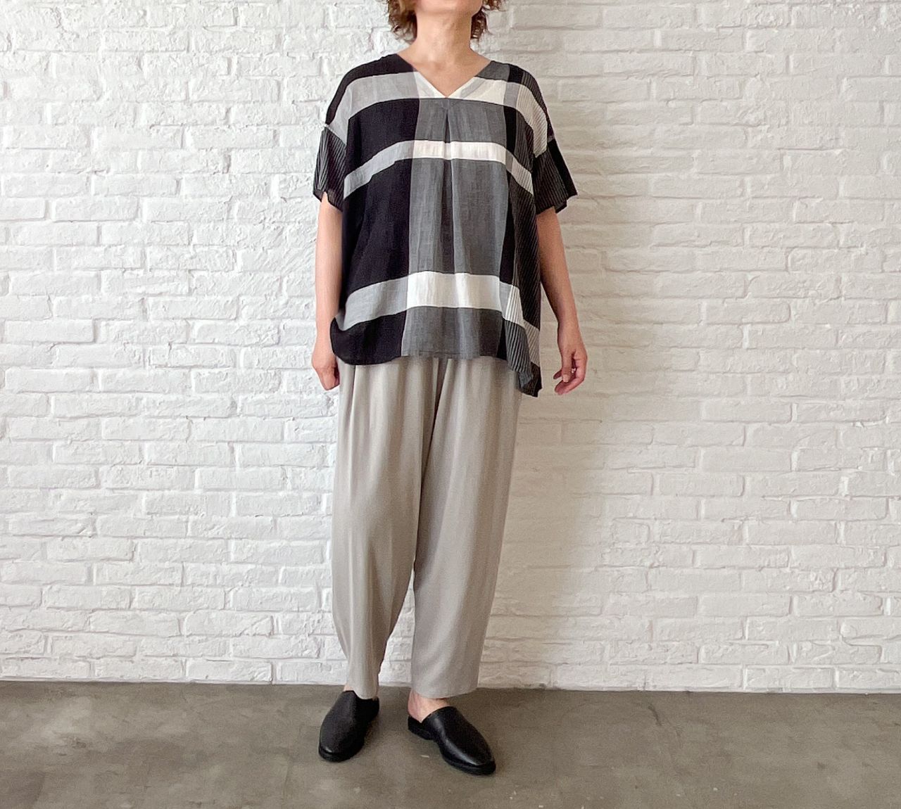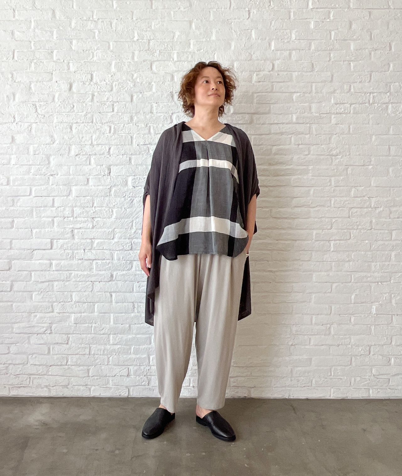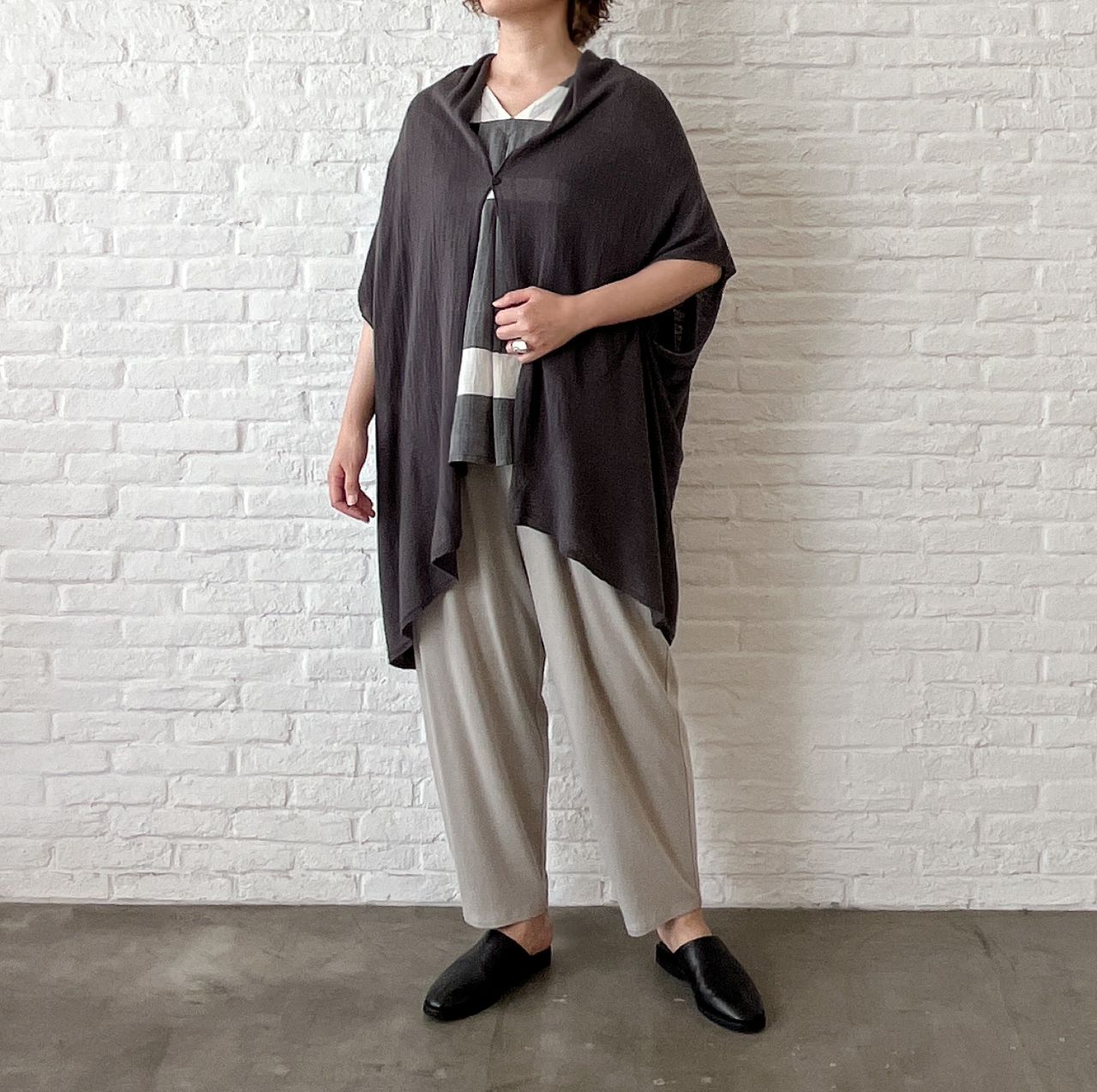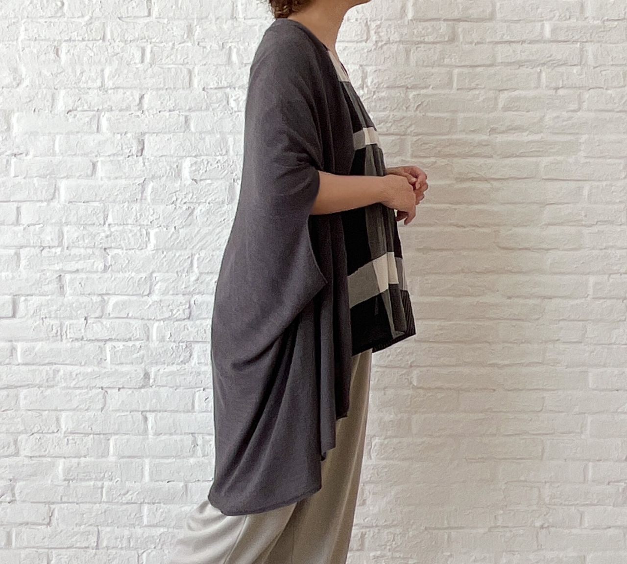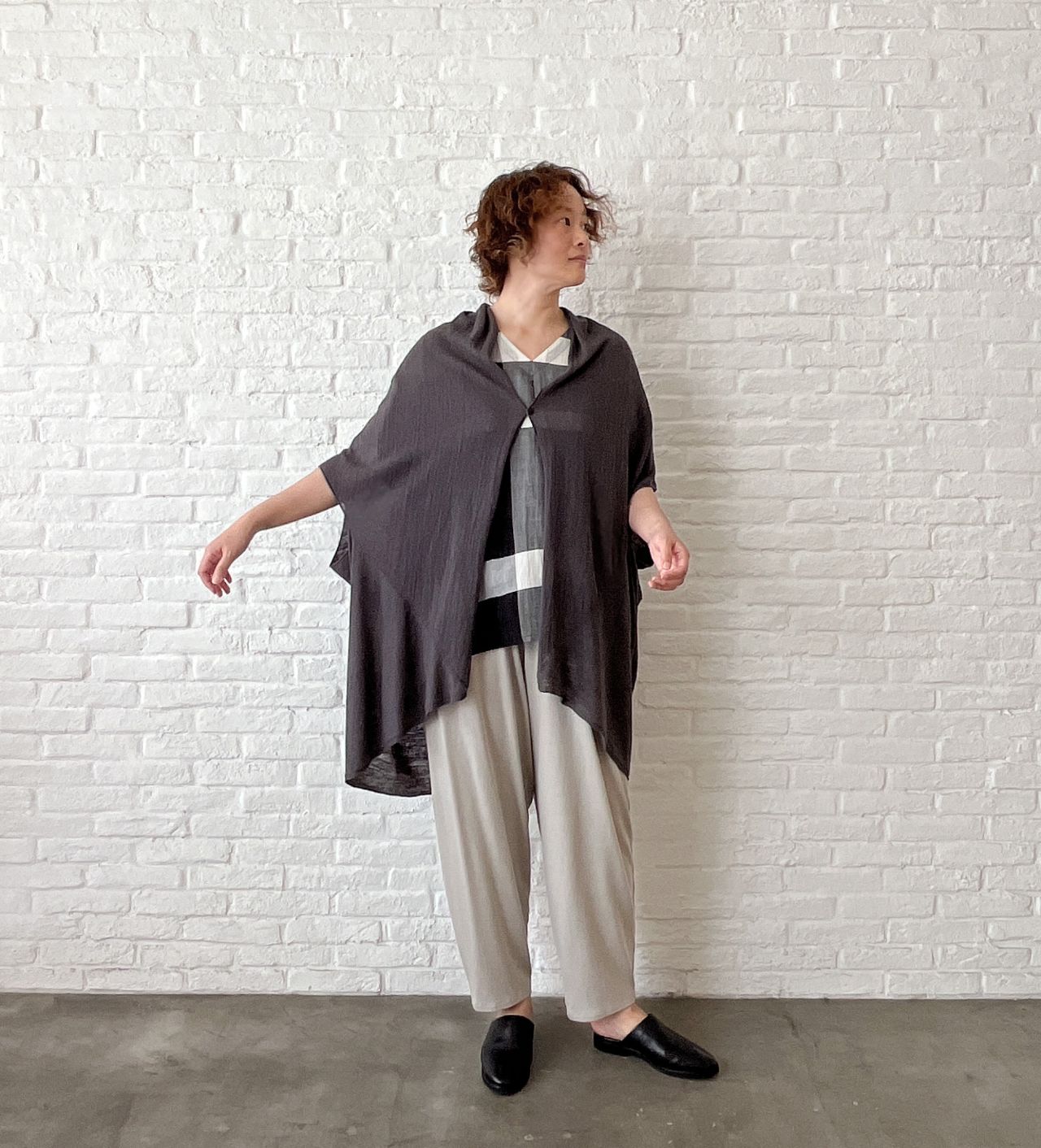 たっぷりしたシルエットなので体にぴったりせず、汗ばむ時期にも◎。
