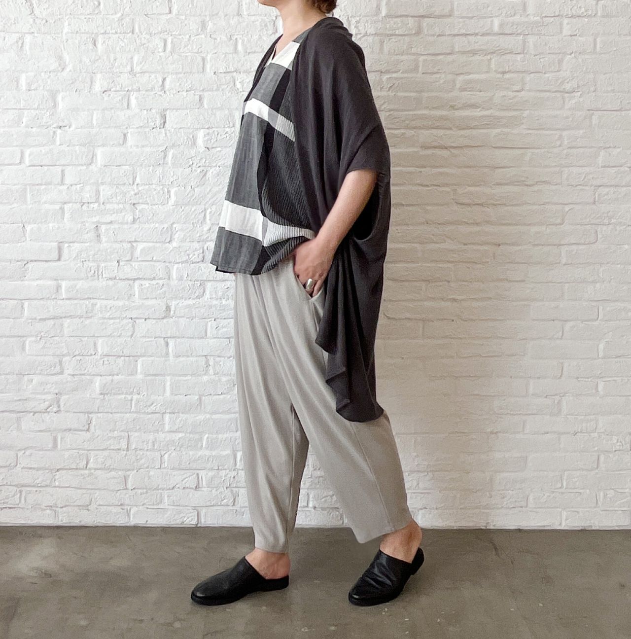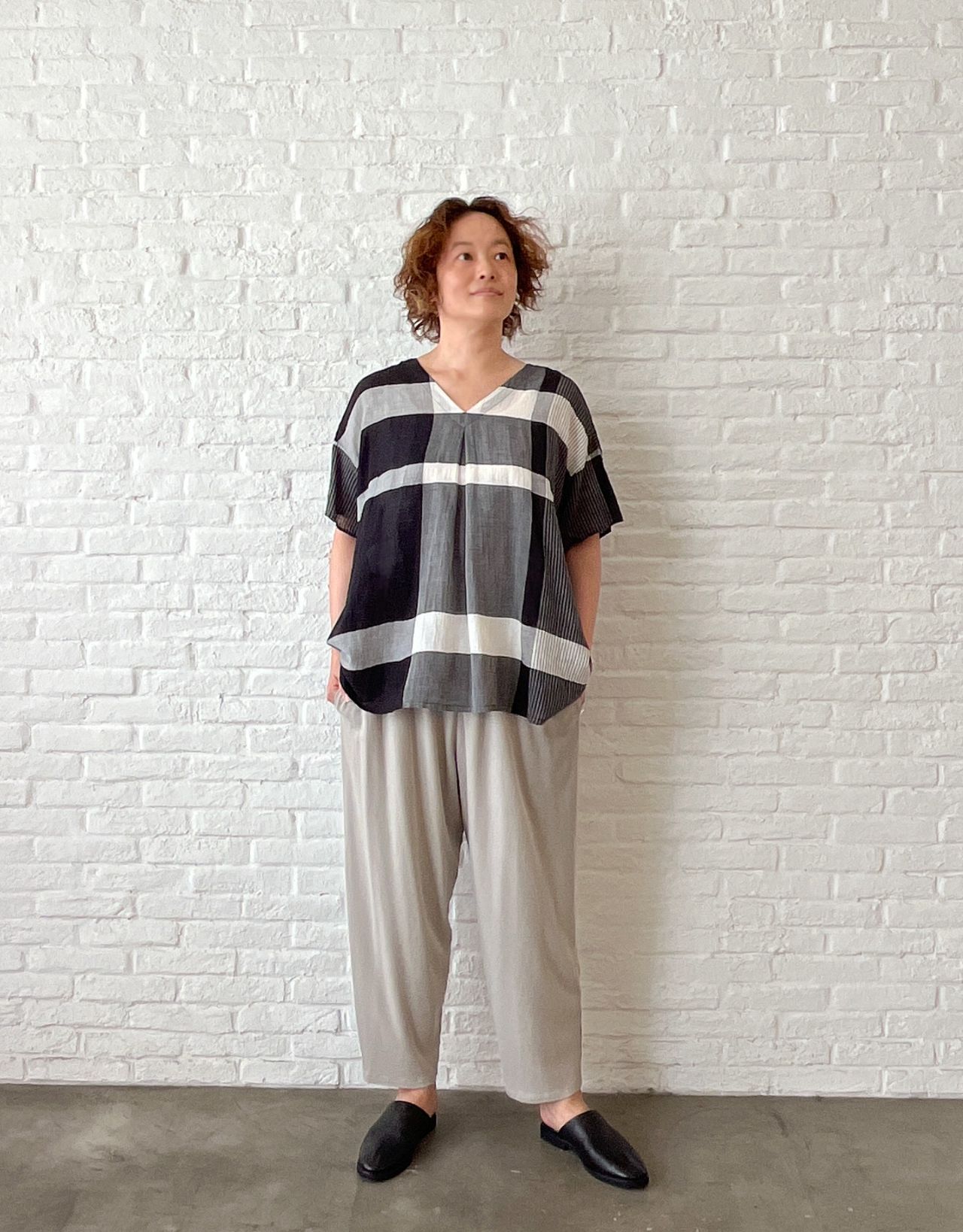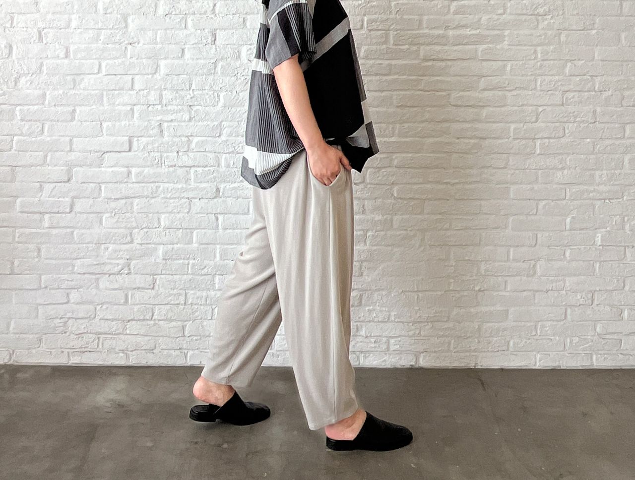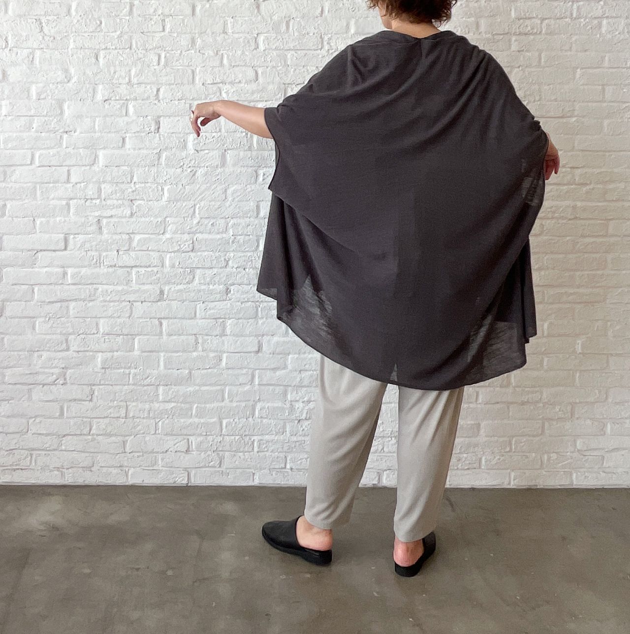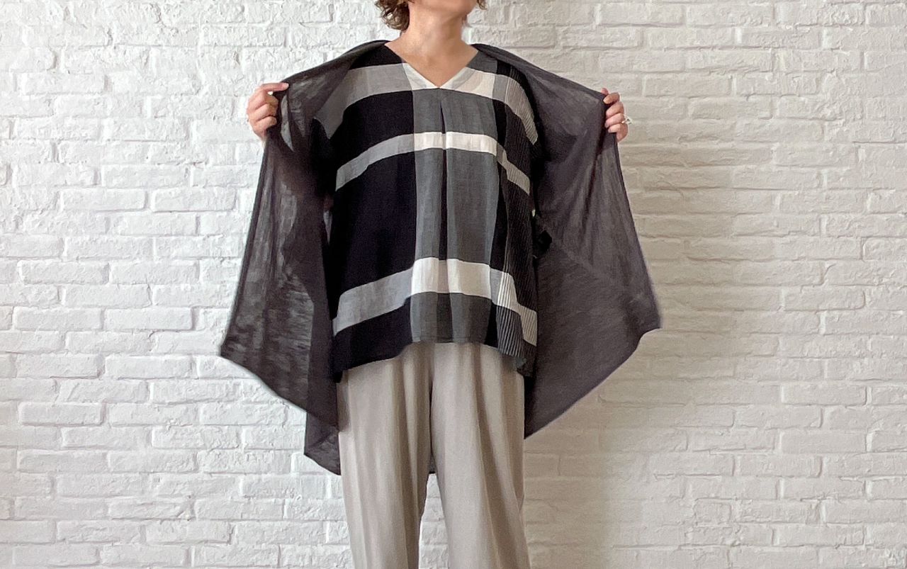 たっぷりしたシルエットなので体にぴったりせず、汗ばむ時期にも◎。
