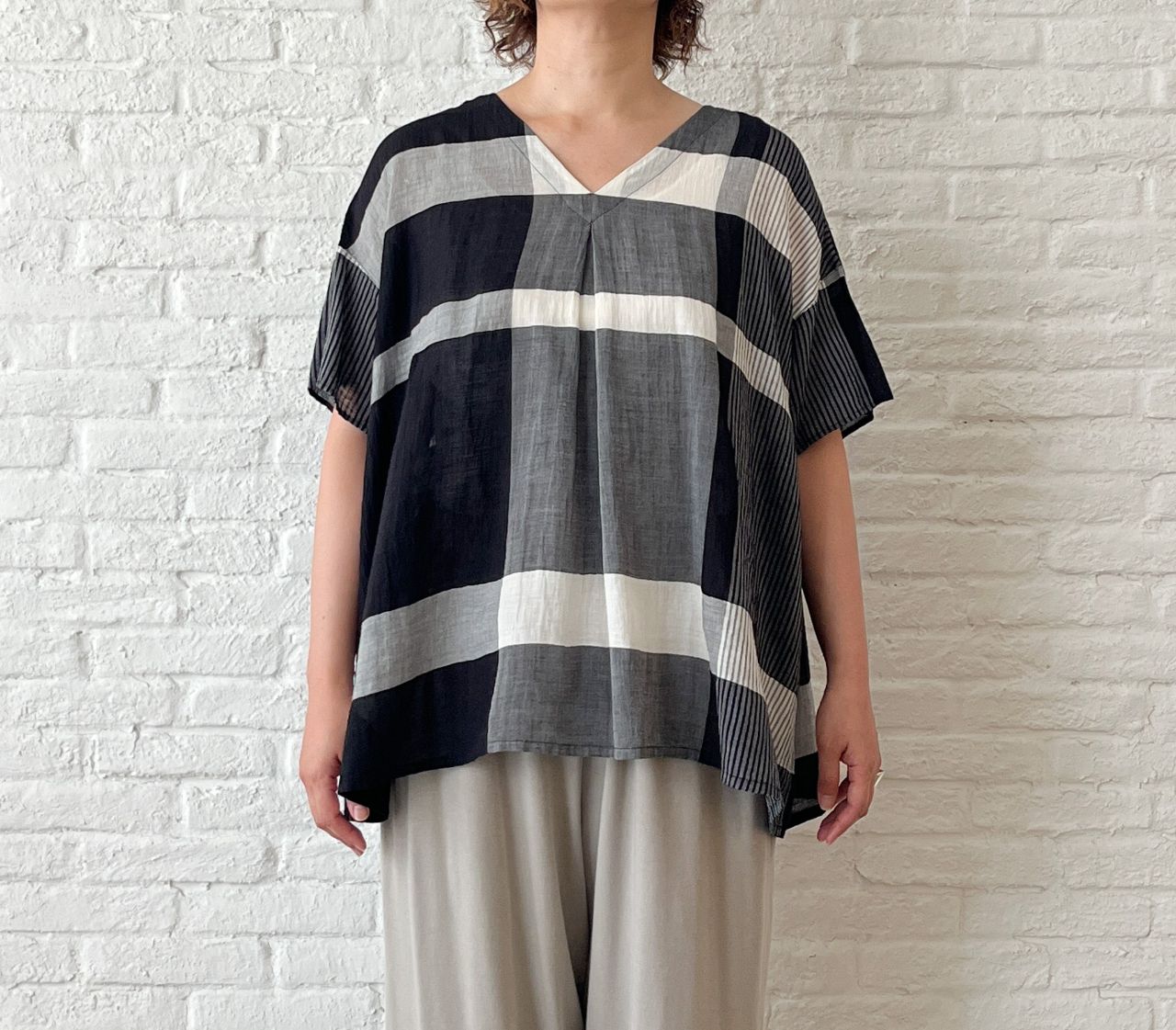 《5.28(Wed)18:00再入荷》コットンラミー先染めチェック ブラウス