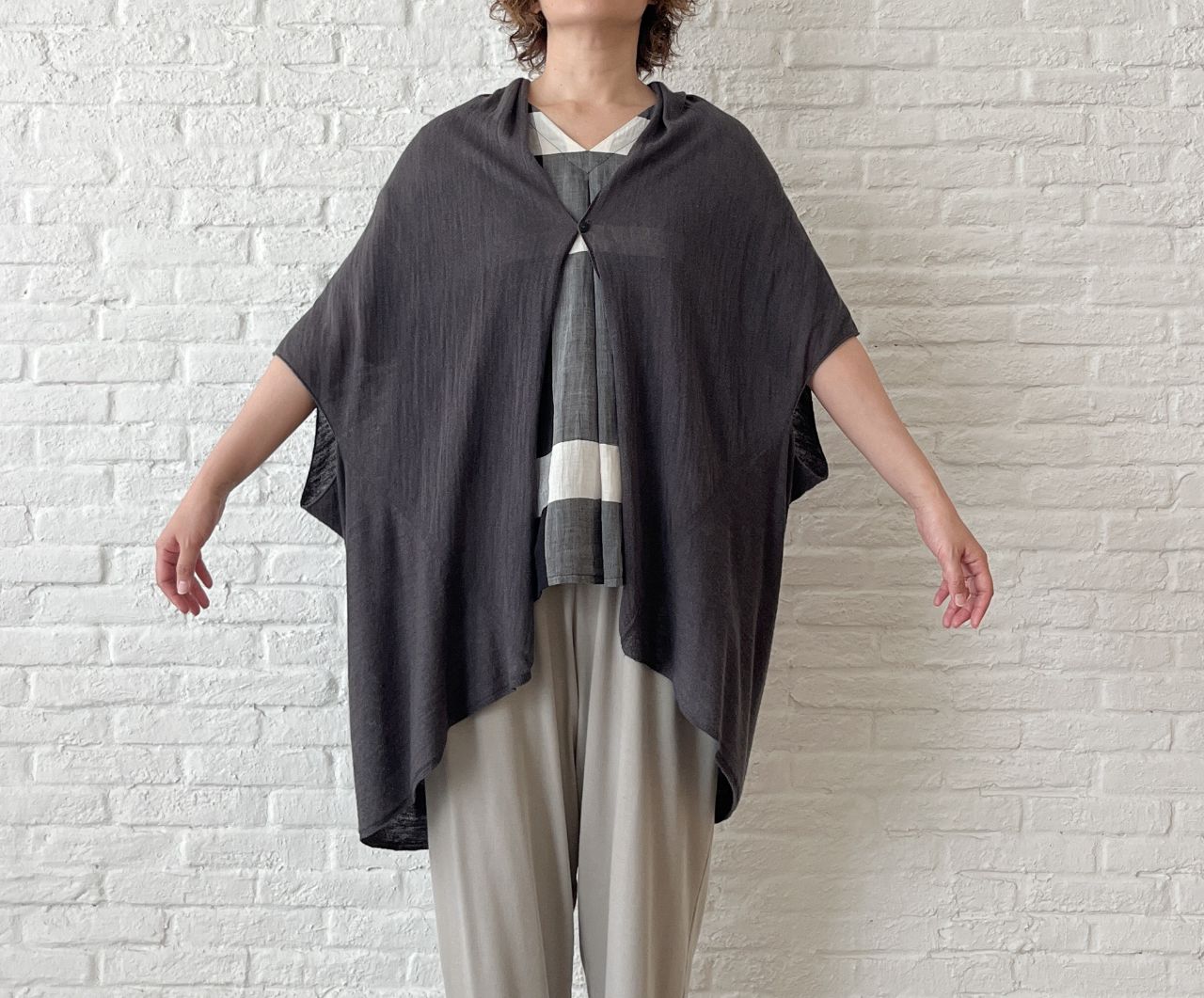 ”ここに肩を合わせる”というのがないので、お好みの位置でバサッと羽織るデザインです。
