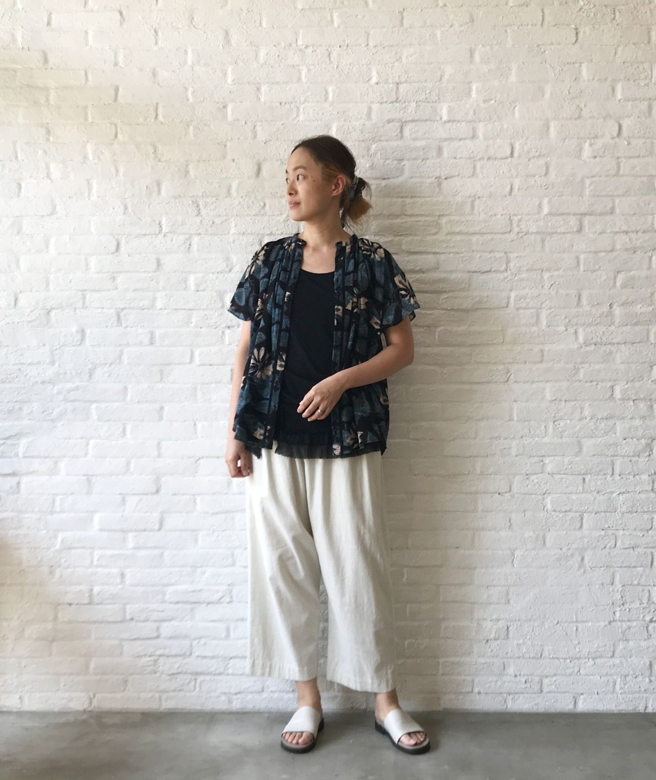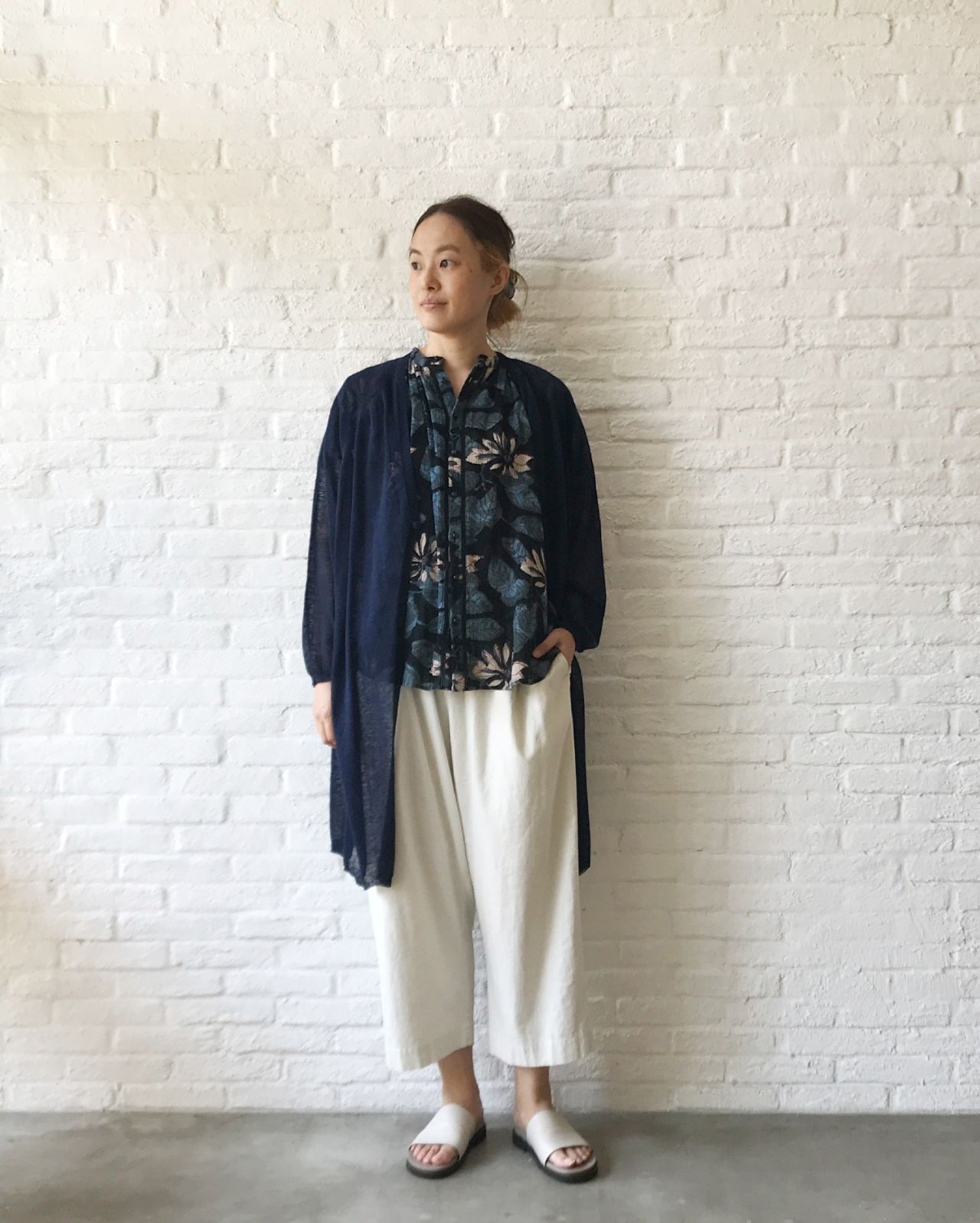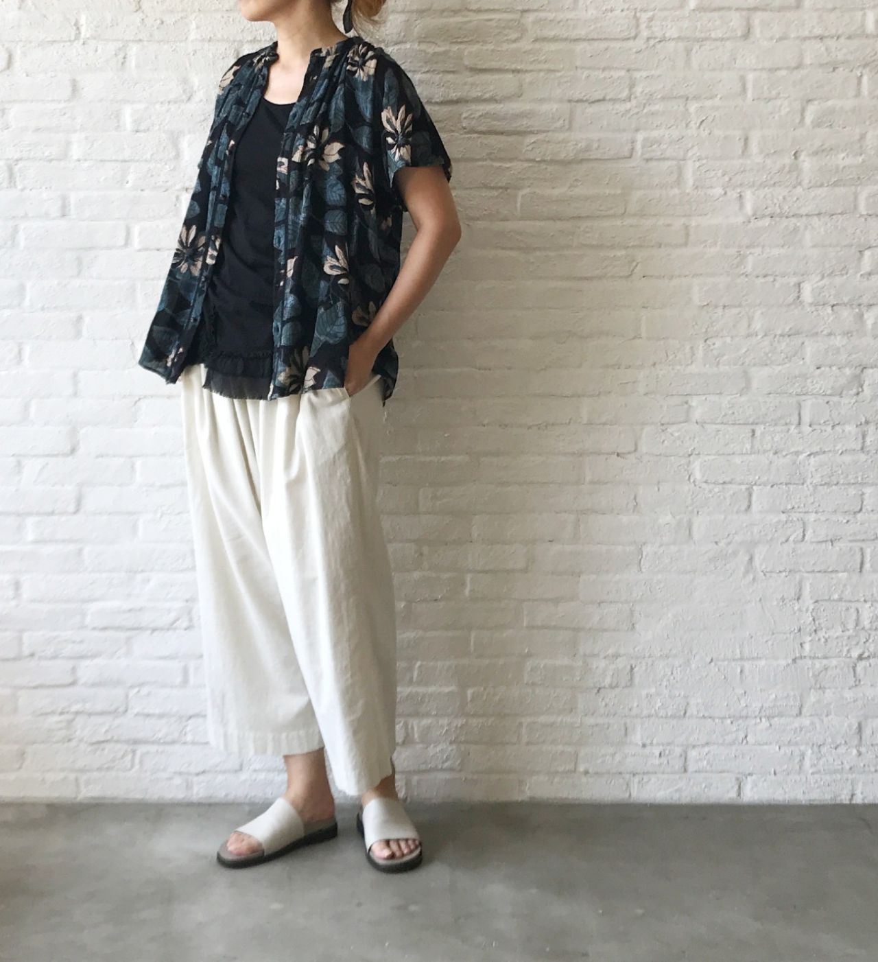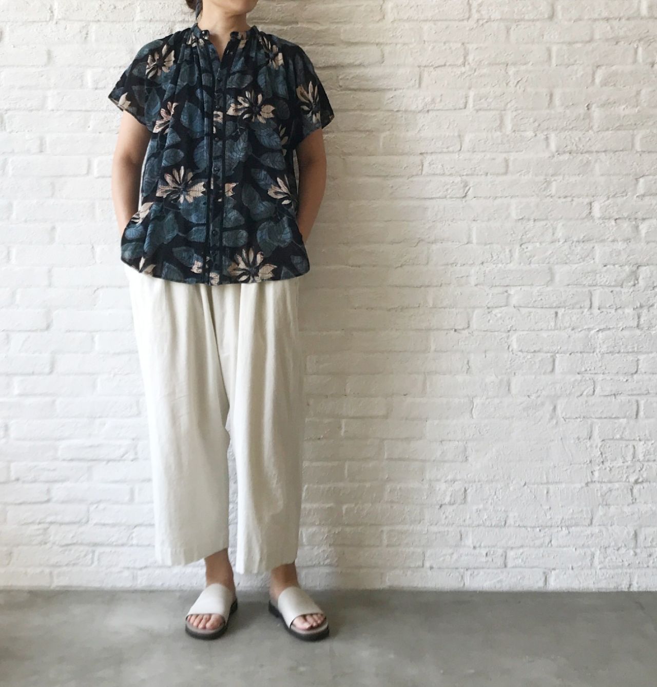 ふわっとした袖はぴったりせず、全体的にもゆったりめなので、風通し良く着ていただけます。
