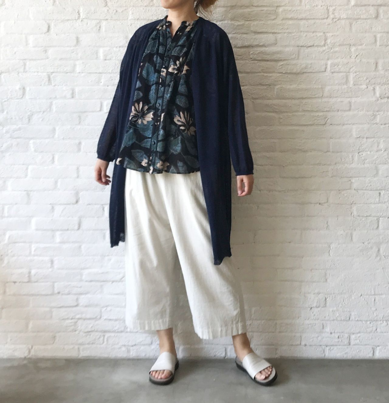 ネイビー×ホワイトのコーディネートで、見た目でも涼しく。