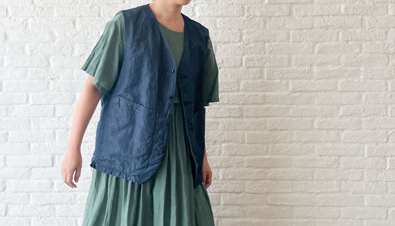 メンズのベストは大きめなポケット等、ワークテイストを感じるアイテム。