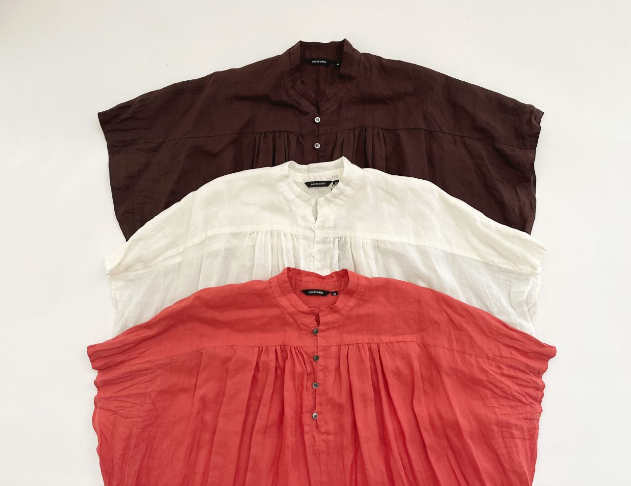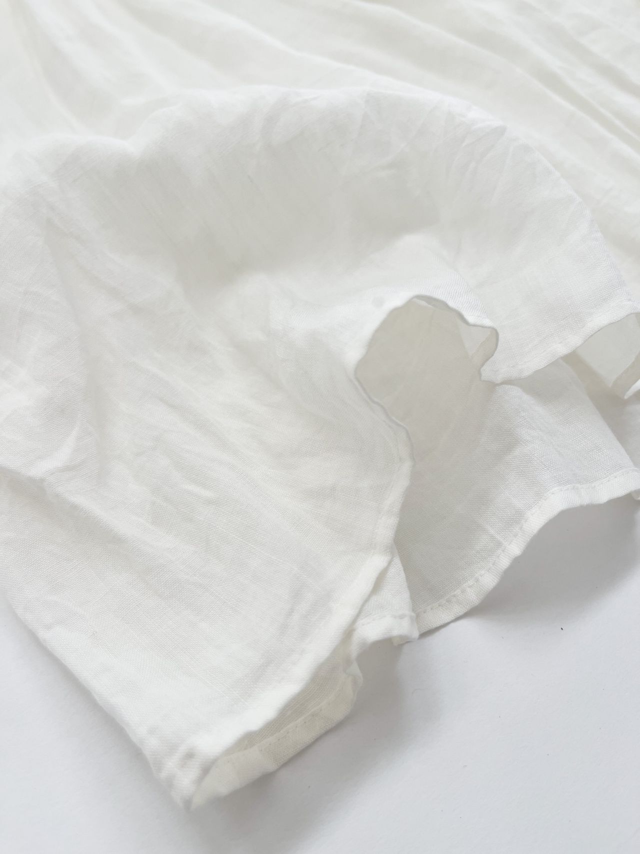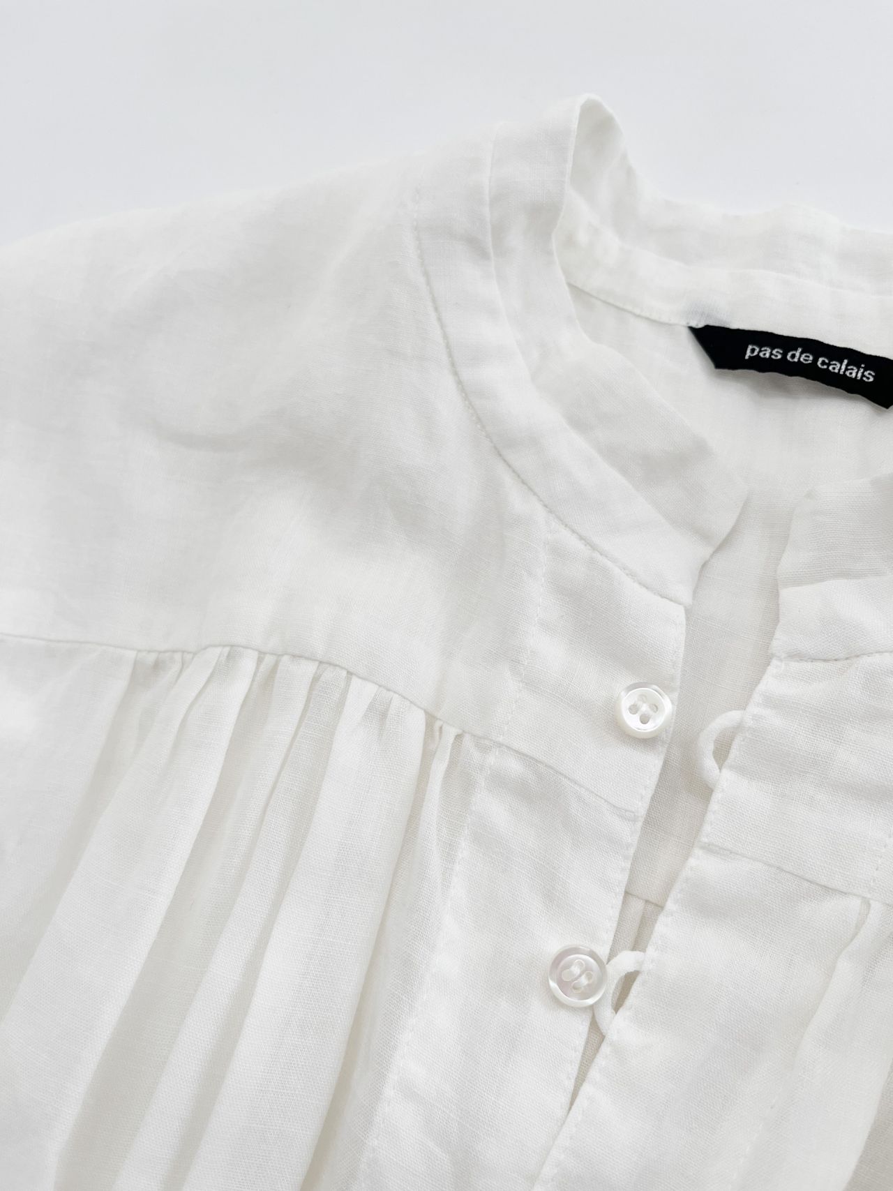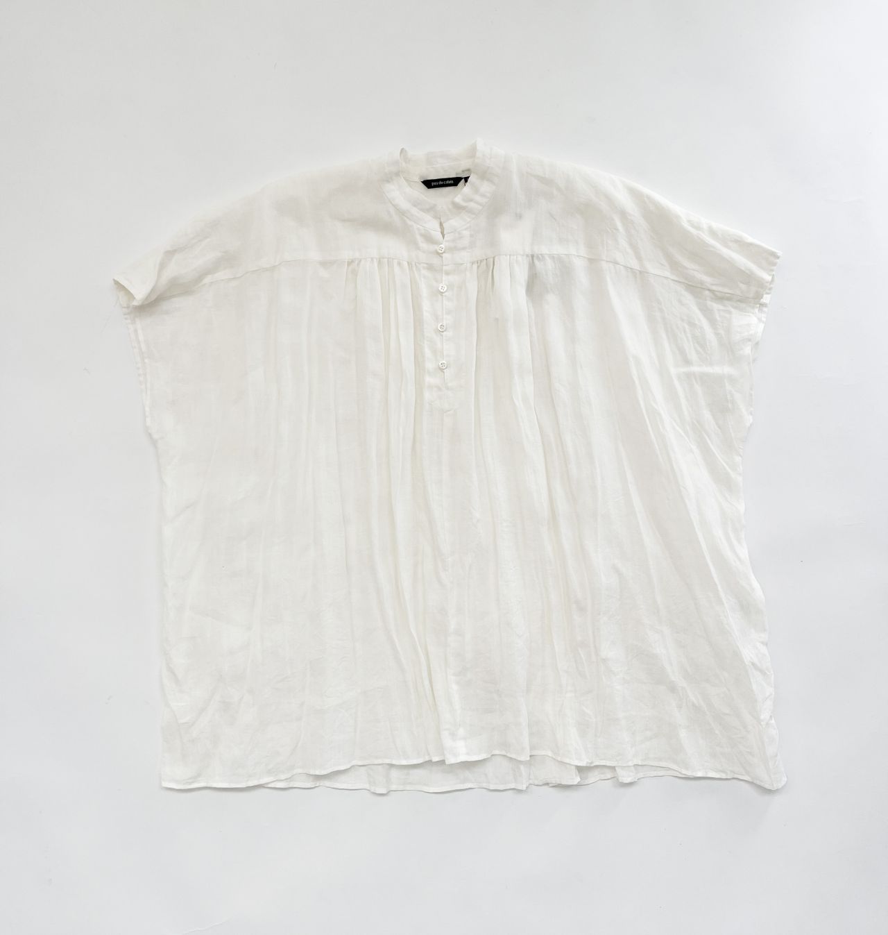 広げると四角くゆったりとしたブラウスに、しわ加工。