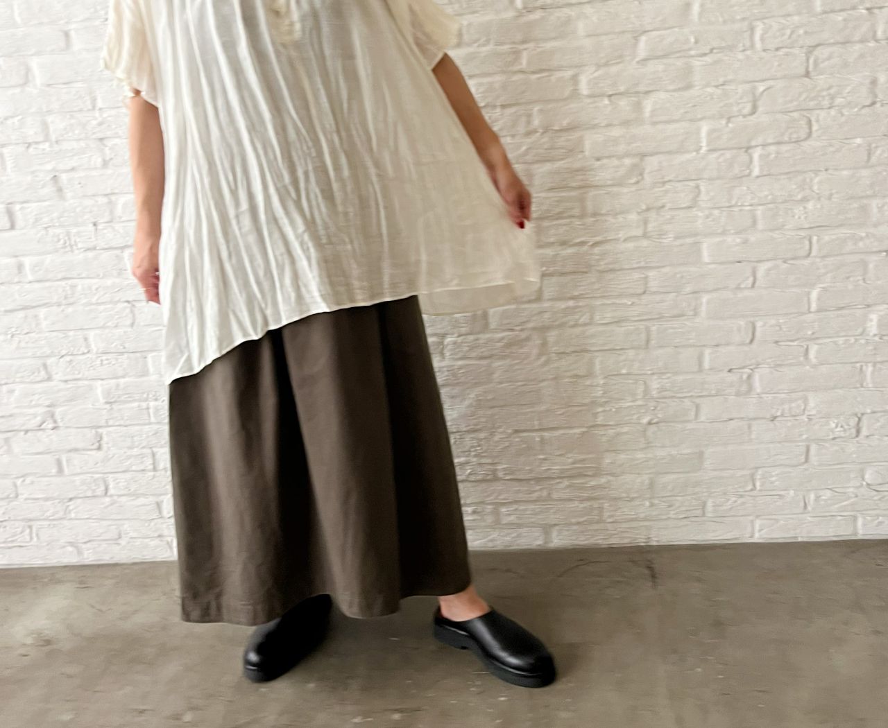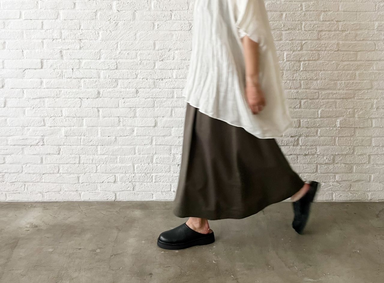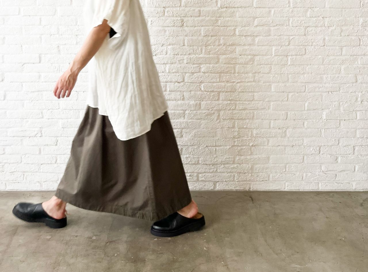 ロング丈なので、夏はサンダルで合わせたいですね。