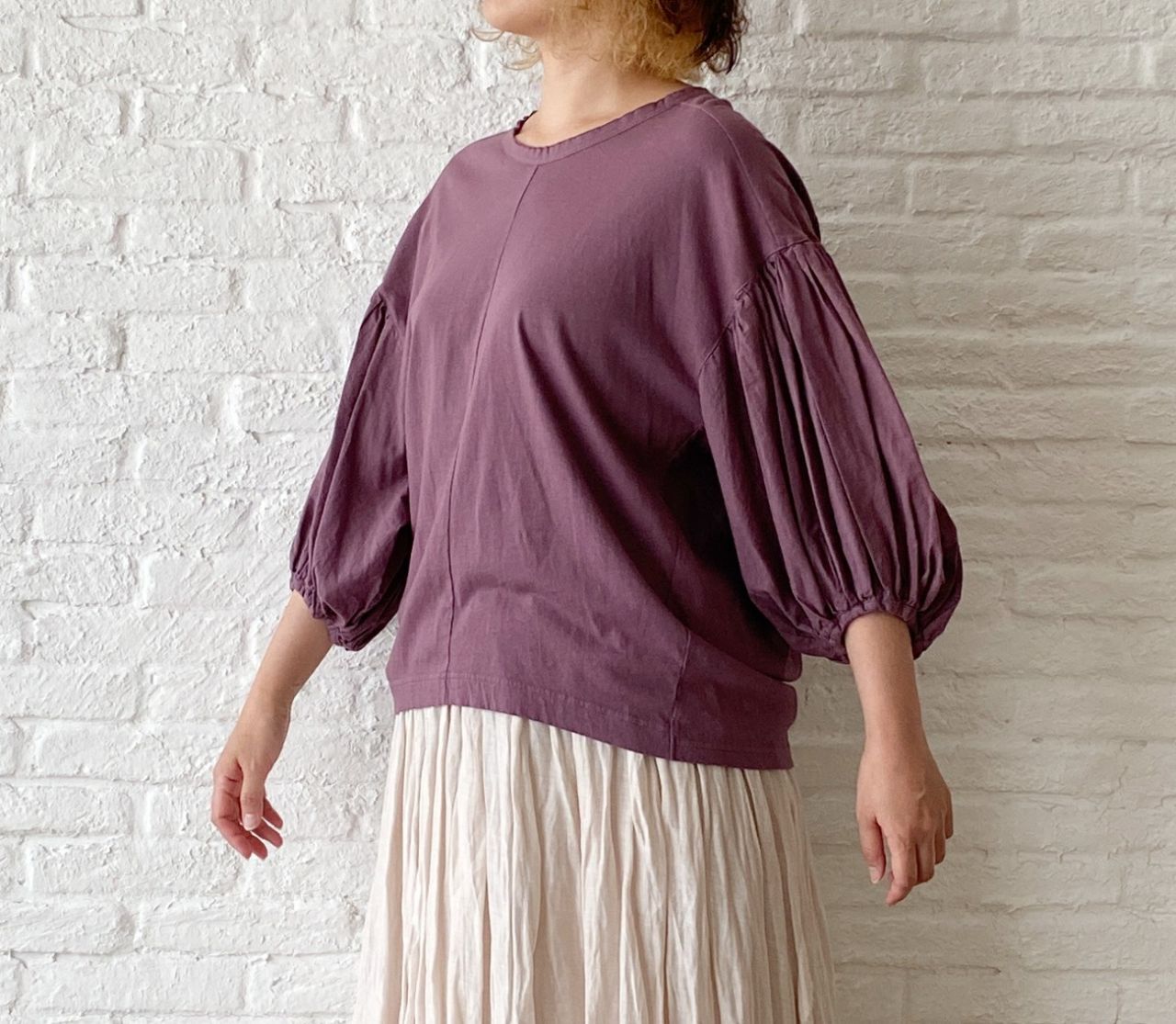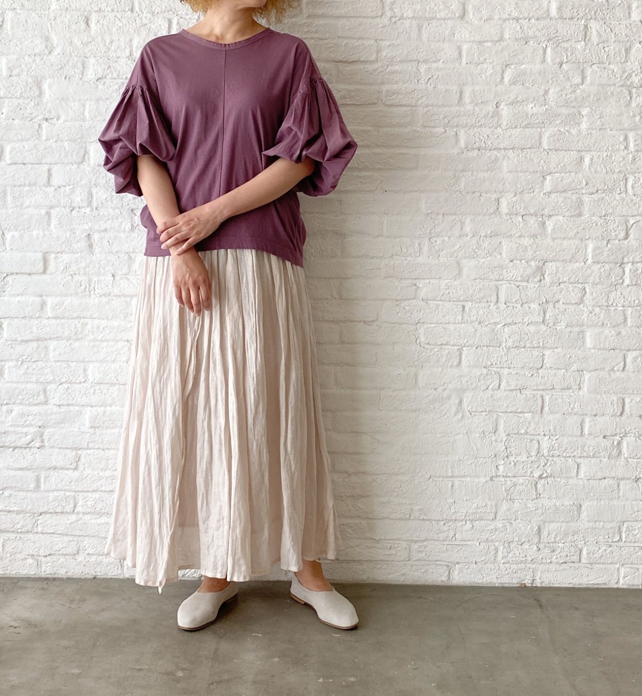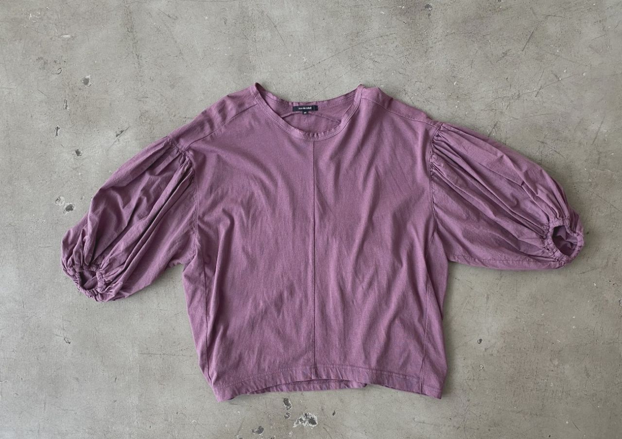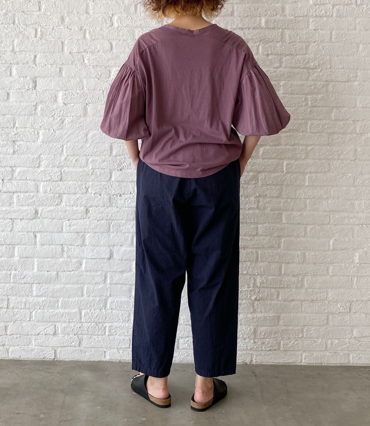 袖口のゴムを肘まで上げて五分袖にすると、よりふんわり感が出るシルエットに。