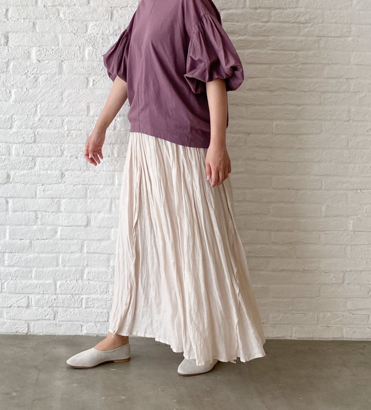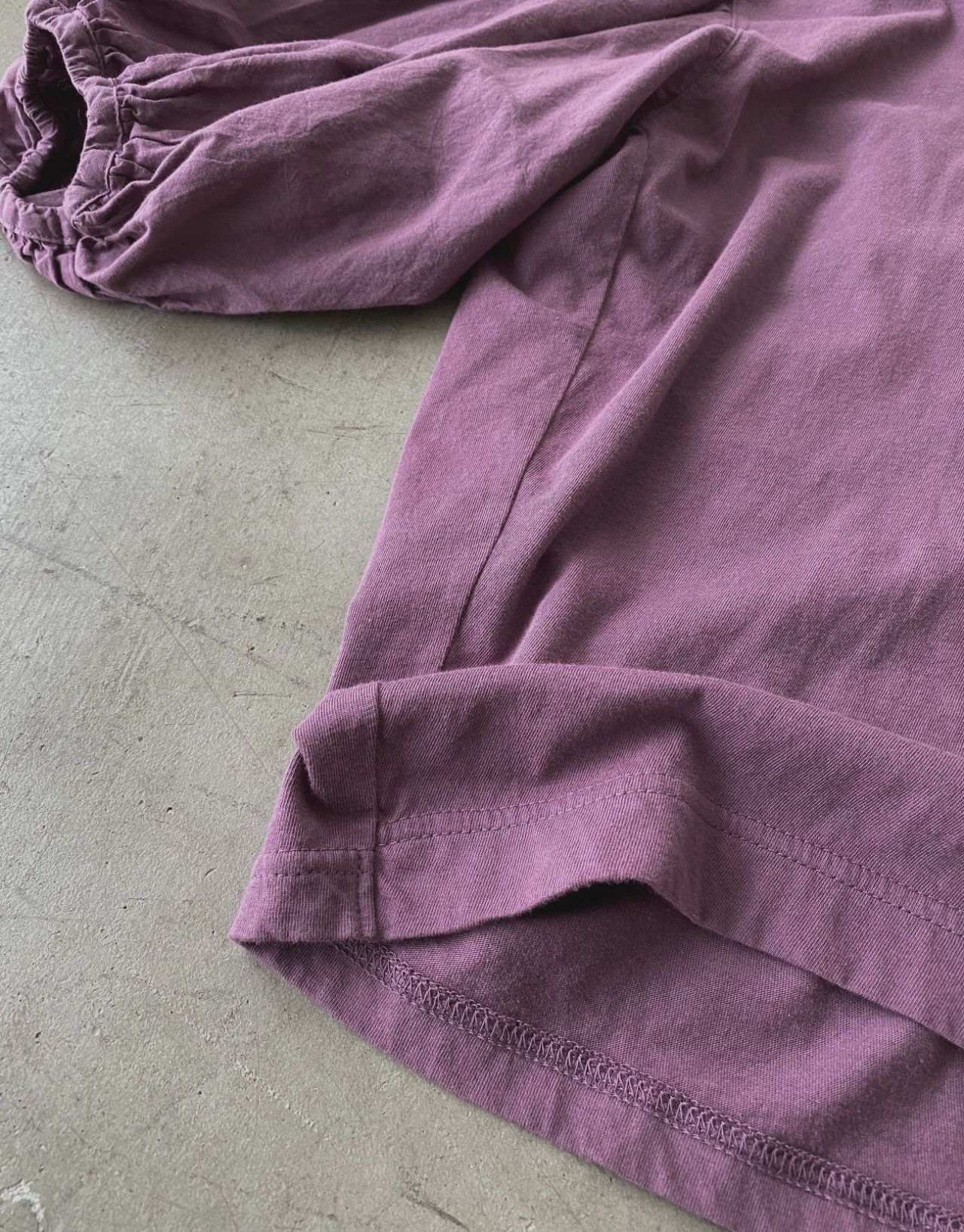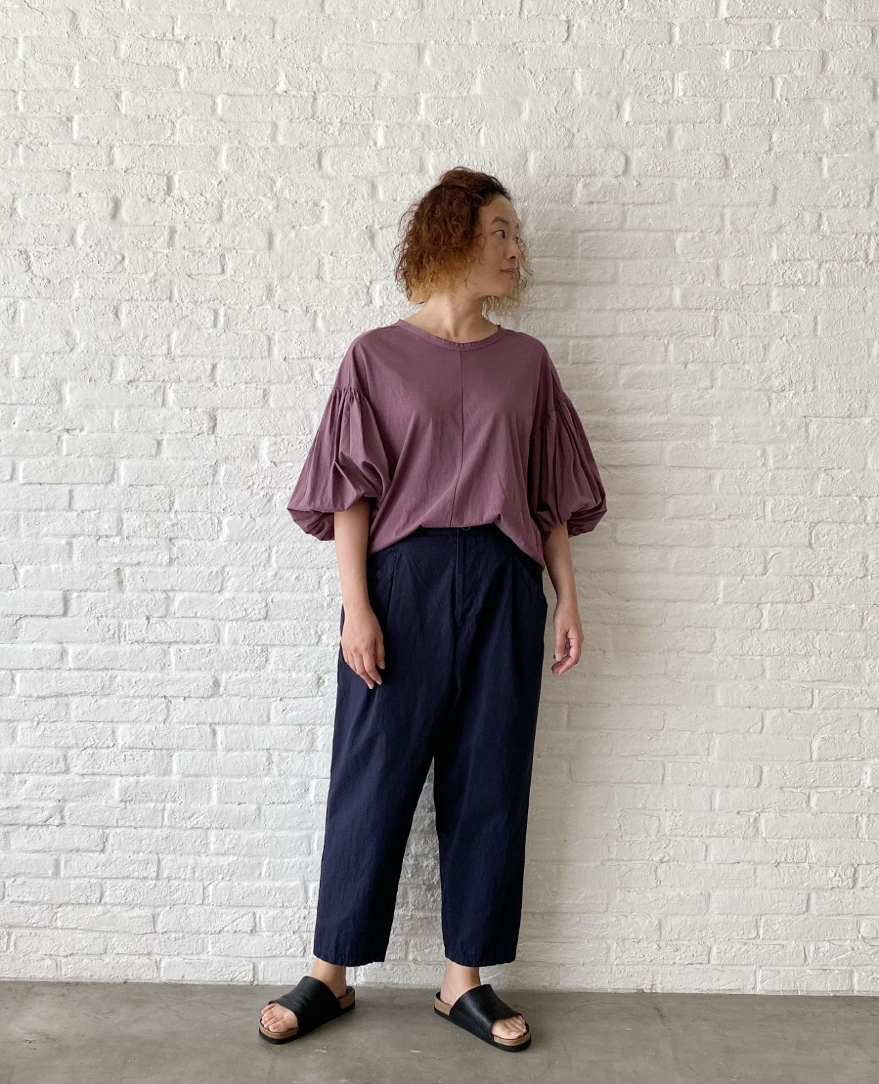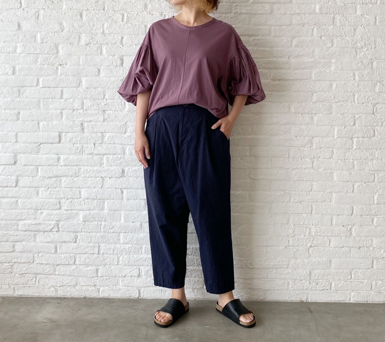 袖口のゴムを肘まで上げて五分袖にすると、よりふんわり感が出るシルエットに。