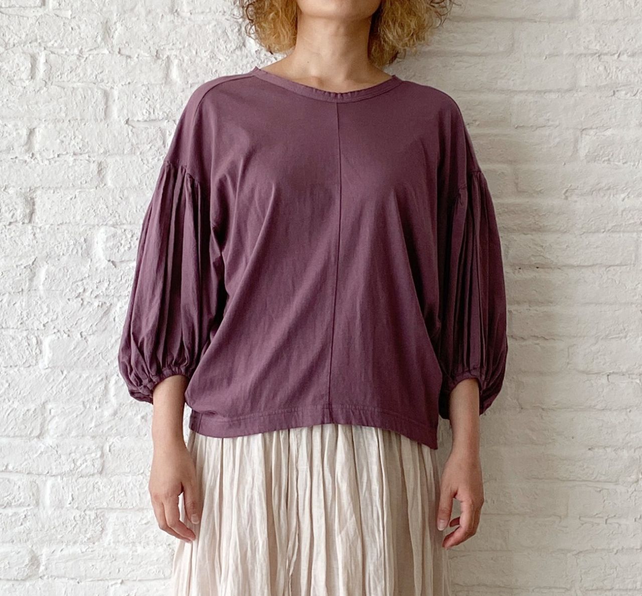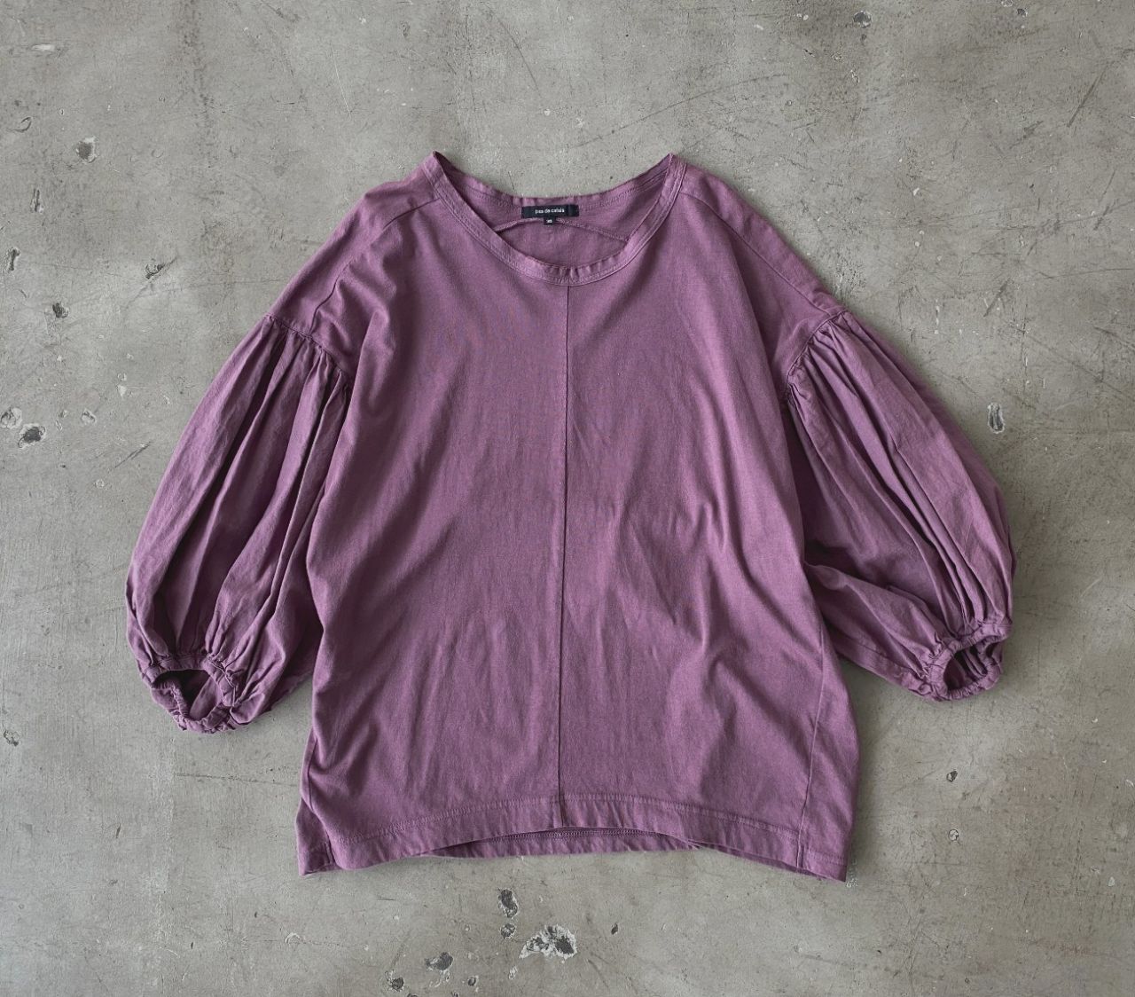 no.1480 カットソー&布帛コンビ製品染 ボリューム袖プルオーバー