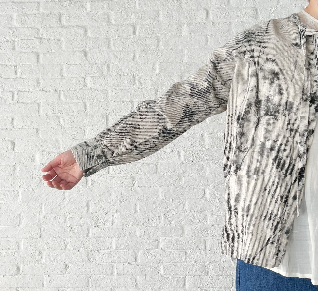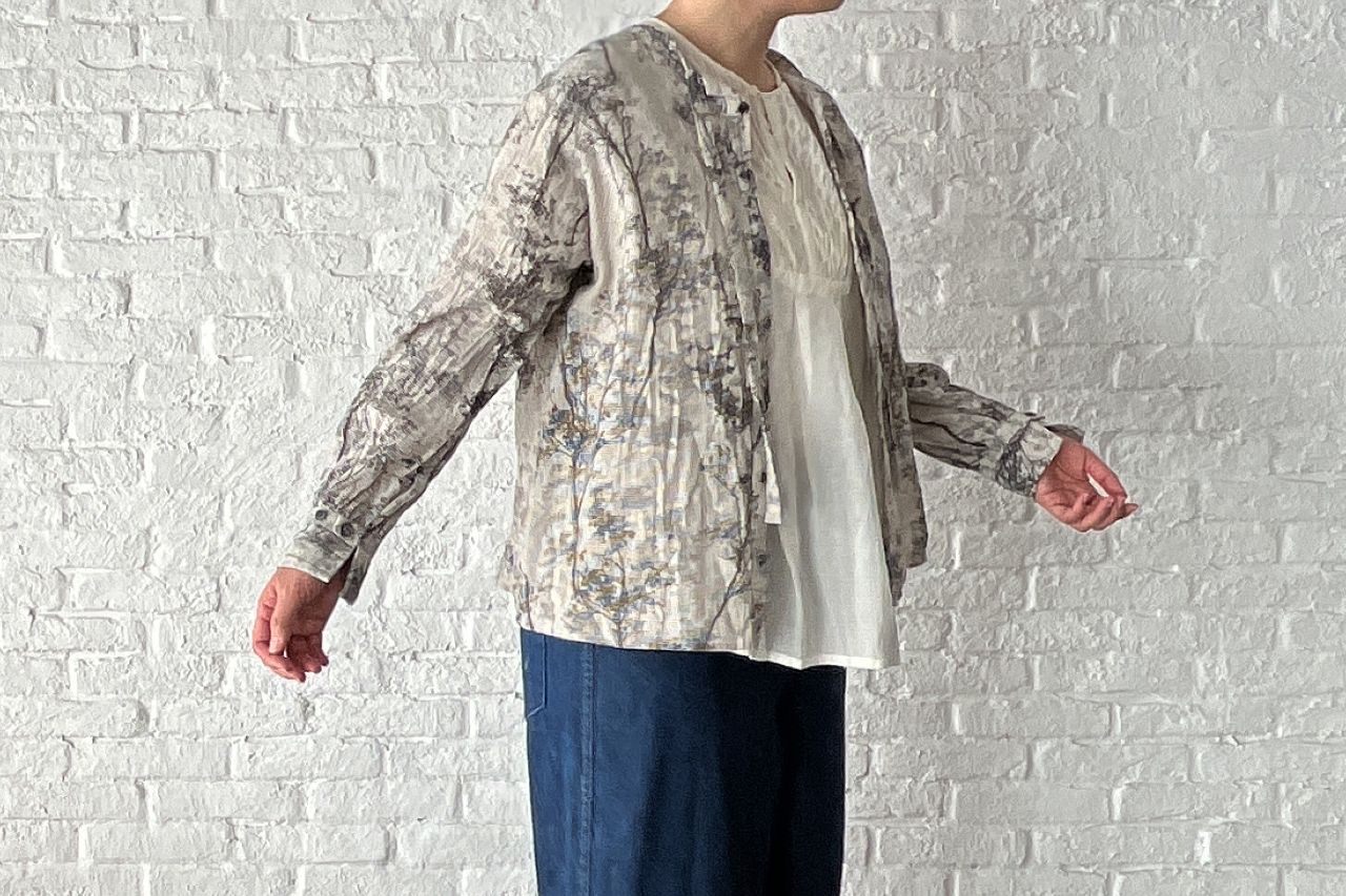 着方が3通りあり、ボタンを前にしてカーディガンのように羽織として。
