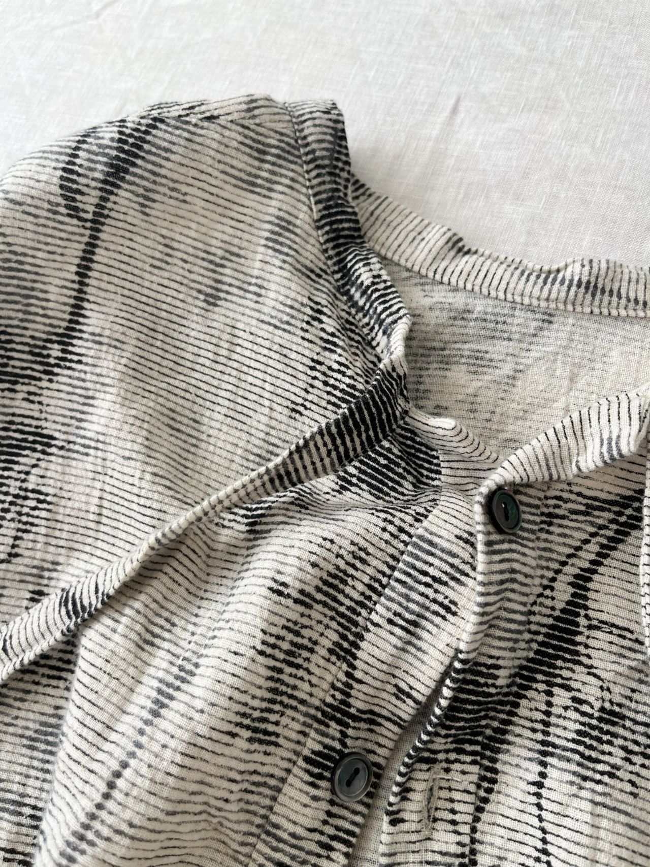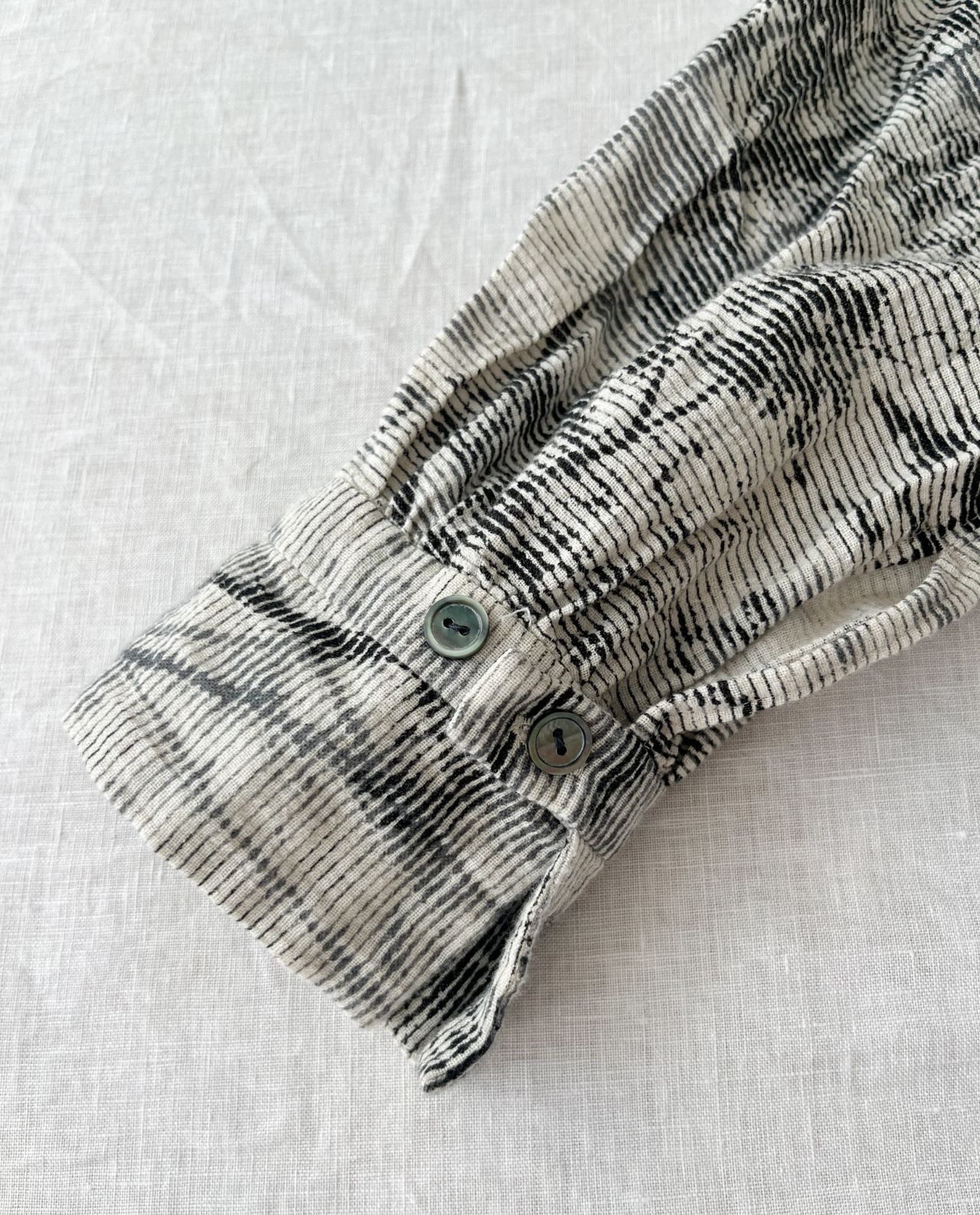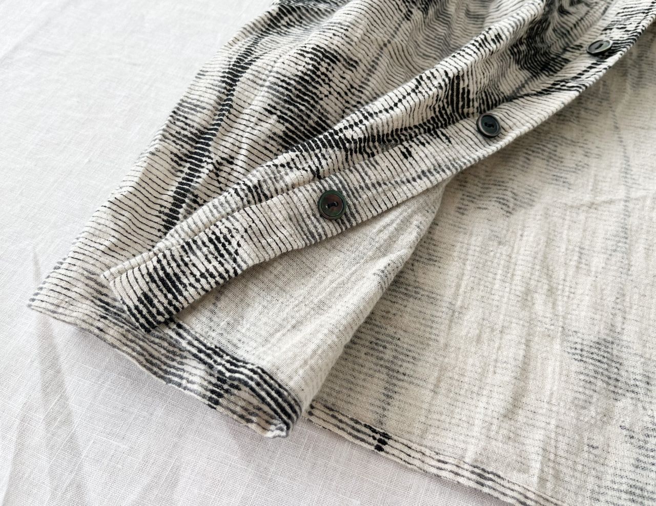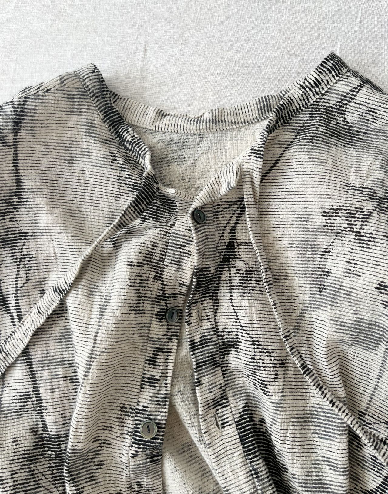 ボタンを前で閉めて、衿の紐を結んでも◎。