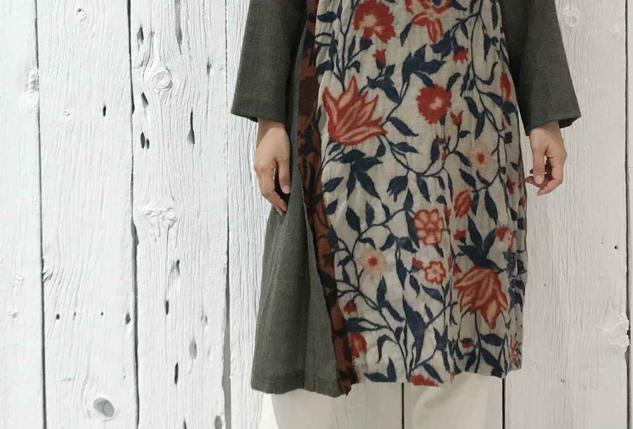 no.4495【30%OFF】ウールガーゼ更紗縮絨プリント ワンピース