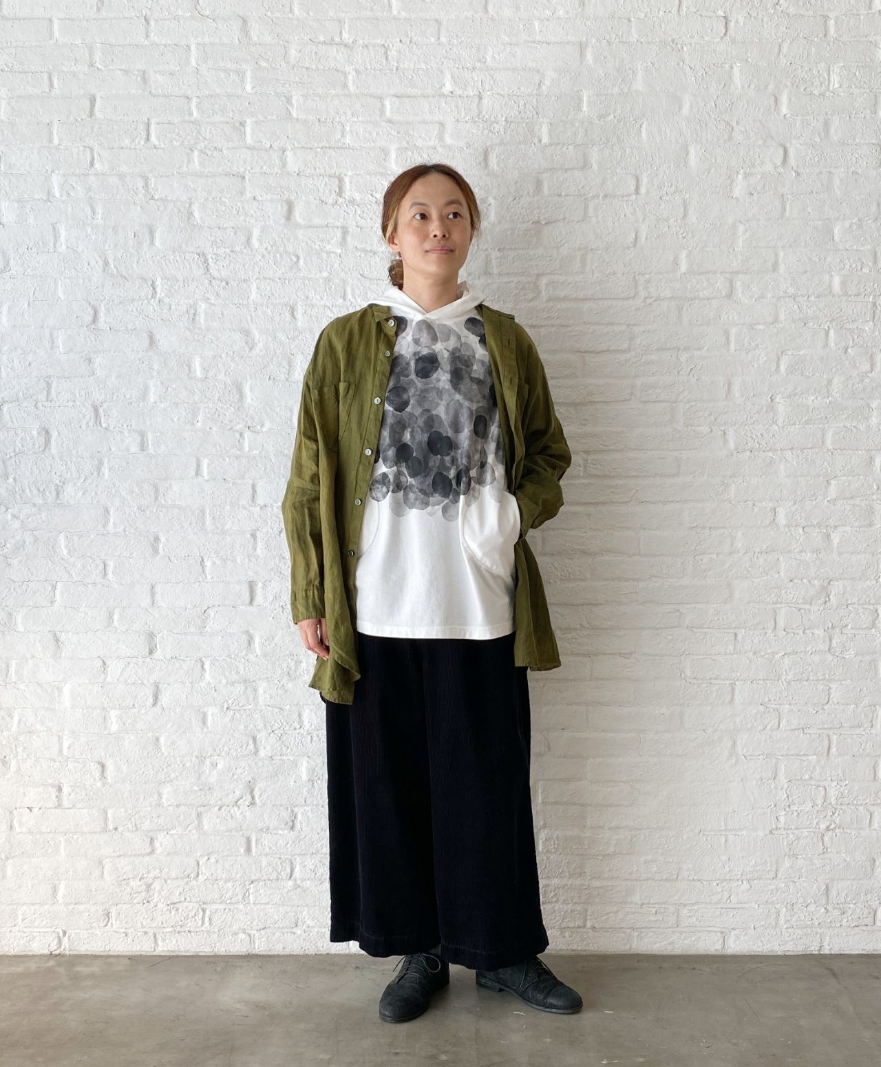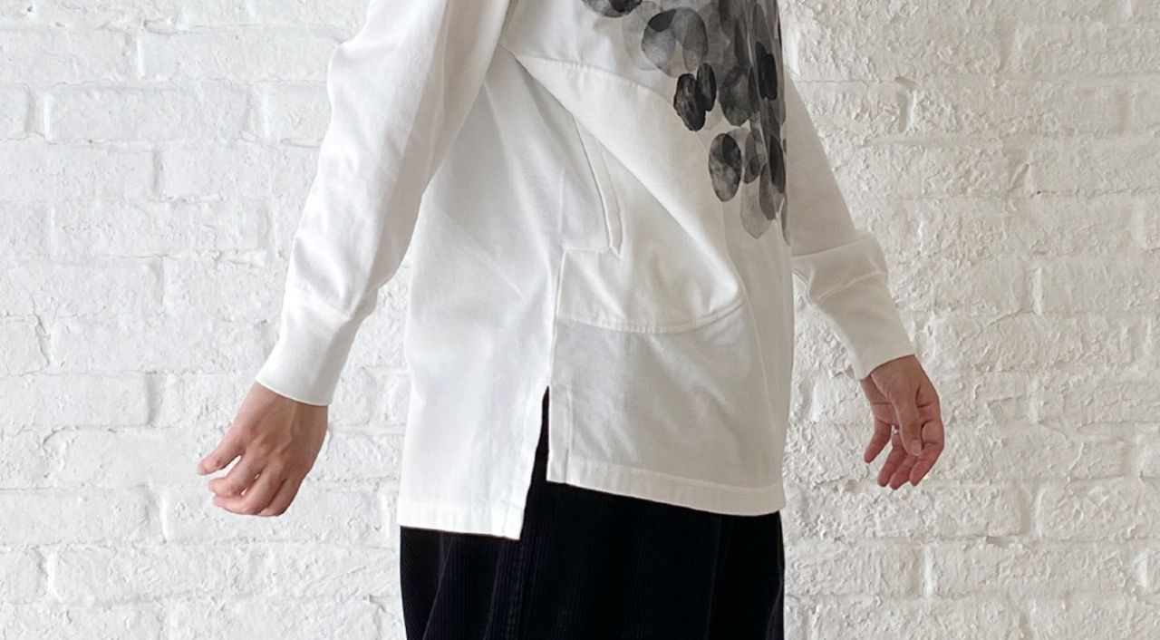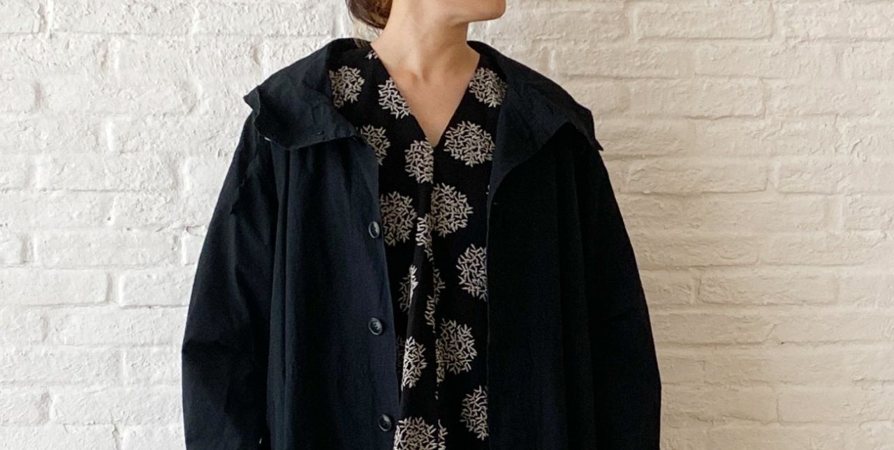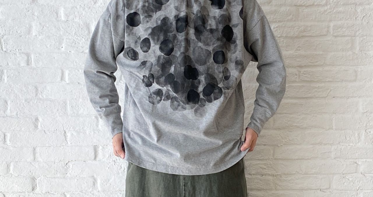 以前のブログ でもご紹介した、染めを施したビッグブラウスで重ね着スタイルを。