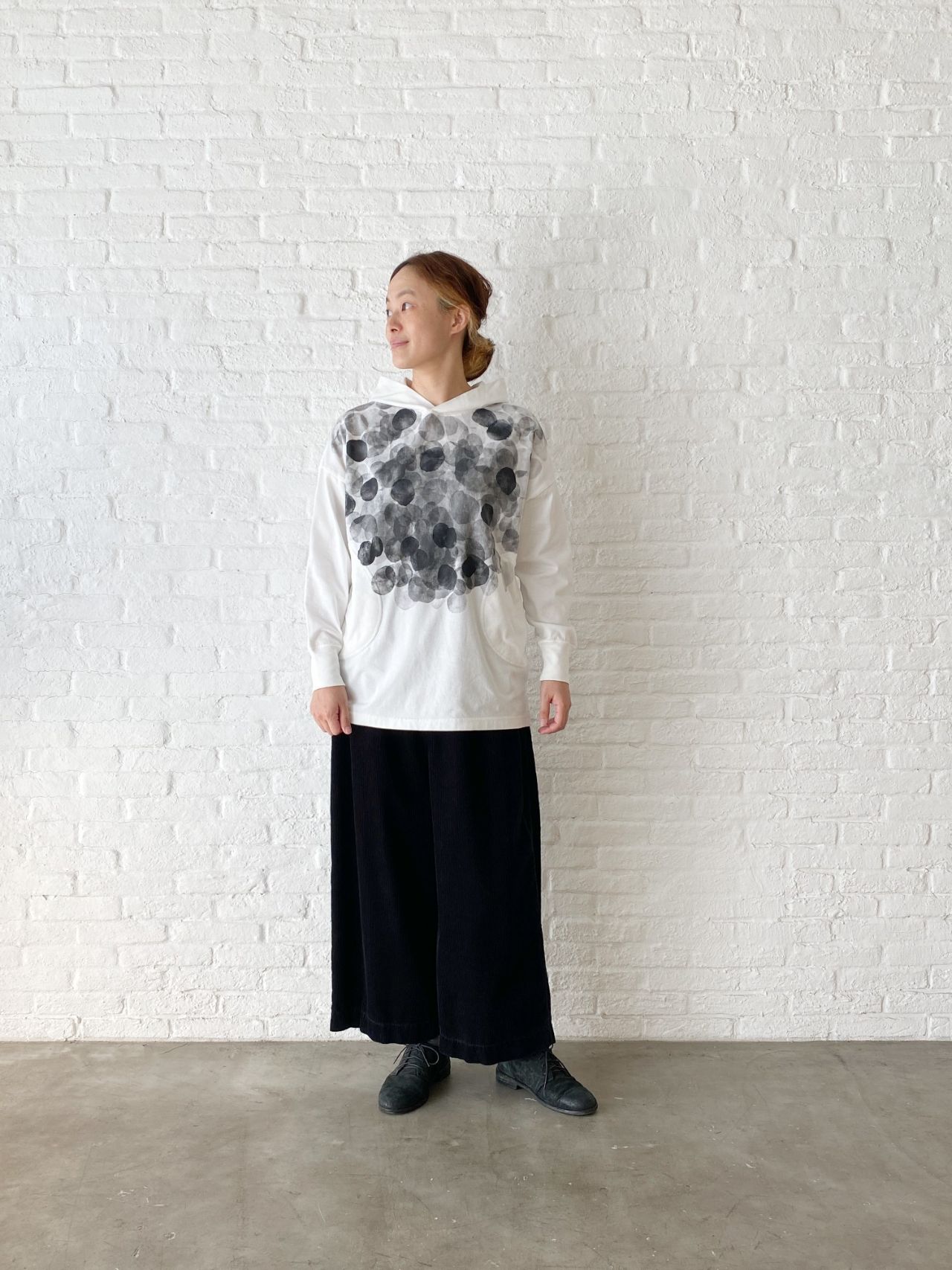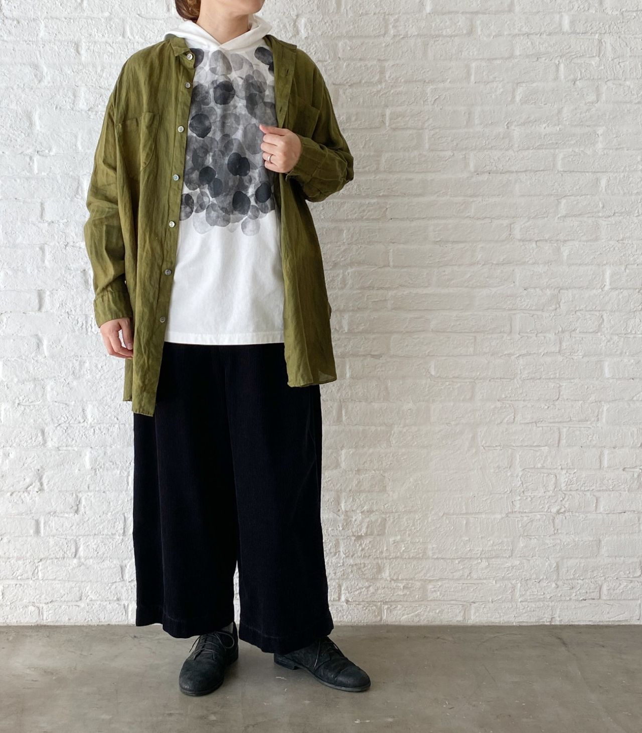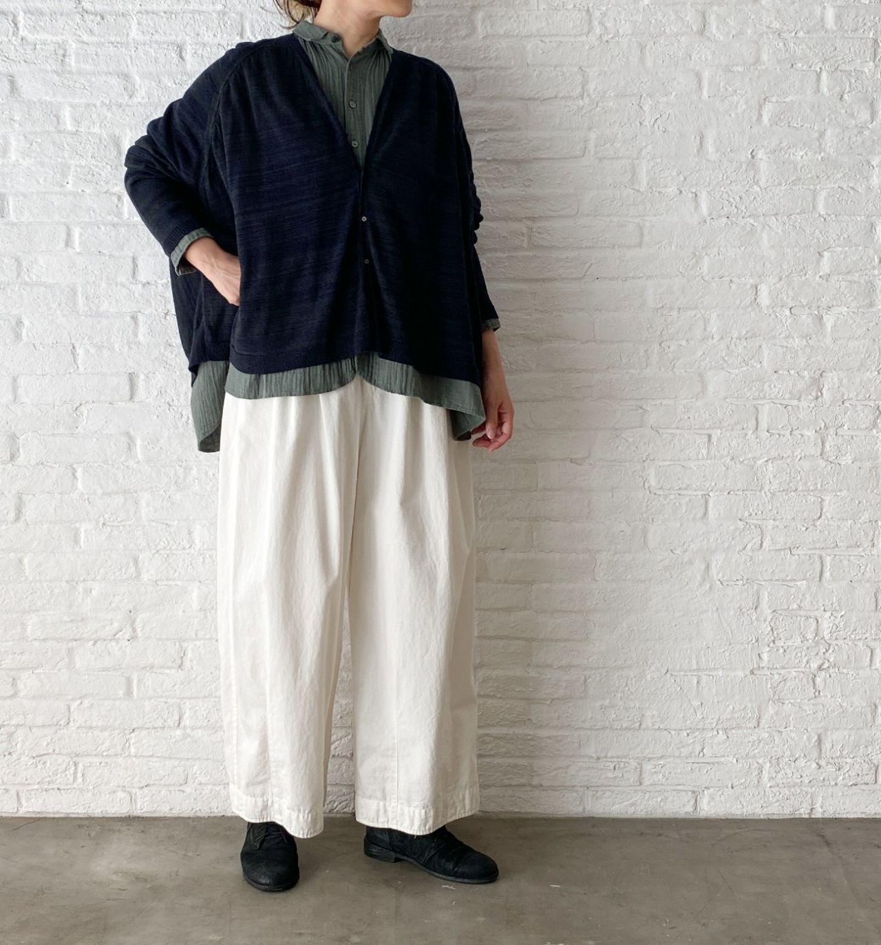 以前のブログ でもご紹介した、染めを施したビッグブラウスで重ね着スタイルを。