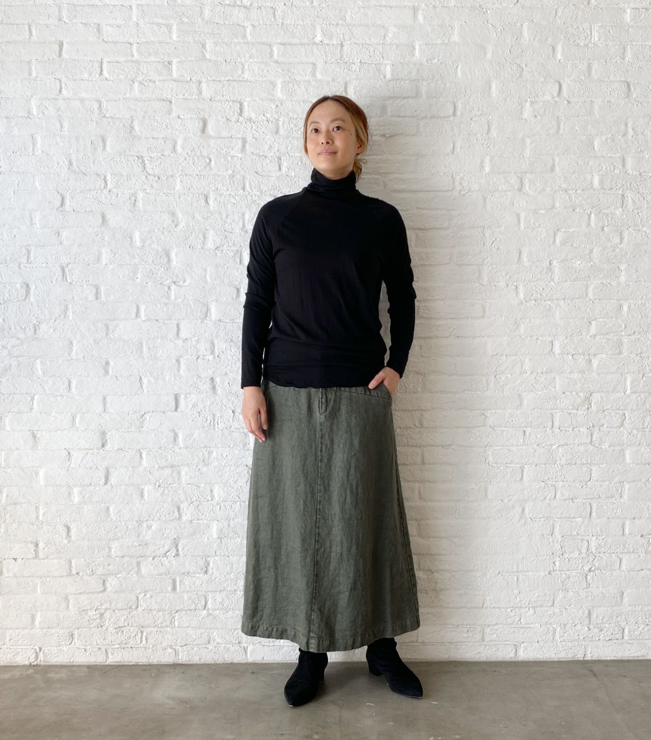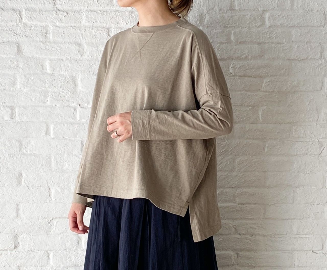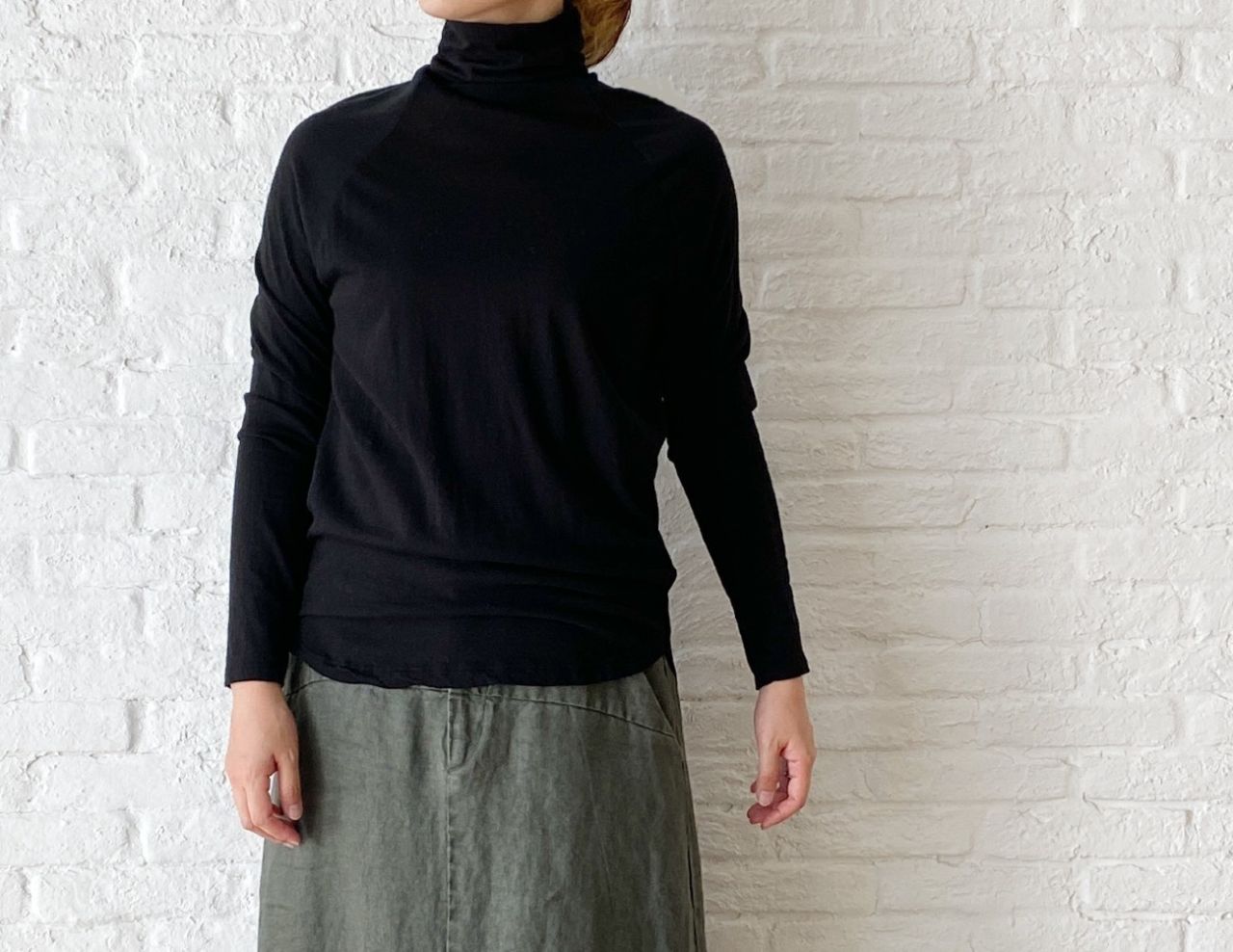 体に程良く沿うシルエットのカットソータートル。