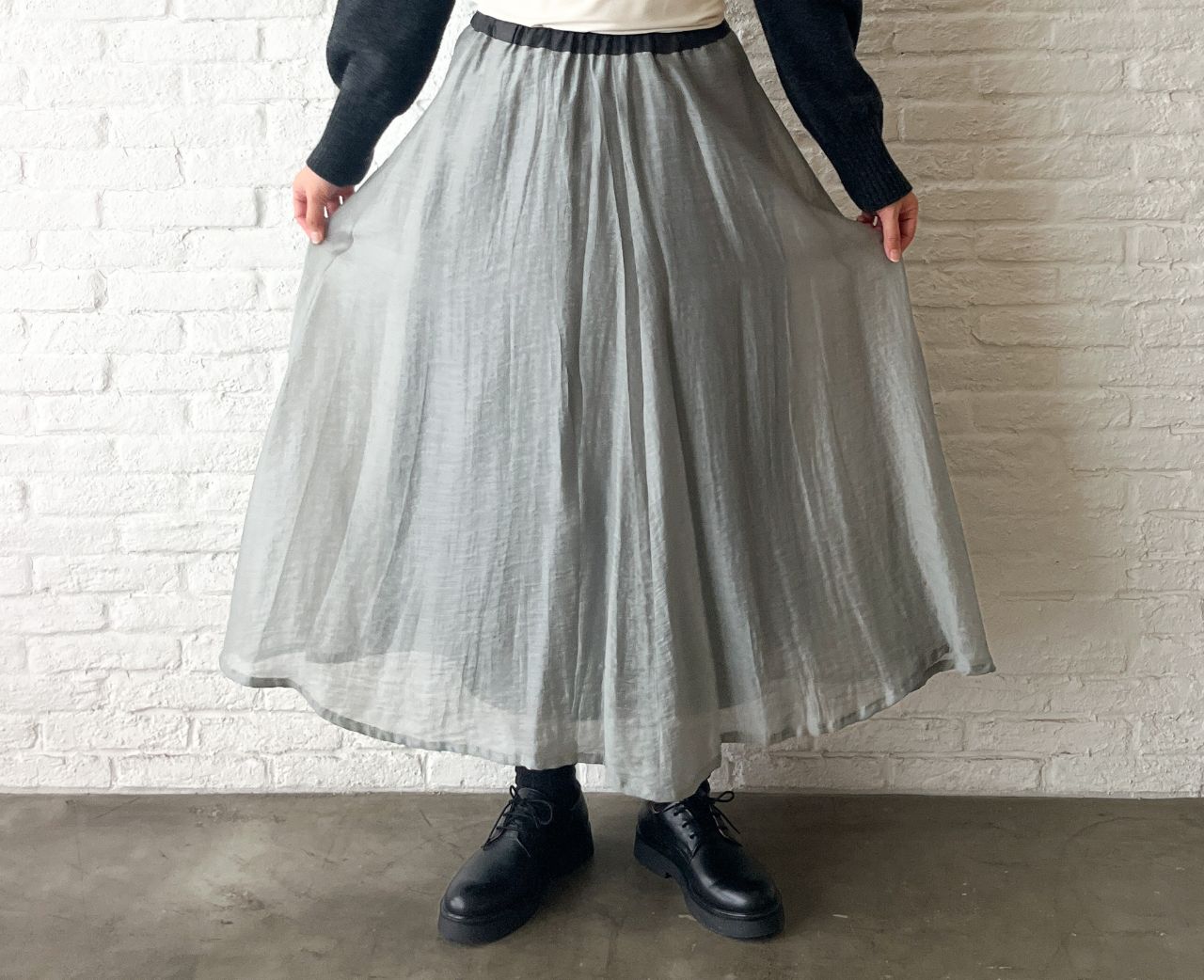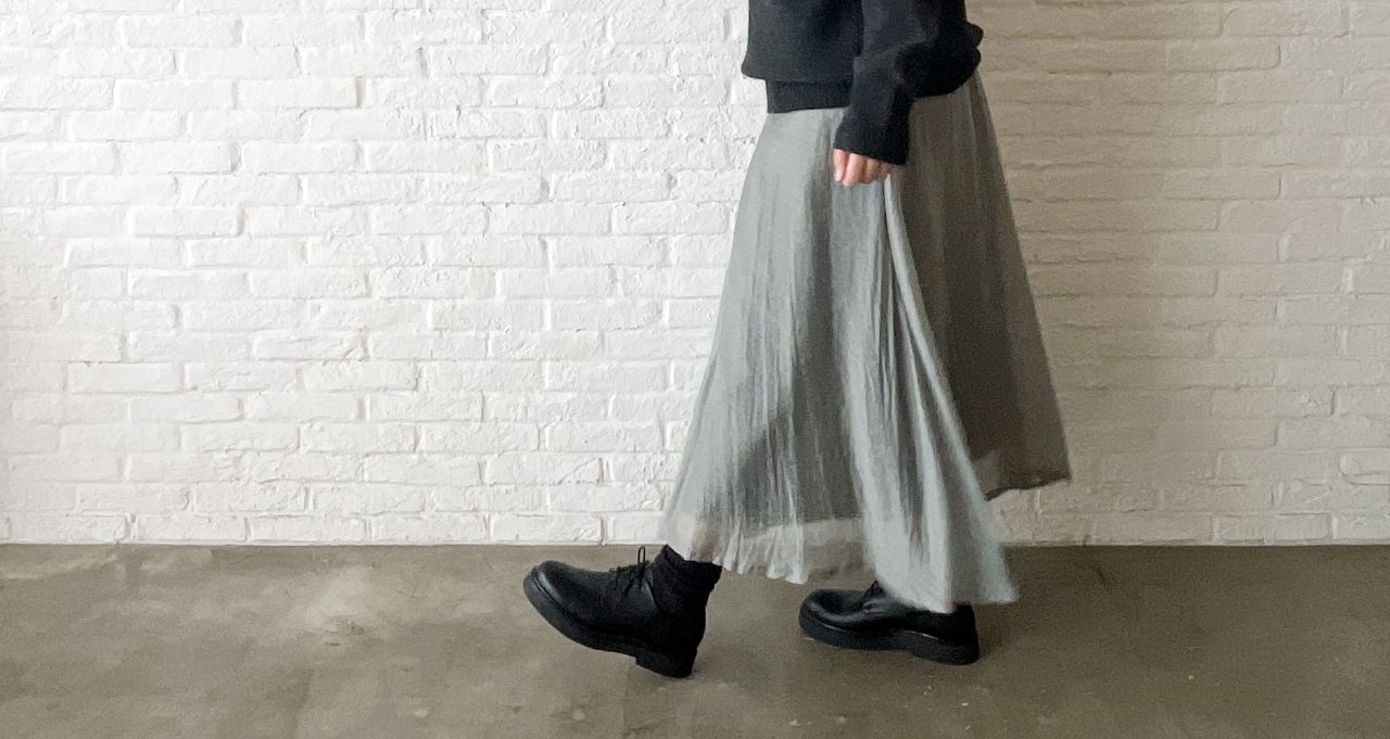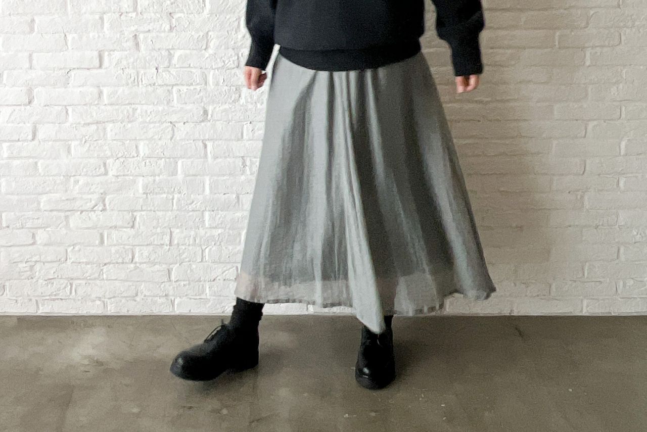 新作の、ふわりと軽い素材のロングスカート。
