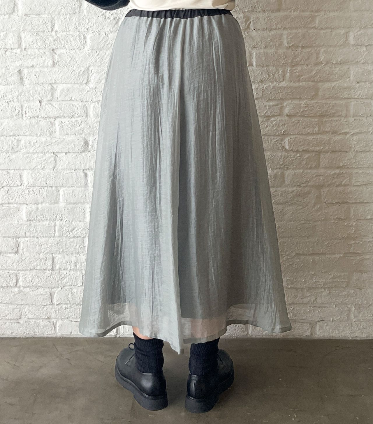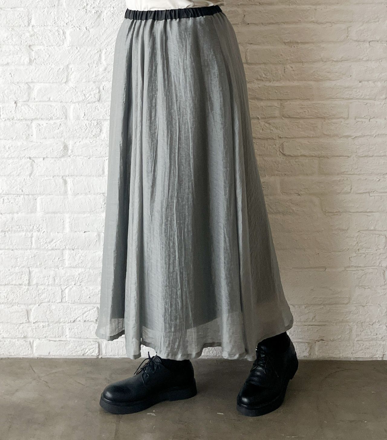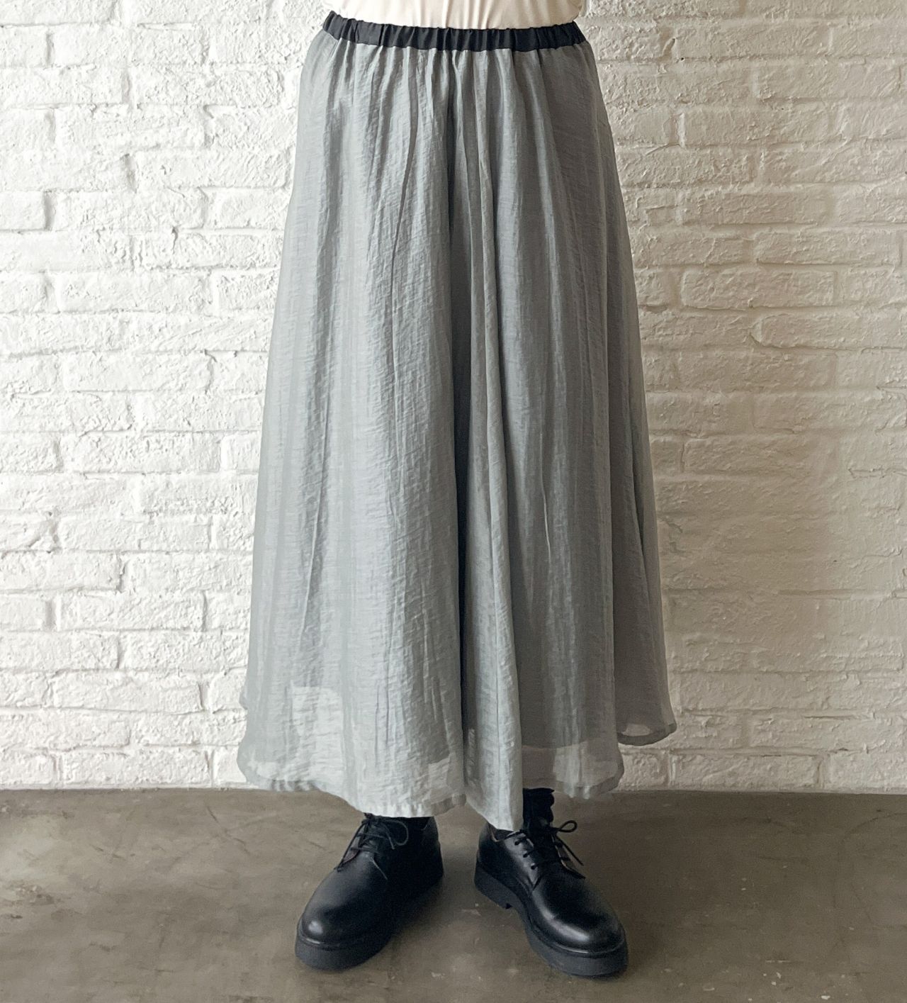 新作の、ふわりと軽い素材のロングスカート。