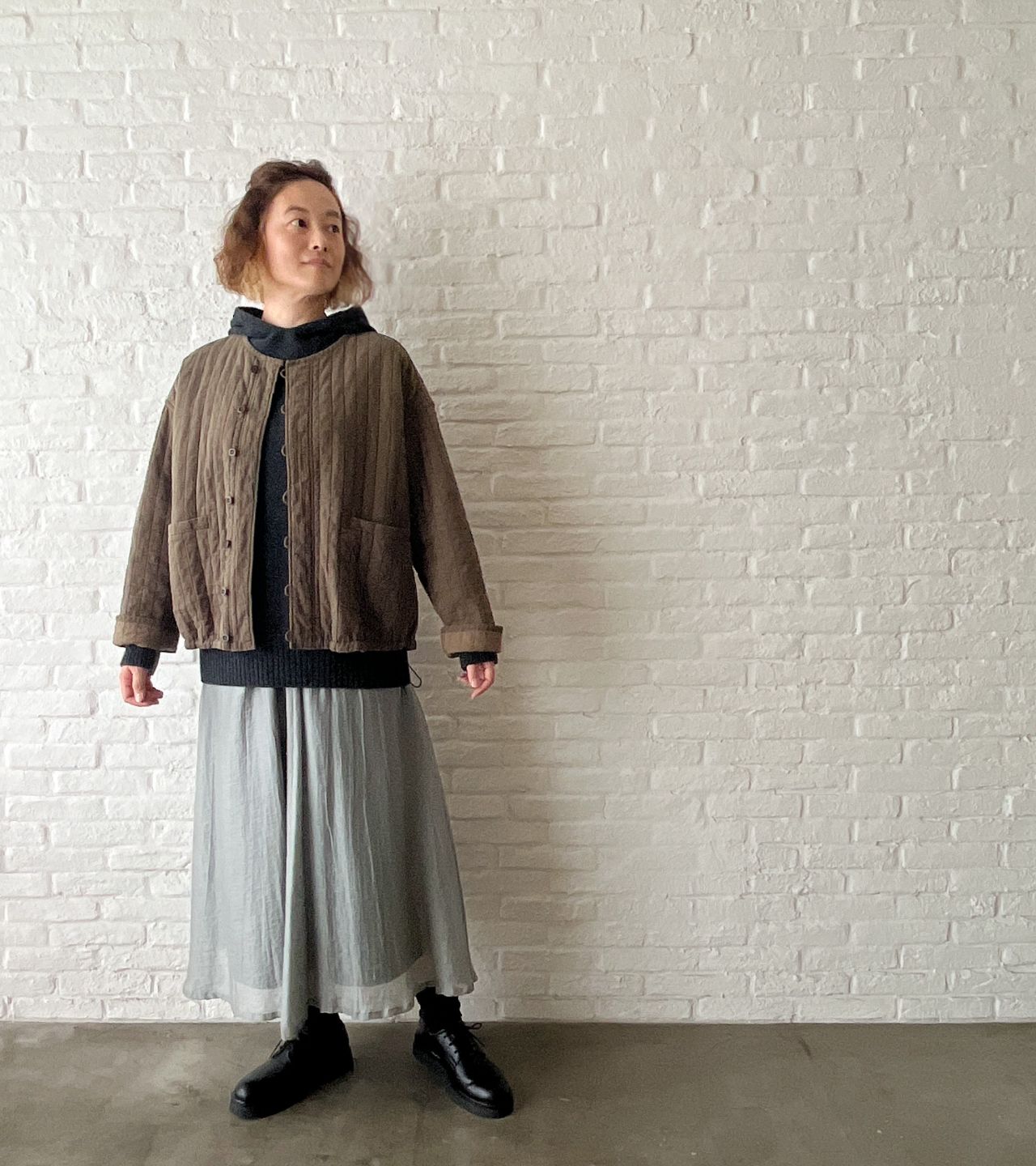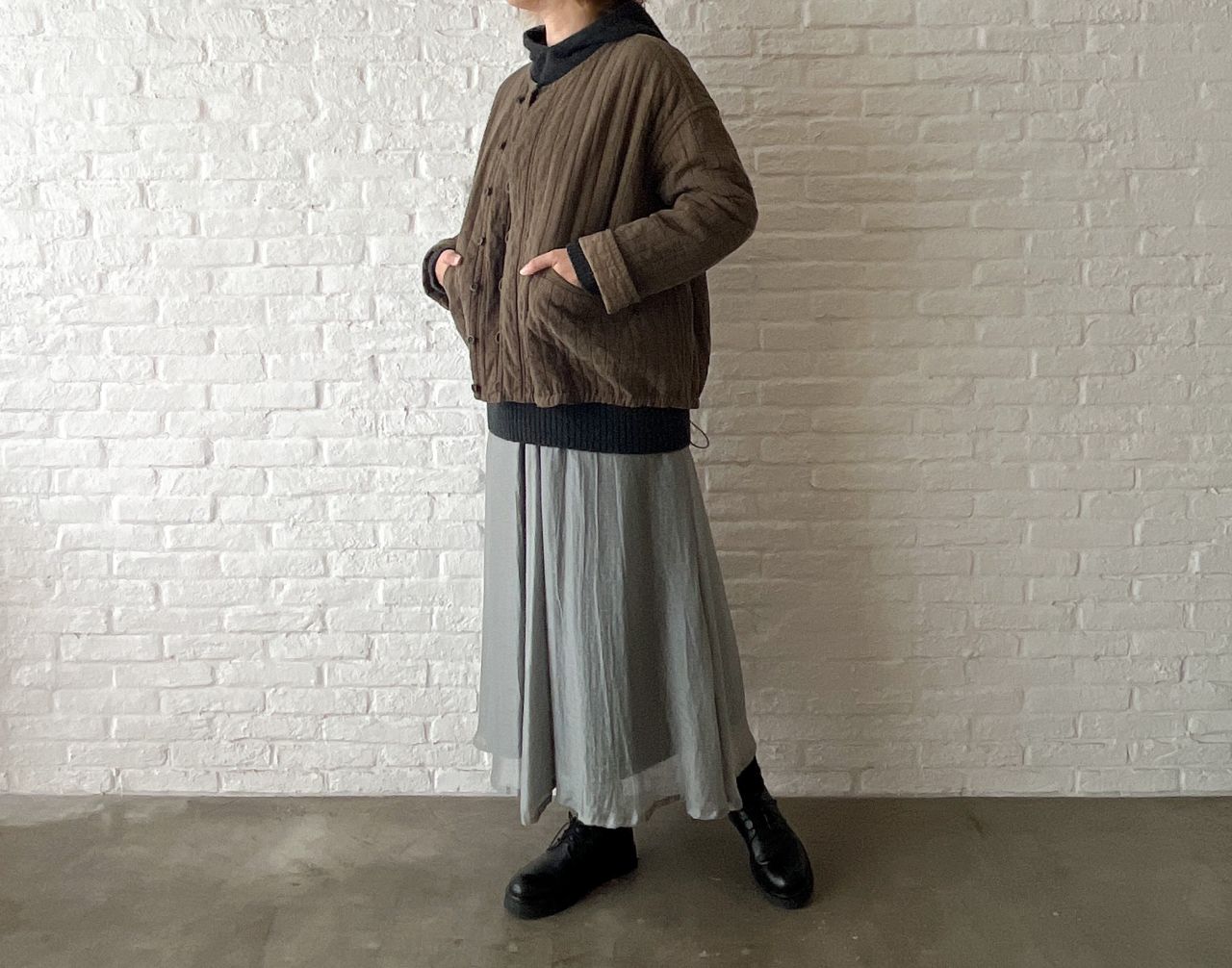裾にはコードを入れているので、お好みで絞ってシルエットを調節いただけます。