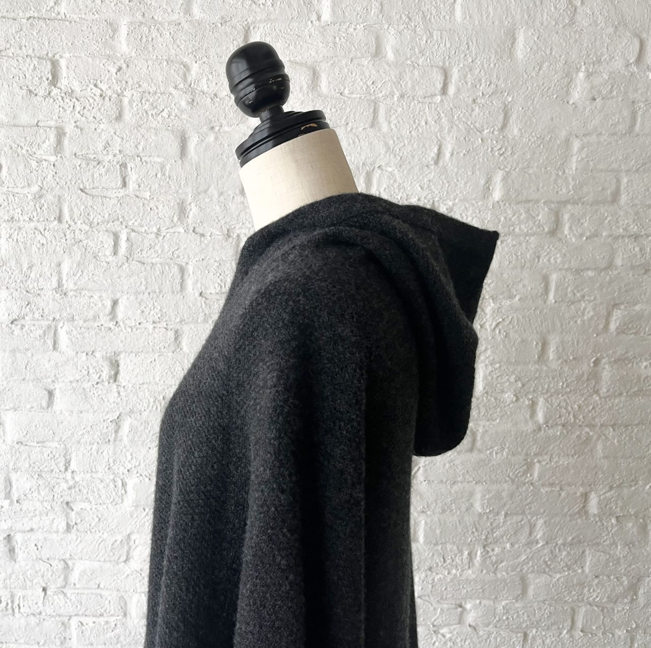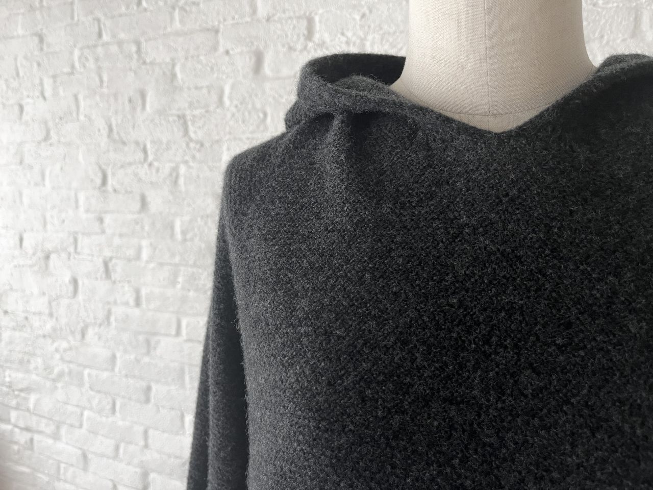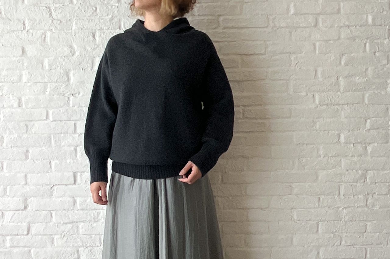 ニットでは珍しいフード付き。