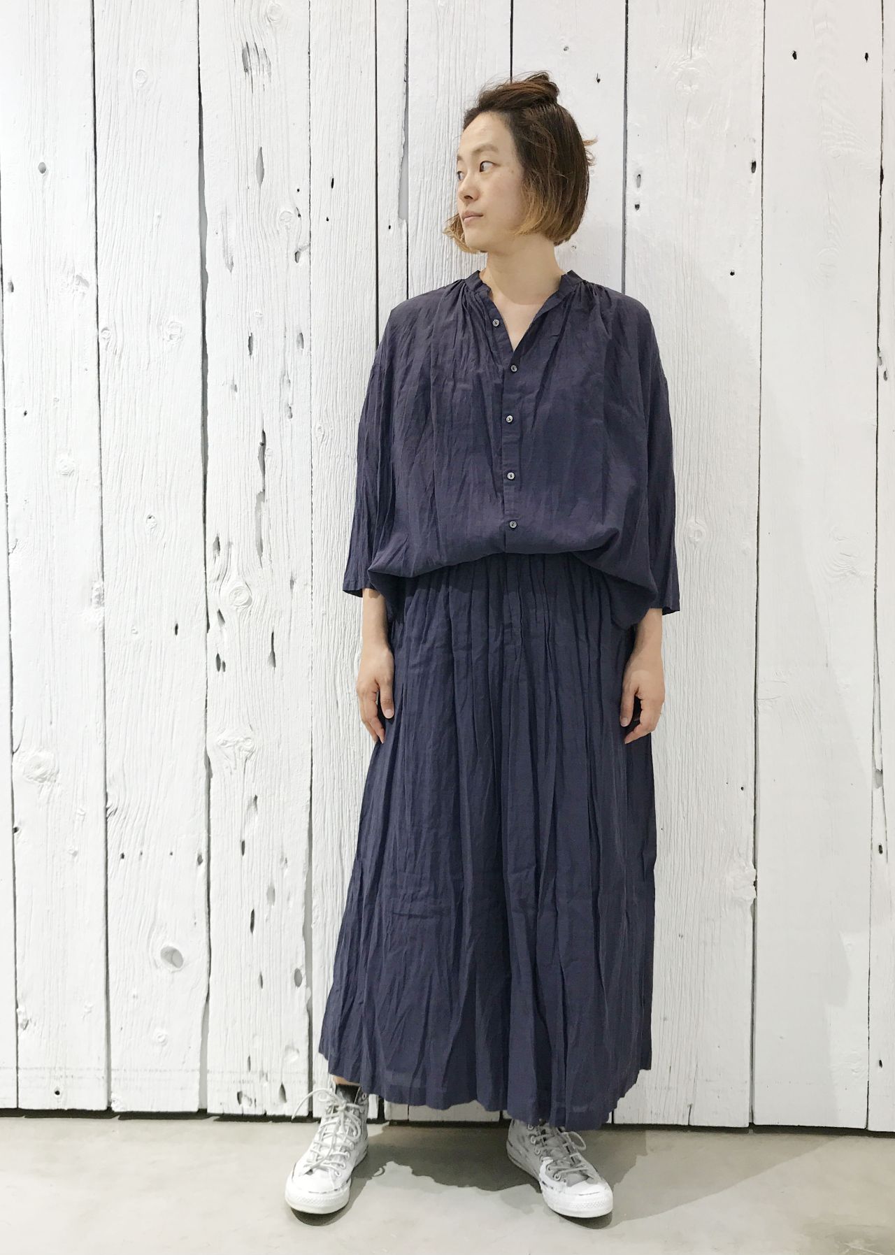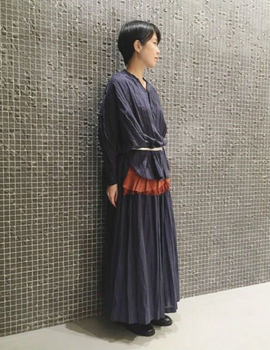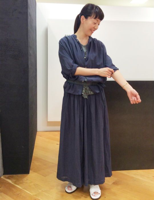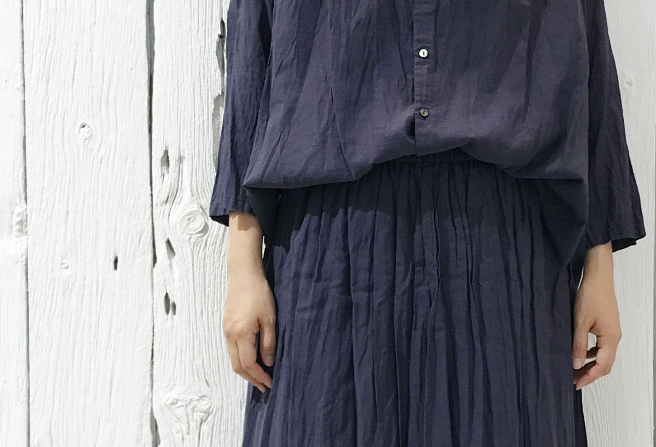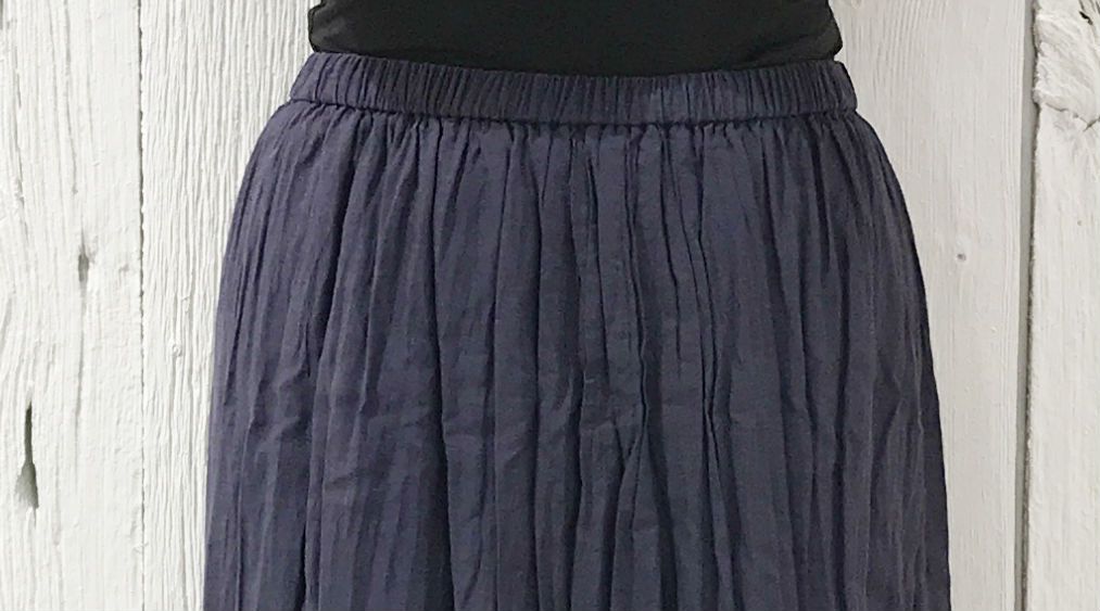 タテ絞りを入れたロングスカート。