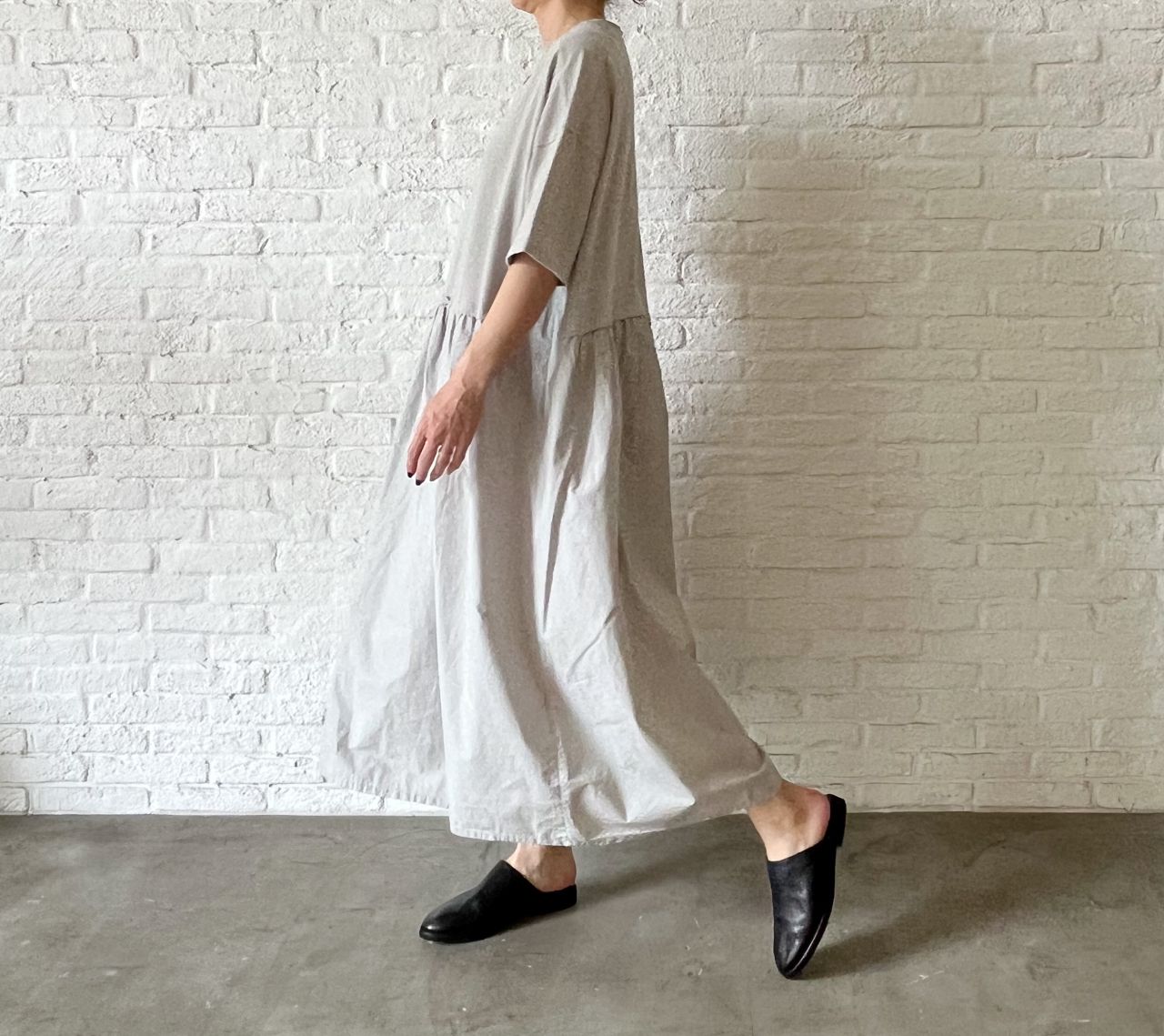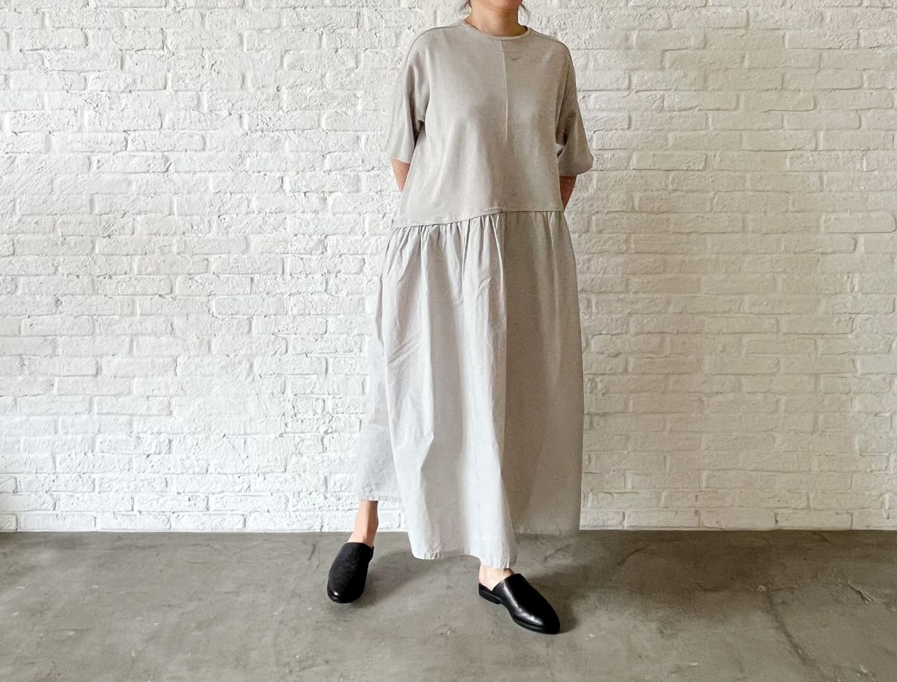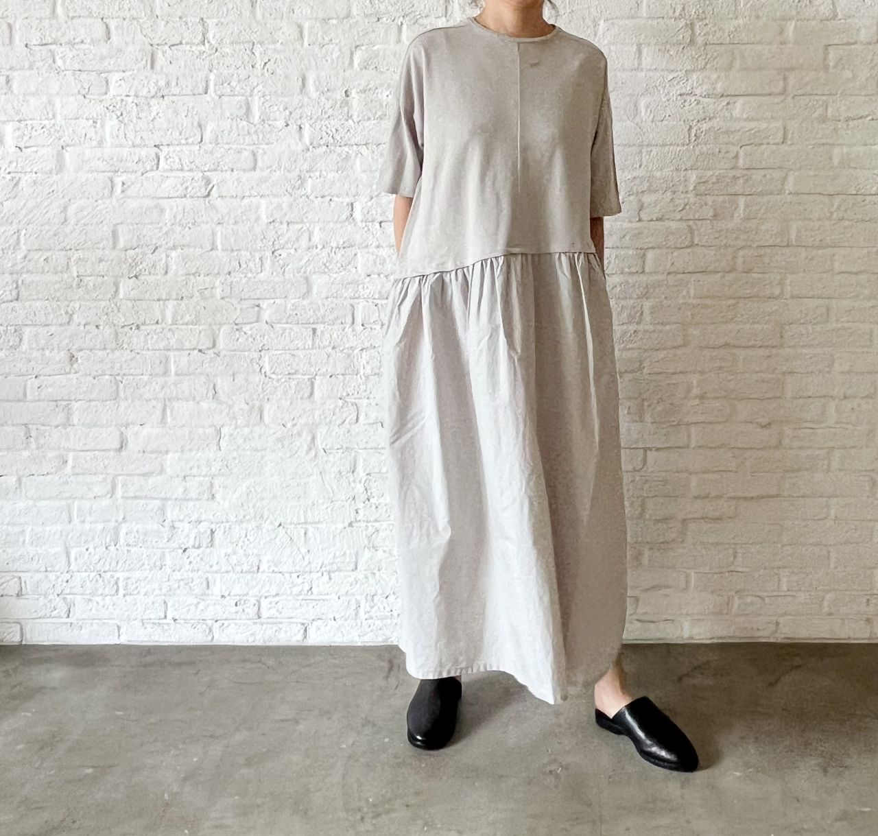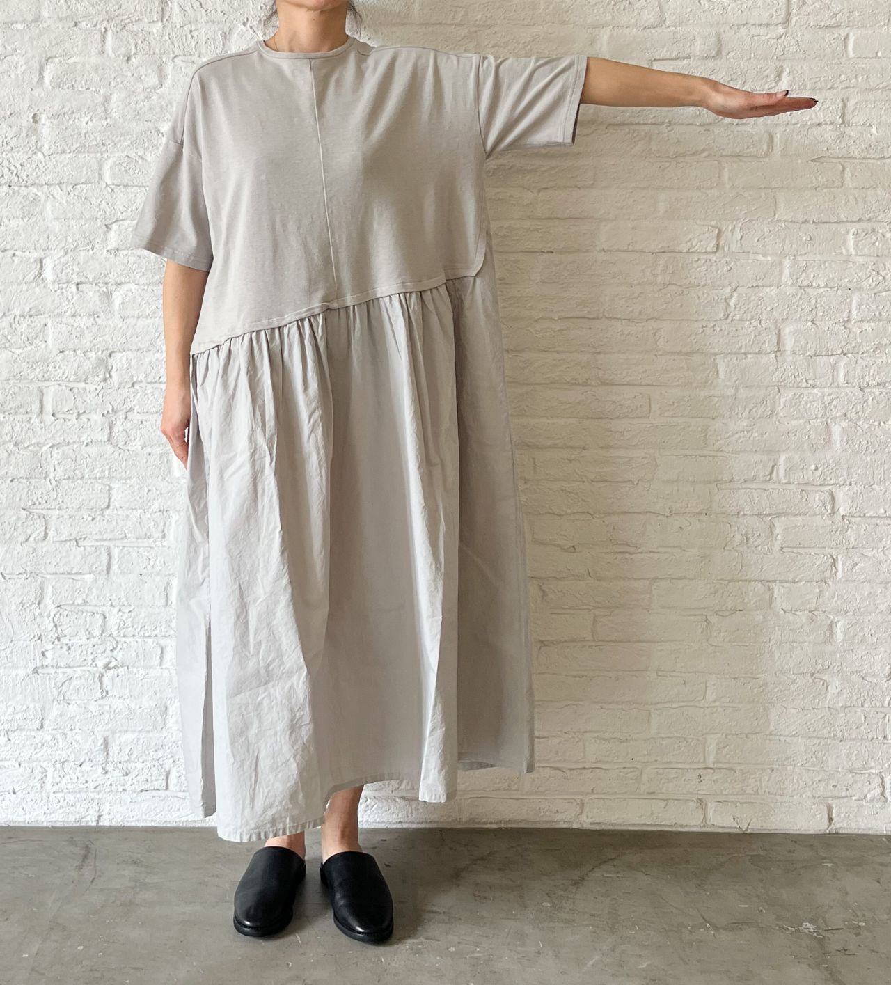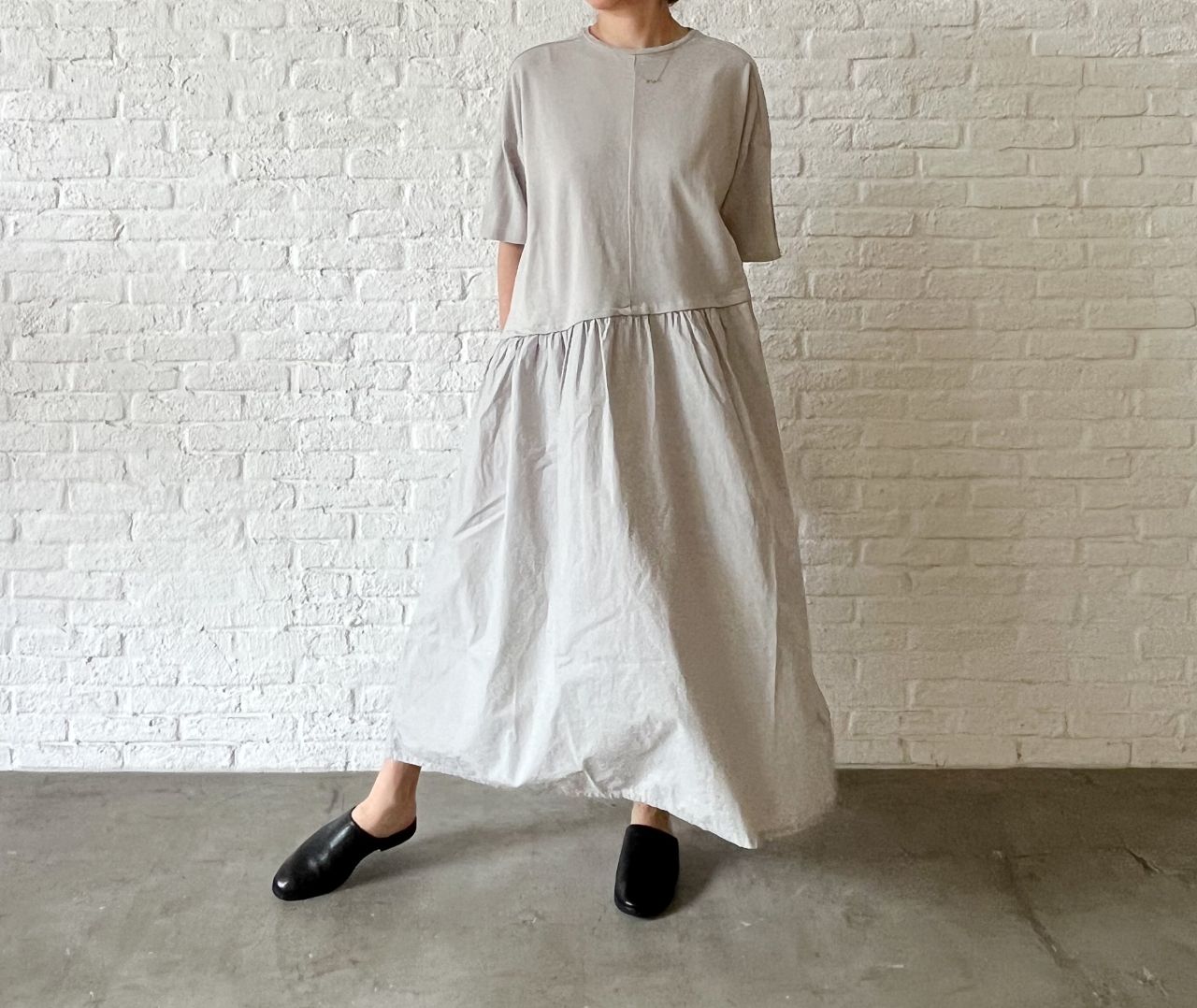 上がTシャツと同じカットソー素材+スカート部分は布帛でハリがあるコットン素材になっています。