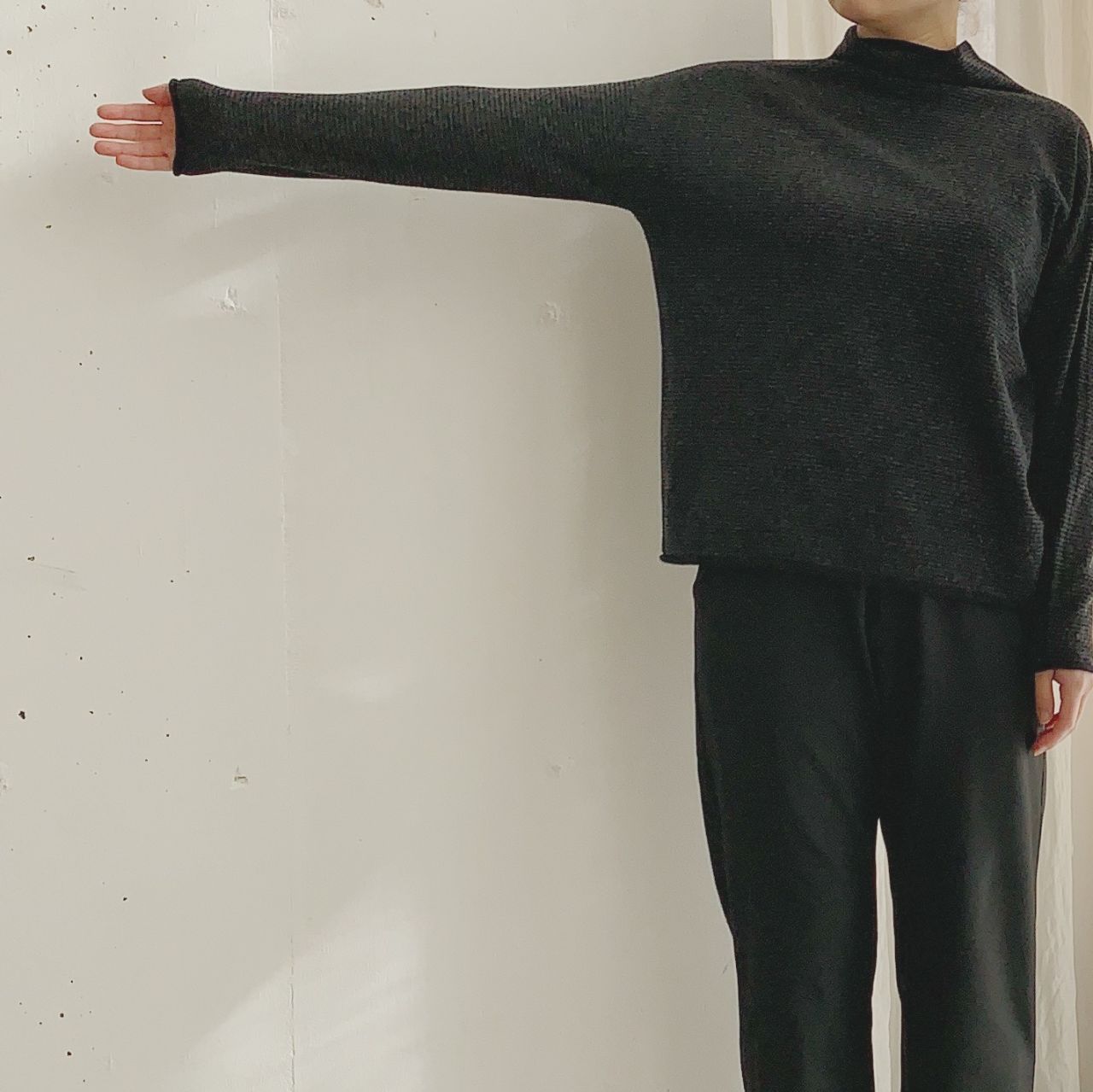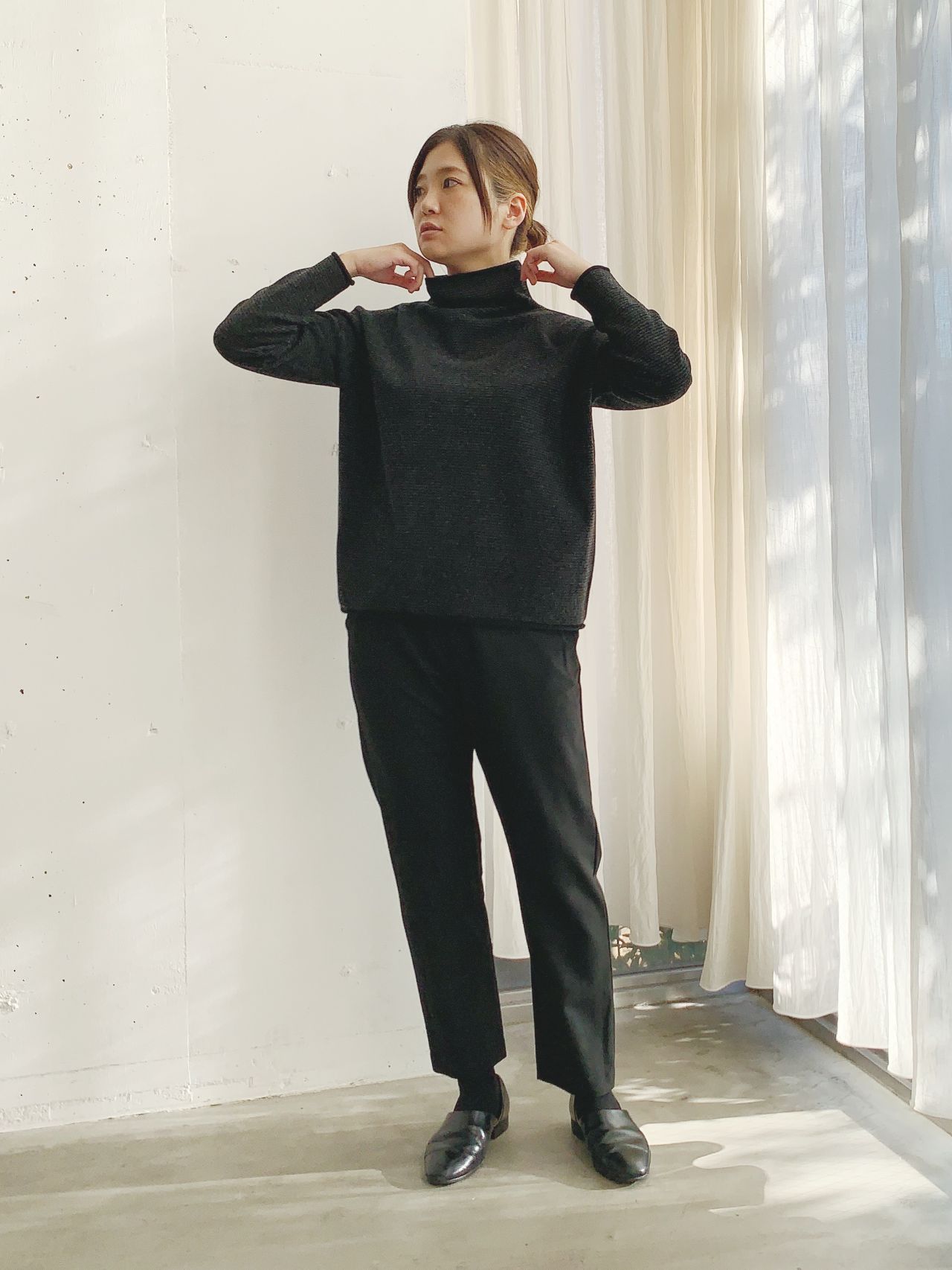 タートルネックが苦手な方でもこれなら着やすいはず。