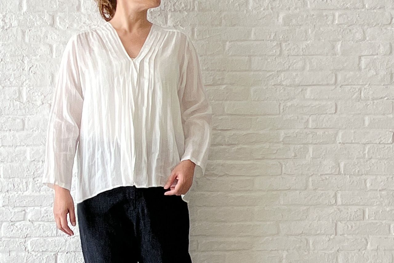 no.6610【VIP SALE】ラミーローン フロントタックドブラウス