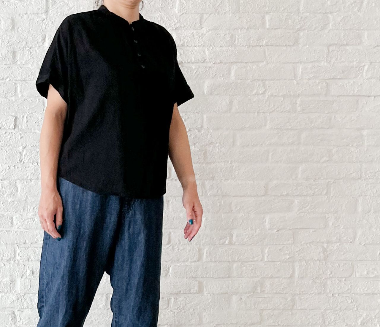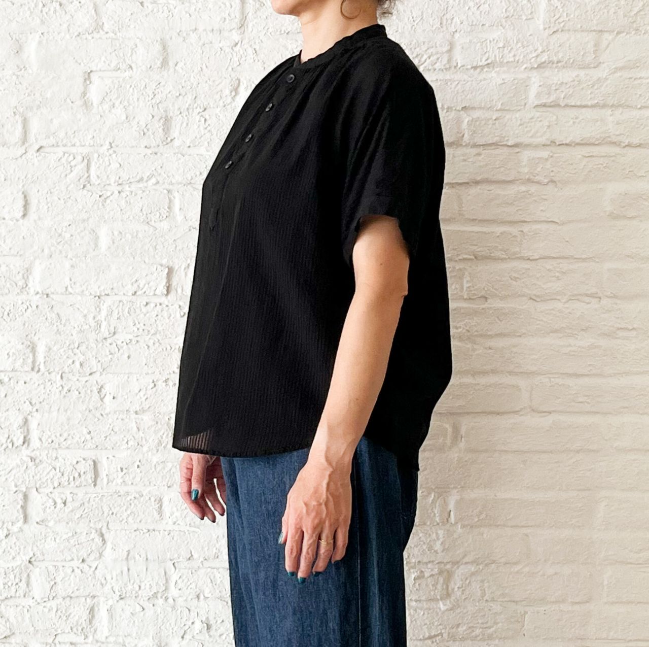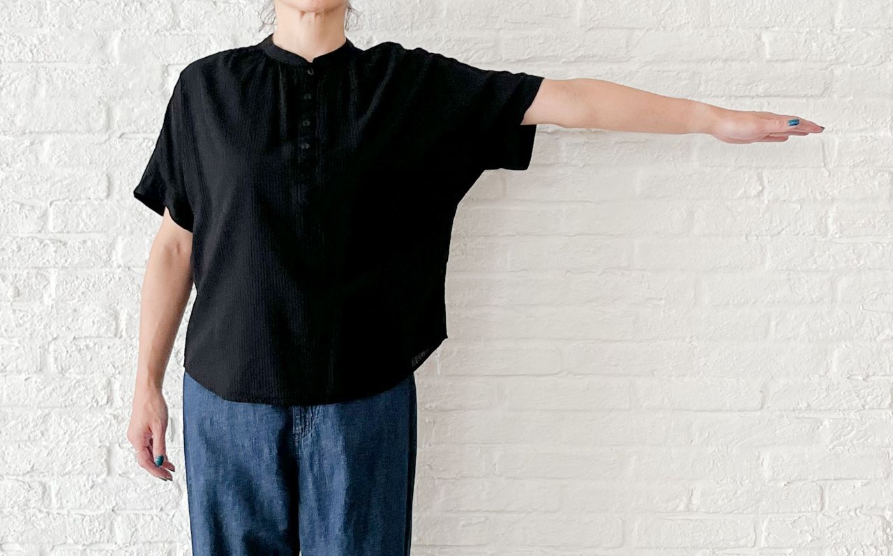 蒸し暑い今の時期から着やすい、半袖ブラウス。