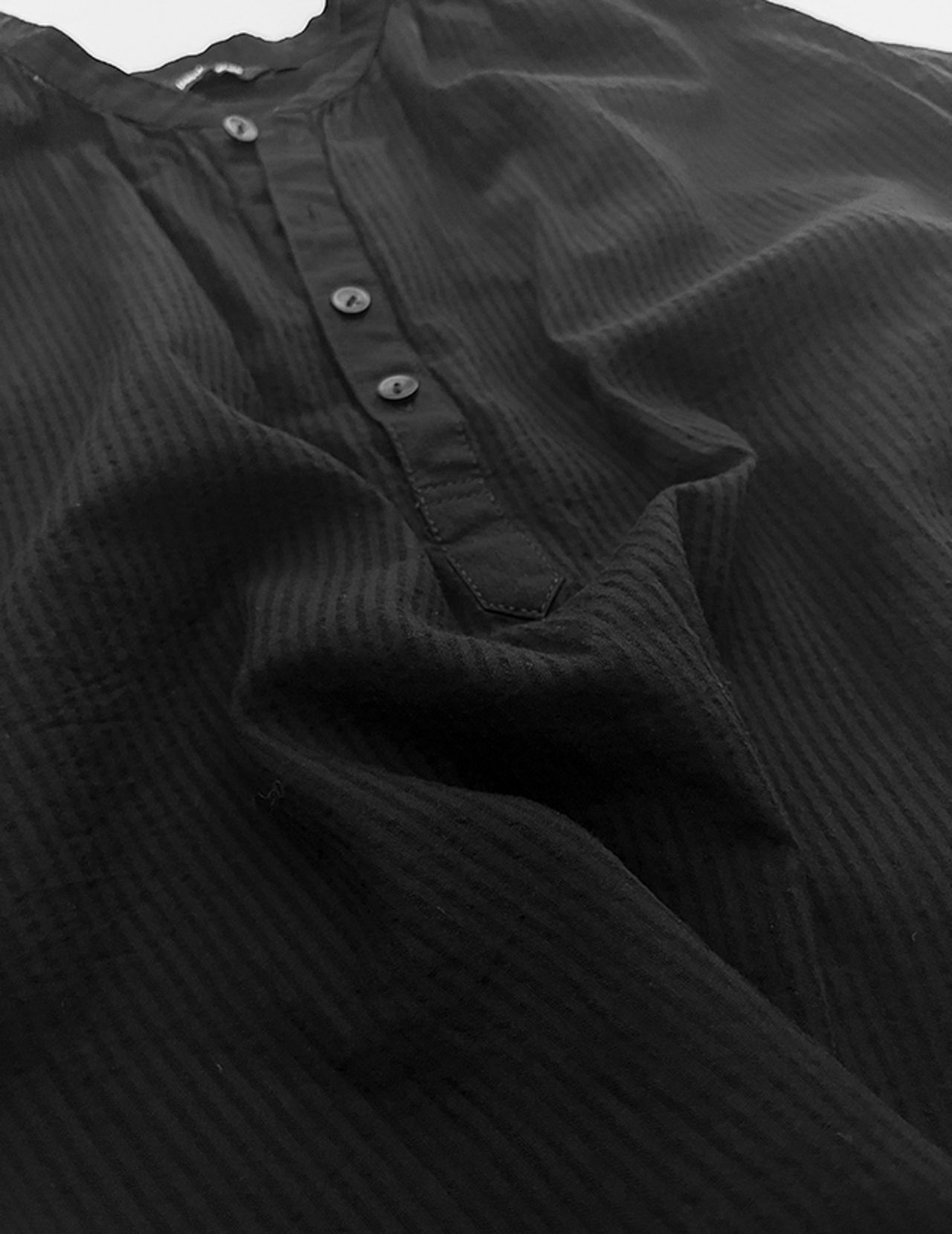 身頃続きの袖はゆとりが入っているため着やすく、お好みで前の釦を外してラフにでも。
