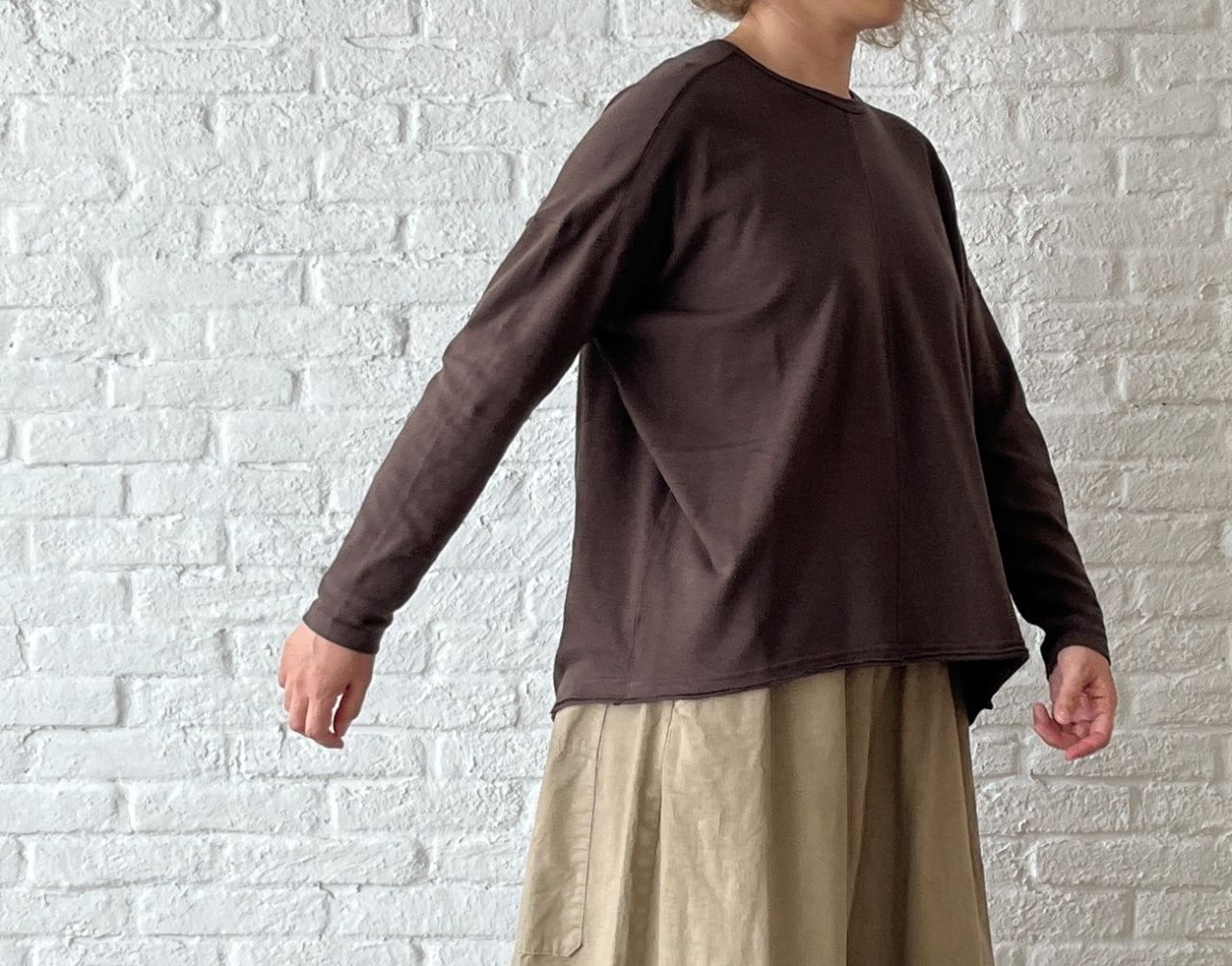 以前のブログ ではブルーでご紹介した Online store limited products アイテムで、本日は秋らしブラウンを使って 着回しコーディネート のご紹介です。