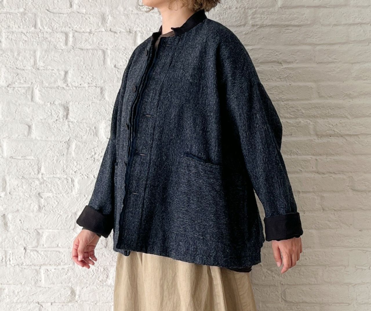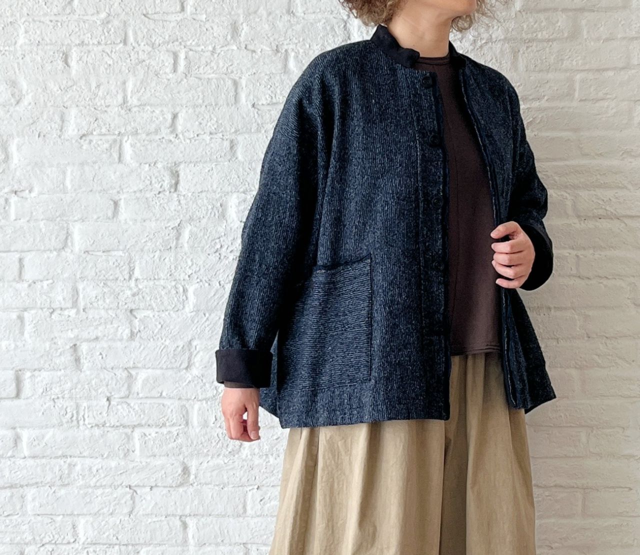 身幅がゆったりしているので、ニットを着込んで羽織っても◎。