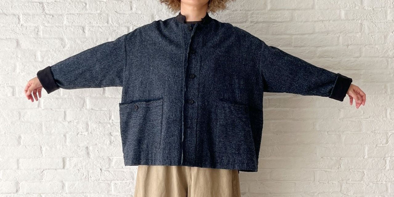 前身頃と袖は天竺編み、後身頃はより柔らかなガーゼ編みで切り替えています。