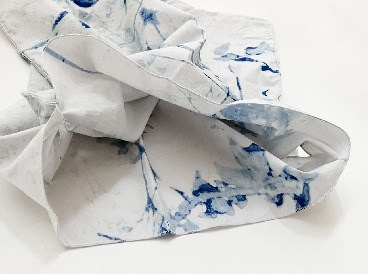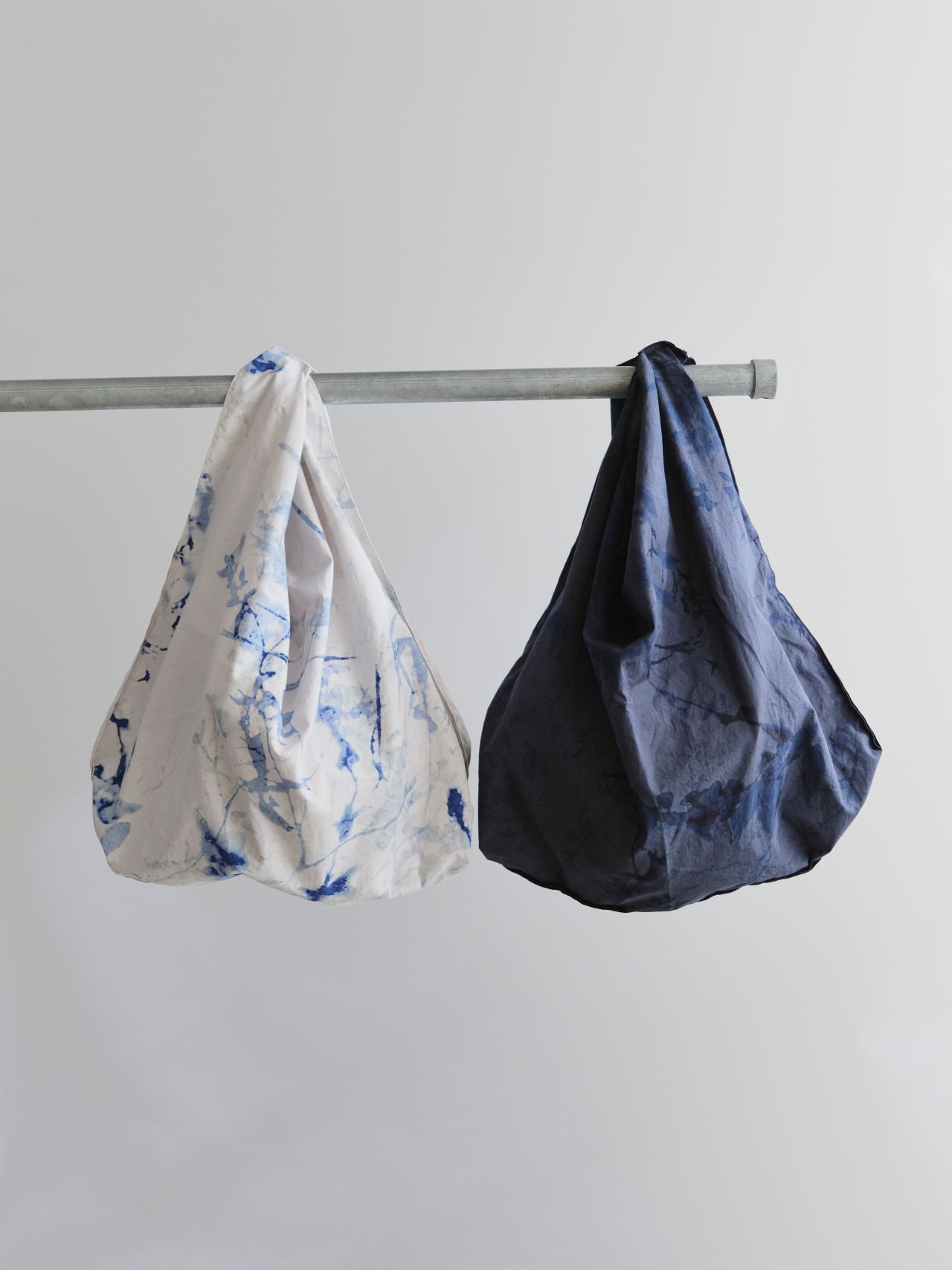 スカーフのような正方形の生地を合わせた、軽量なスクエアBAG。