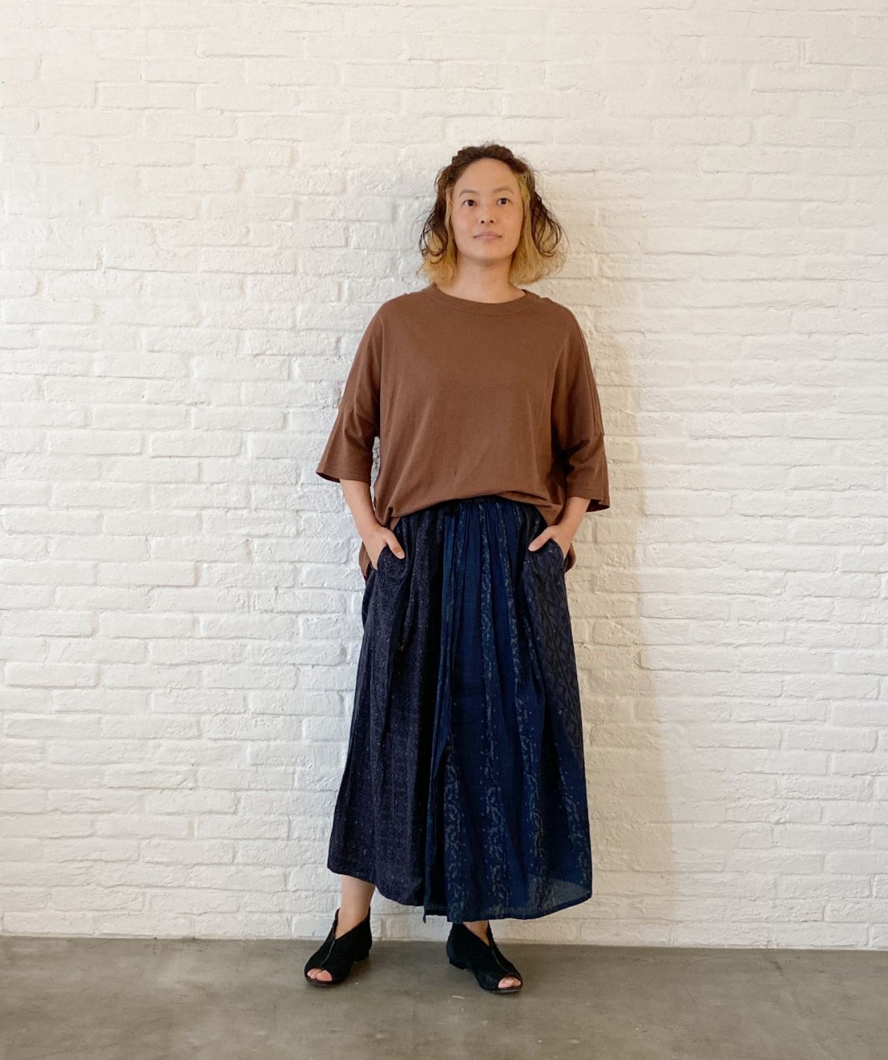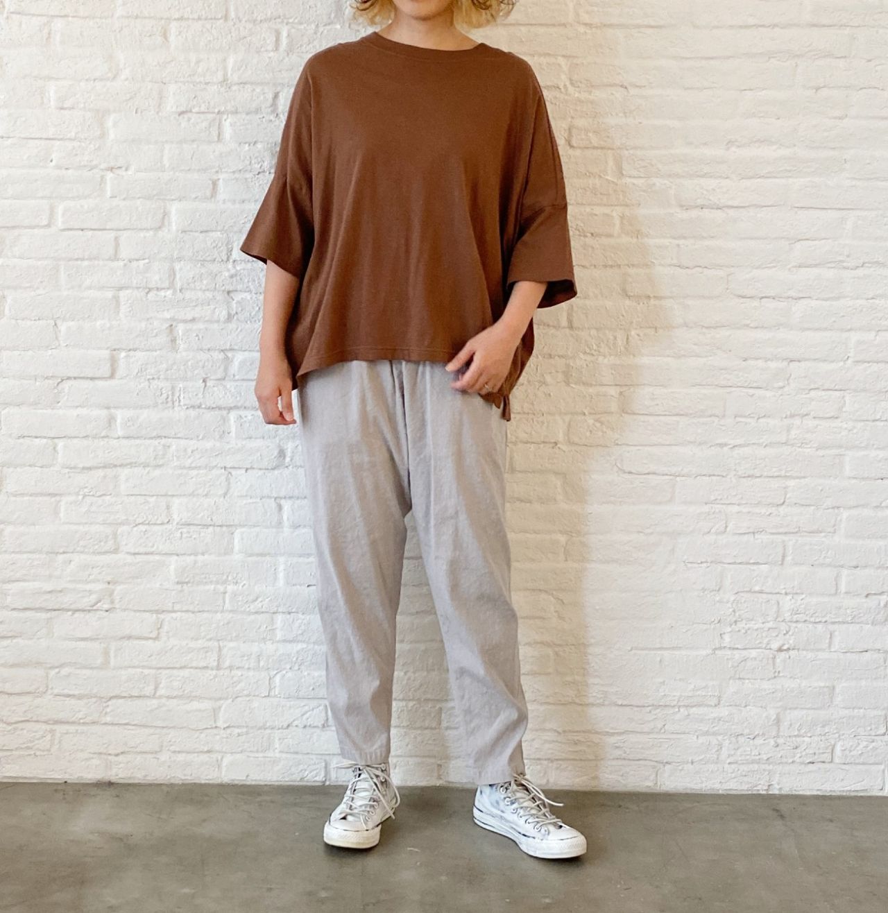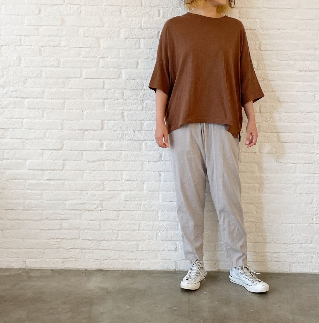 本日は、昨日のブログ でご紹介した植物染めTと同じシリーズのワイドTシャツで、SUMMER SALE ×除外品 の着回しコーディネートを。