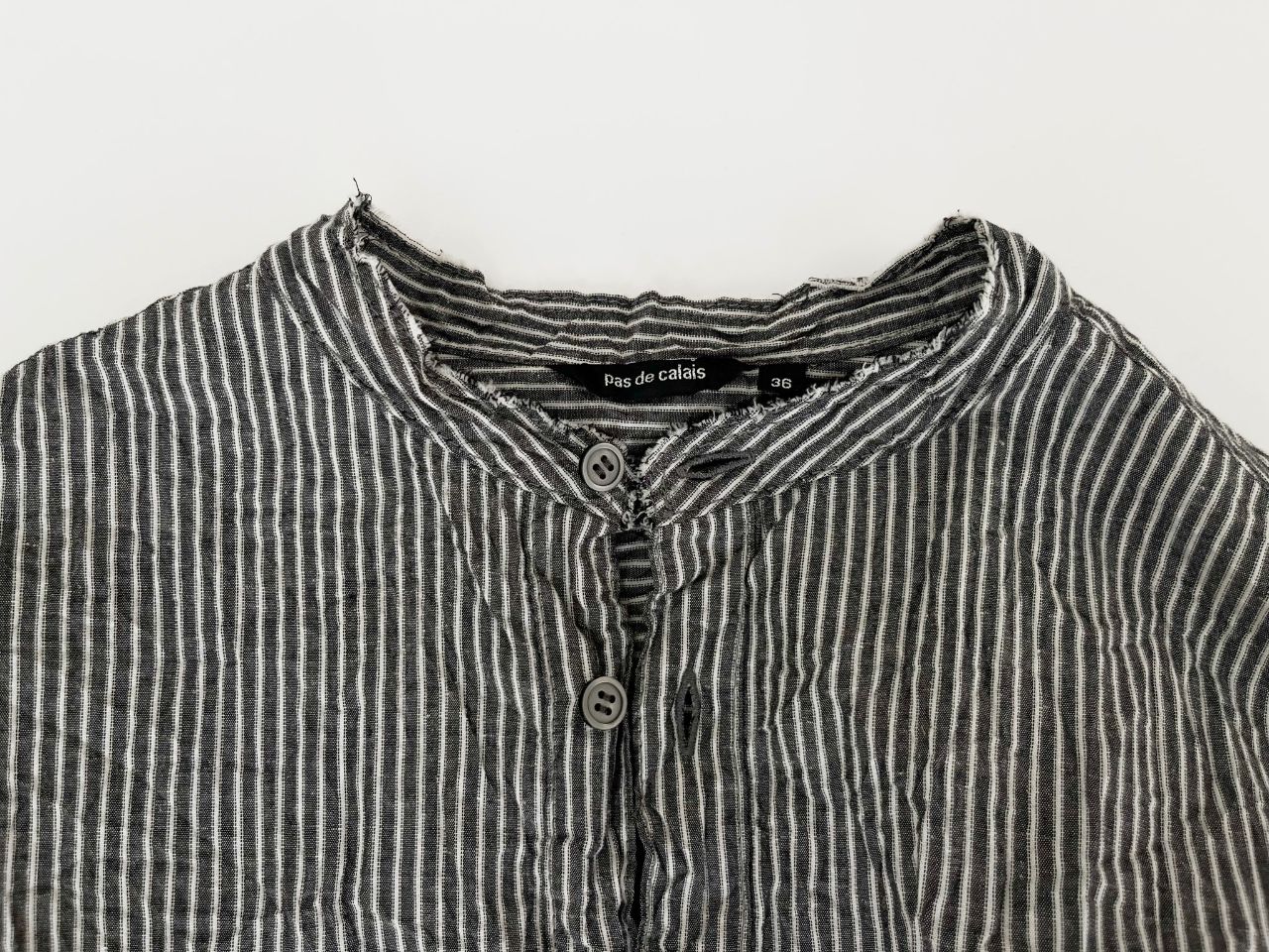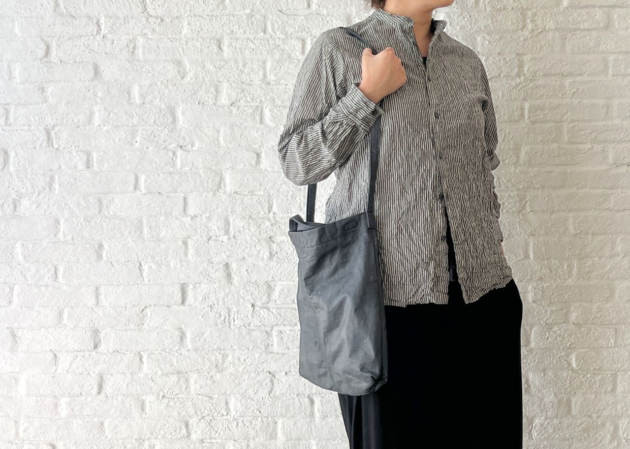人気のしわ加工のブラウスをストライプ柄で作りました。