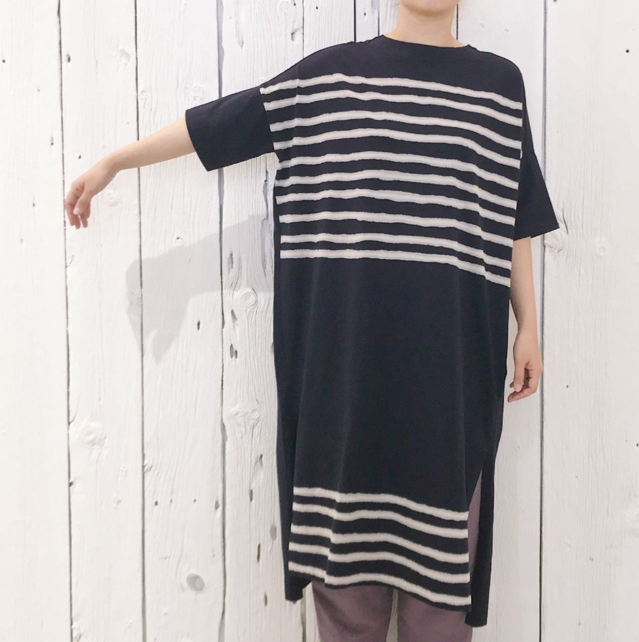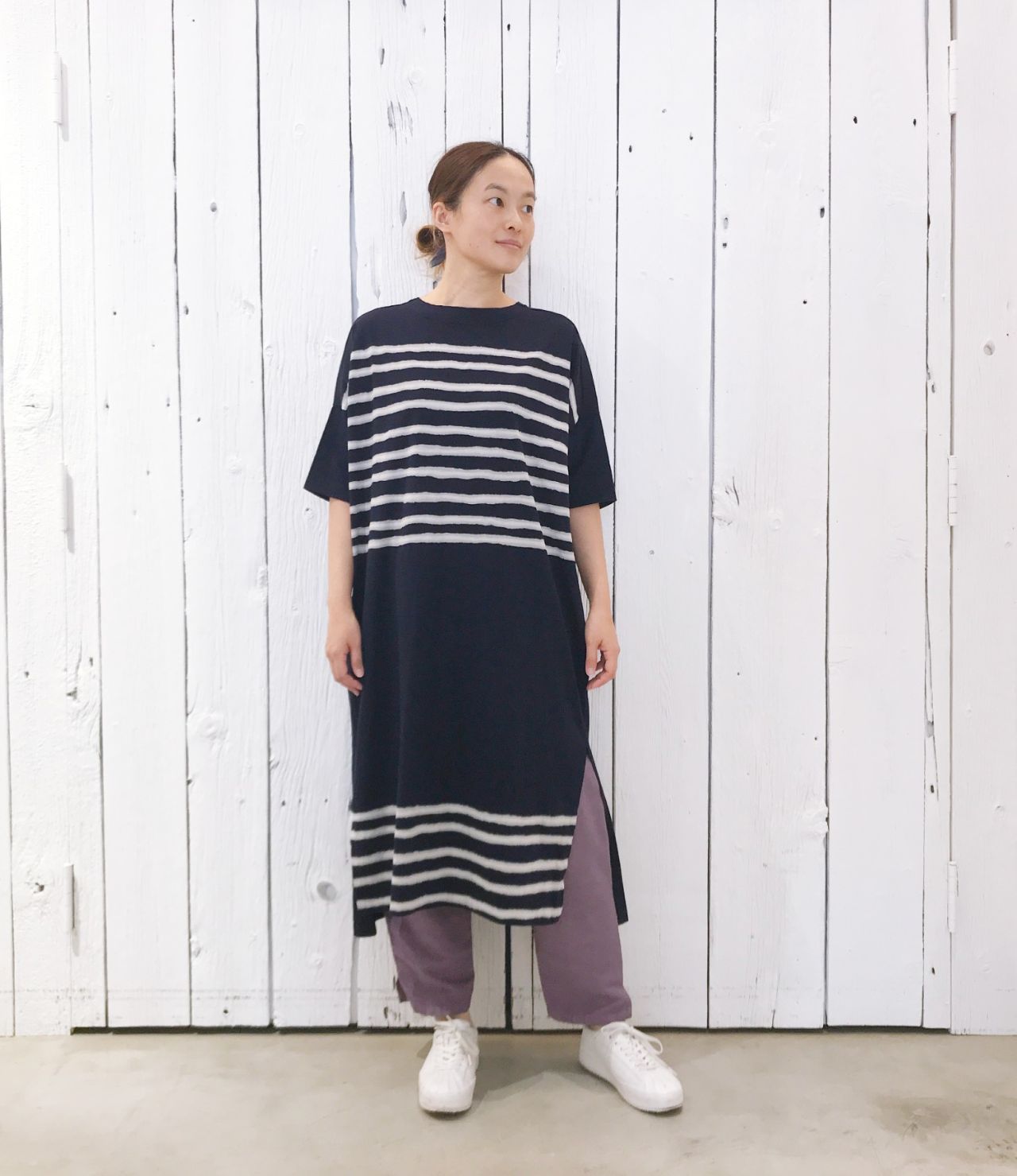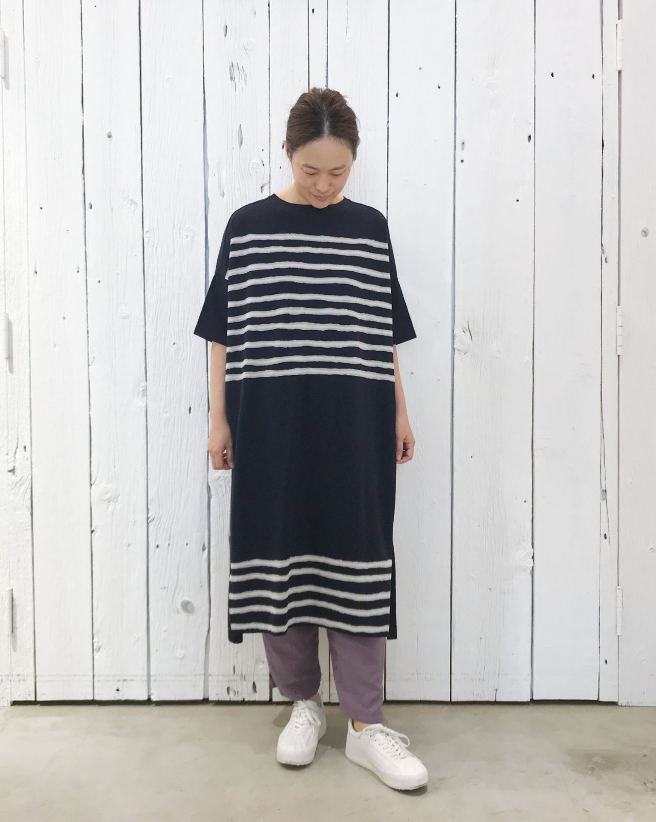 no.4056【オンラインストア別注】にじみボーダー 半袖 ワンピース