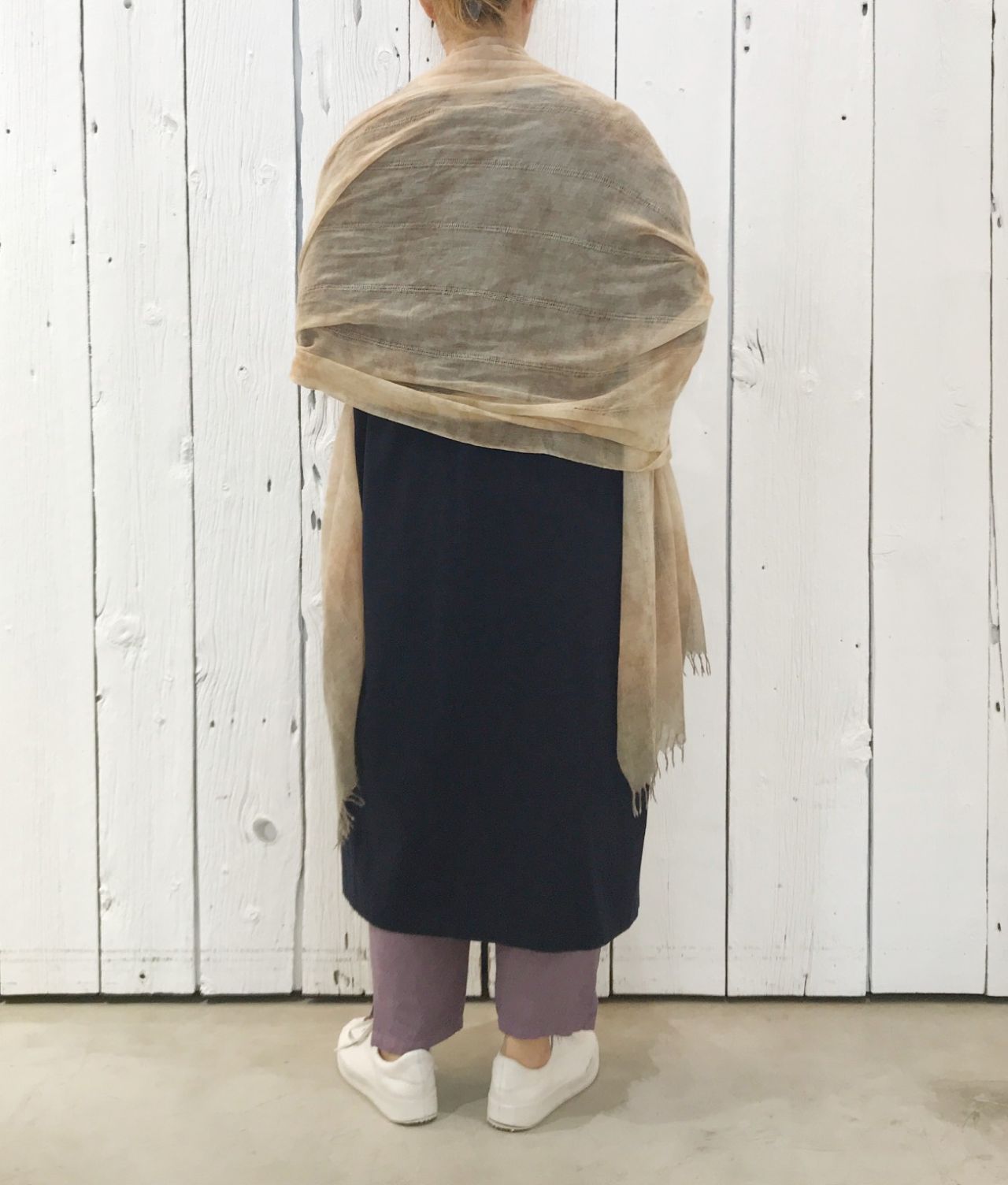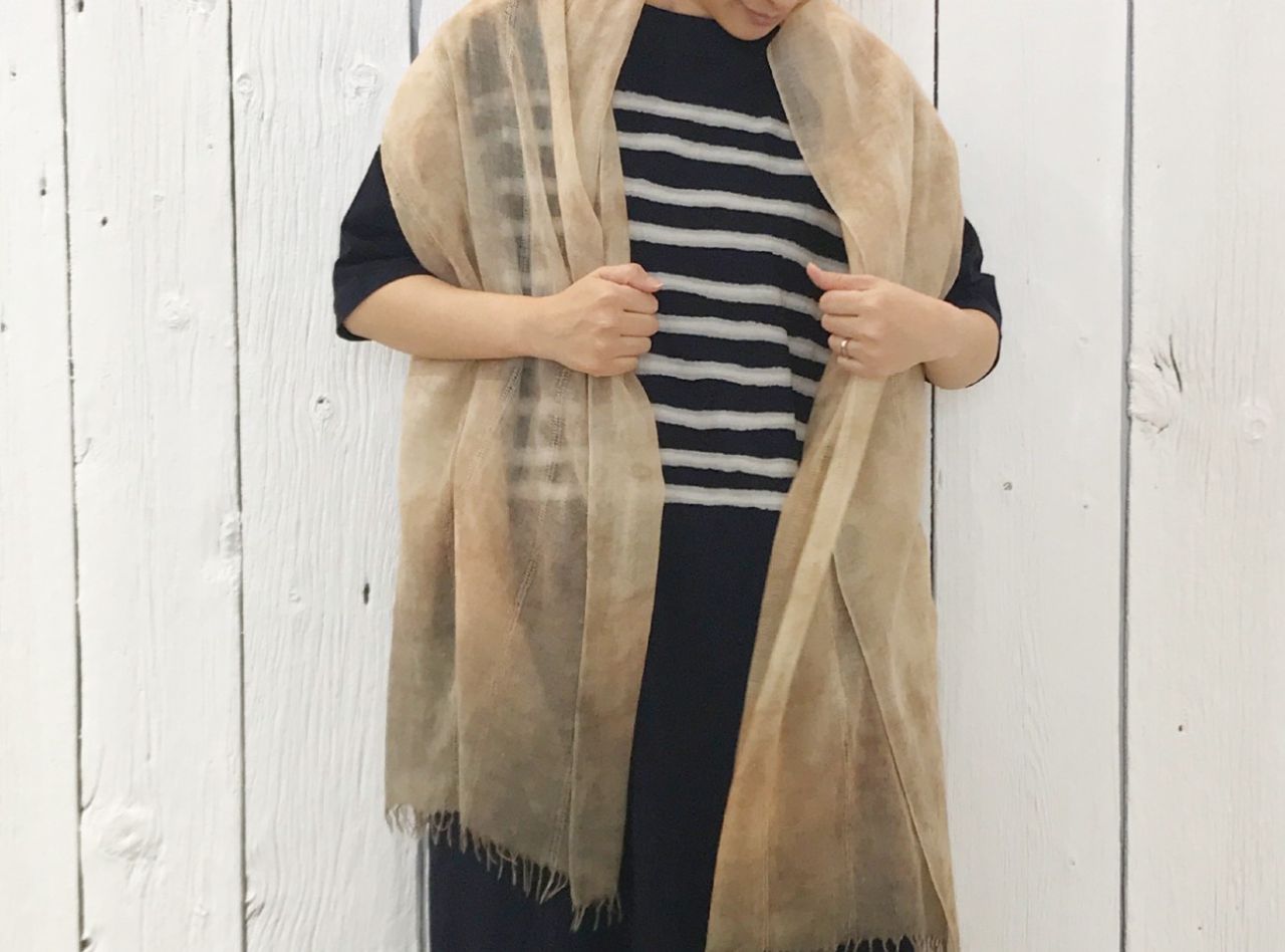 カシミヤ100%ですがかなり薄いので、フワッと肩に掛けると程よい暖かさを感じます。